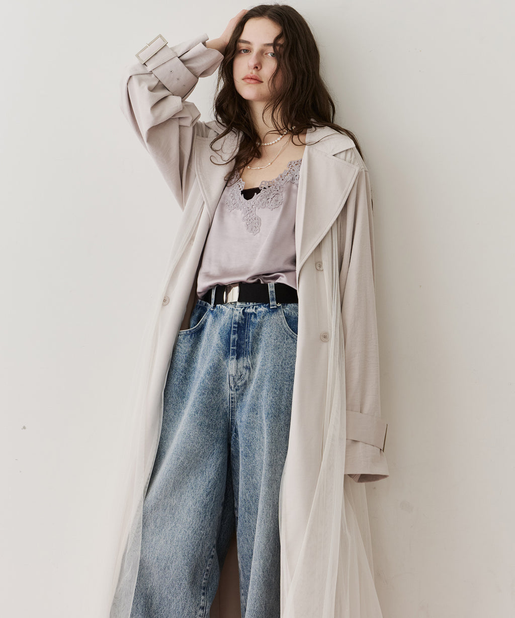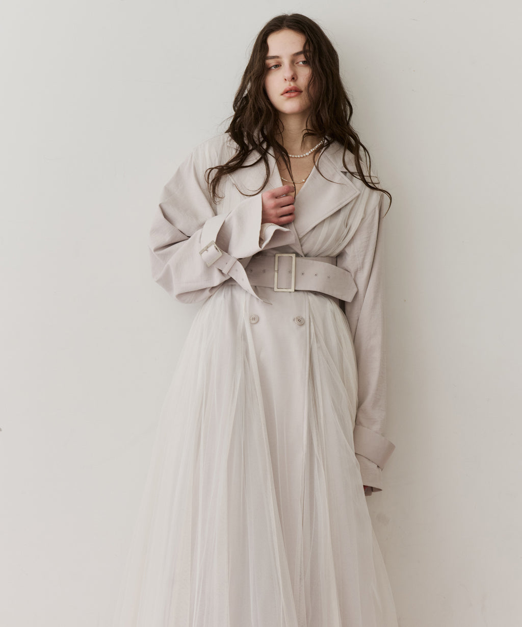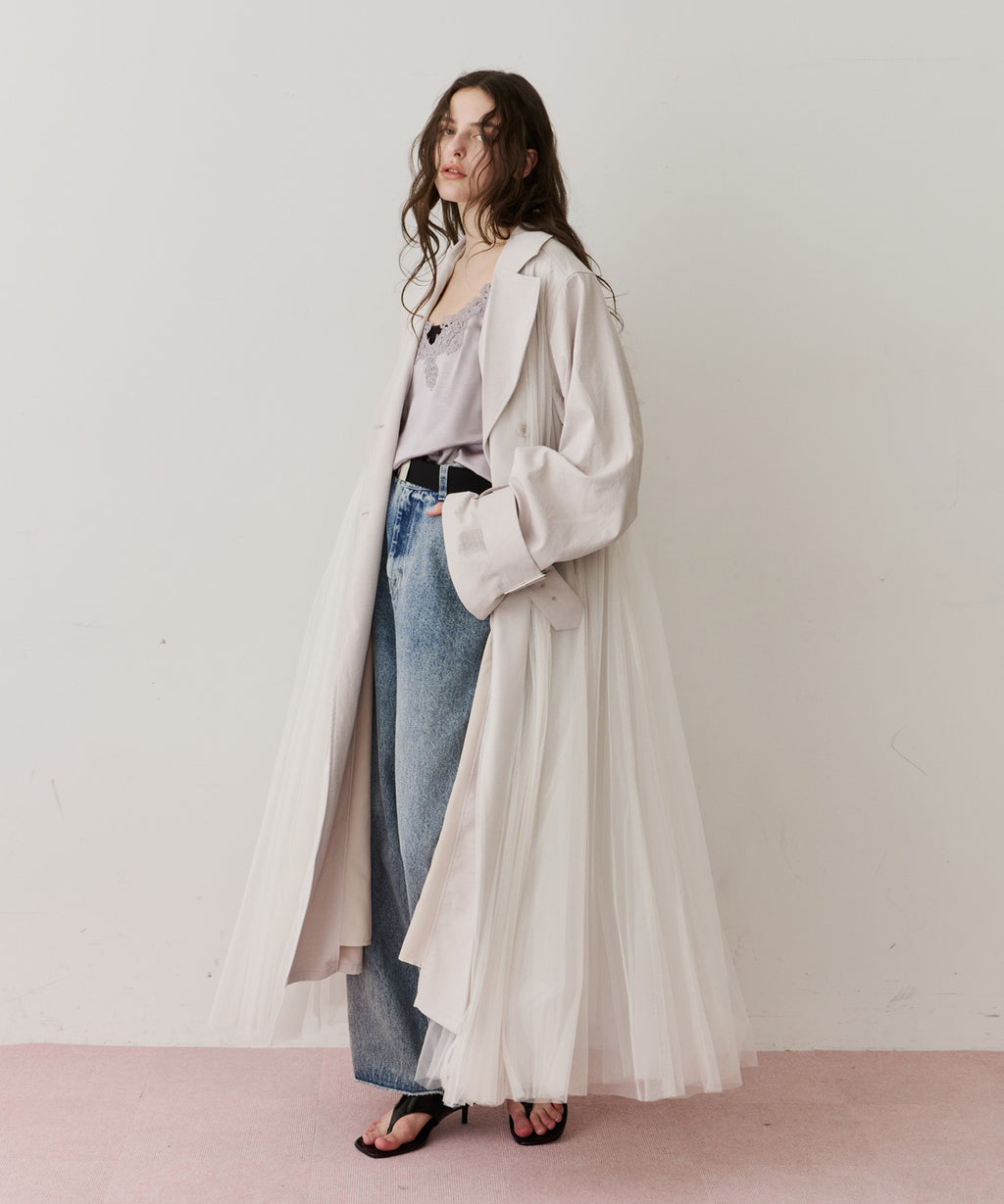 ワッシャー加工のされた生地をベースに、柔らかなソフトチュールをドッキング。