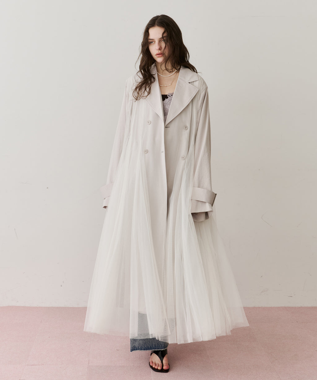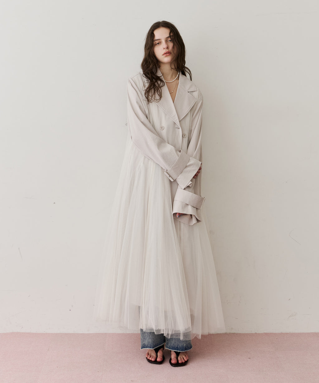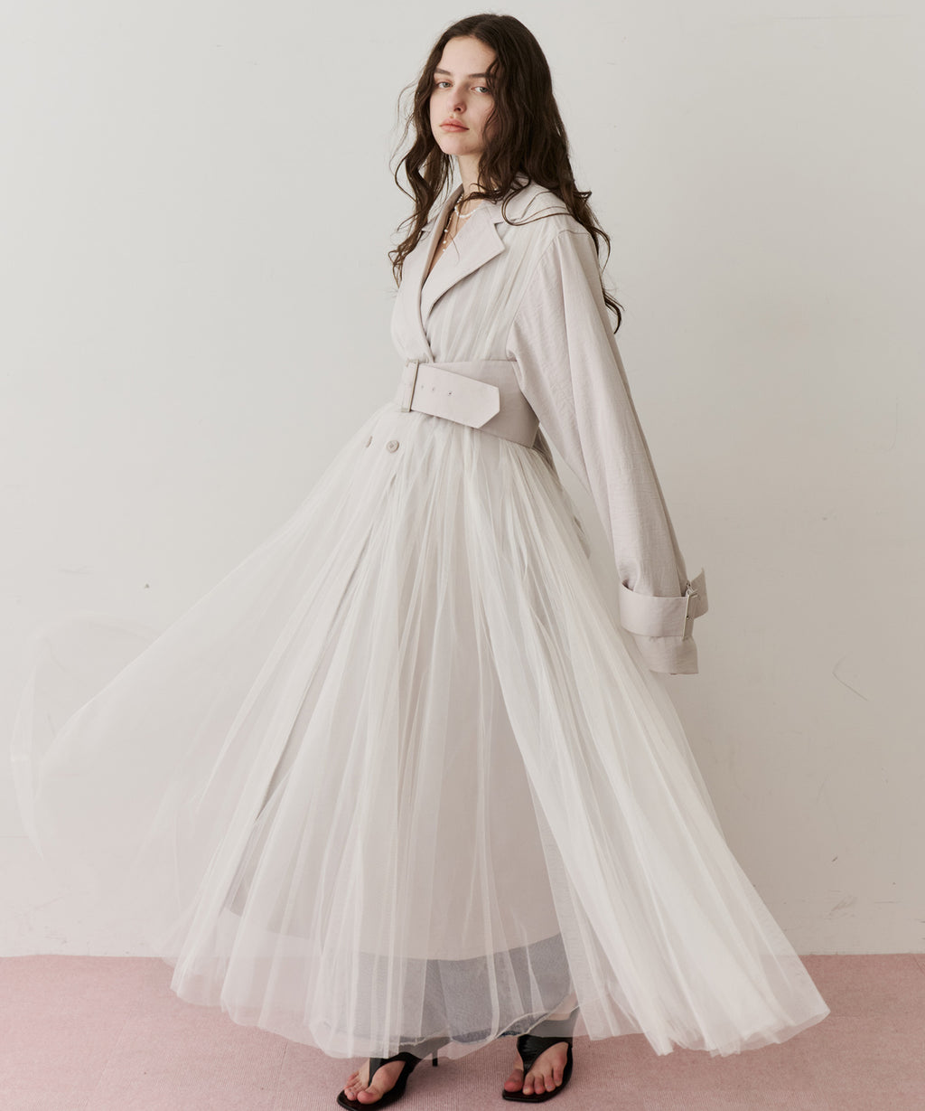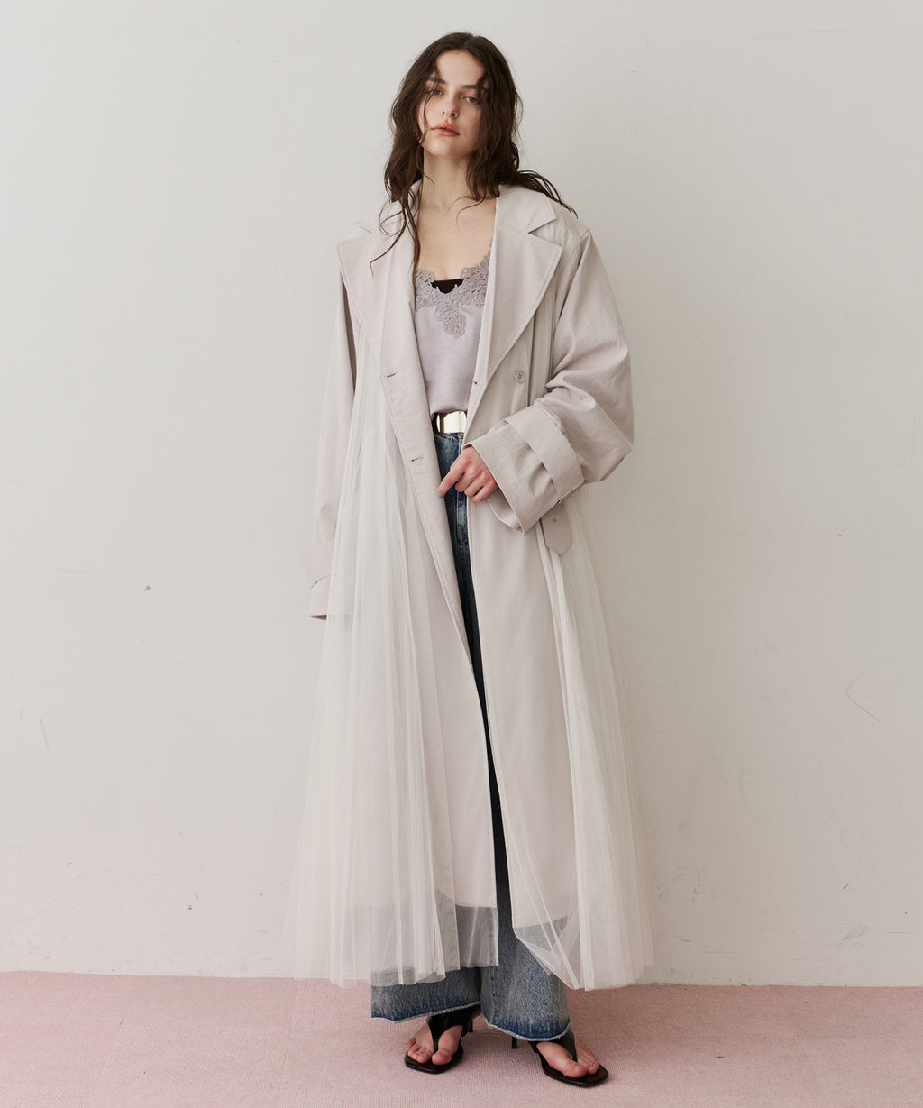 ワッシャー加工のされた生地をベースに、柔らかなソフトチュールをドッキング。