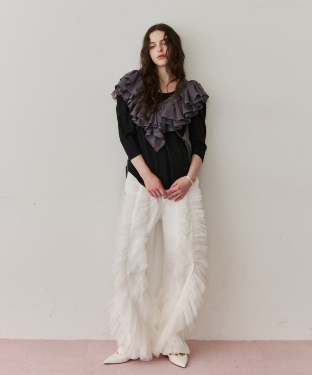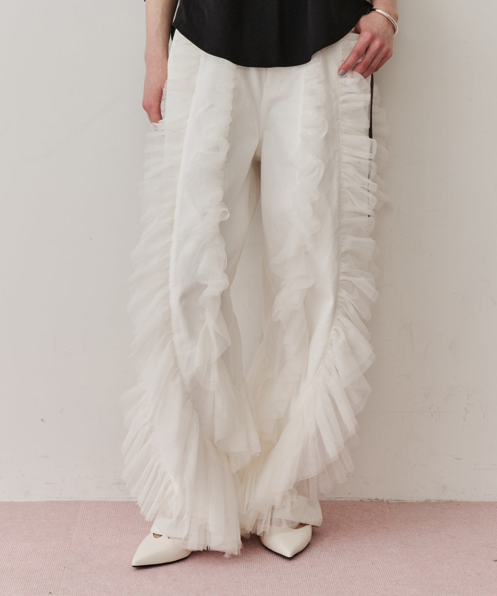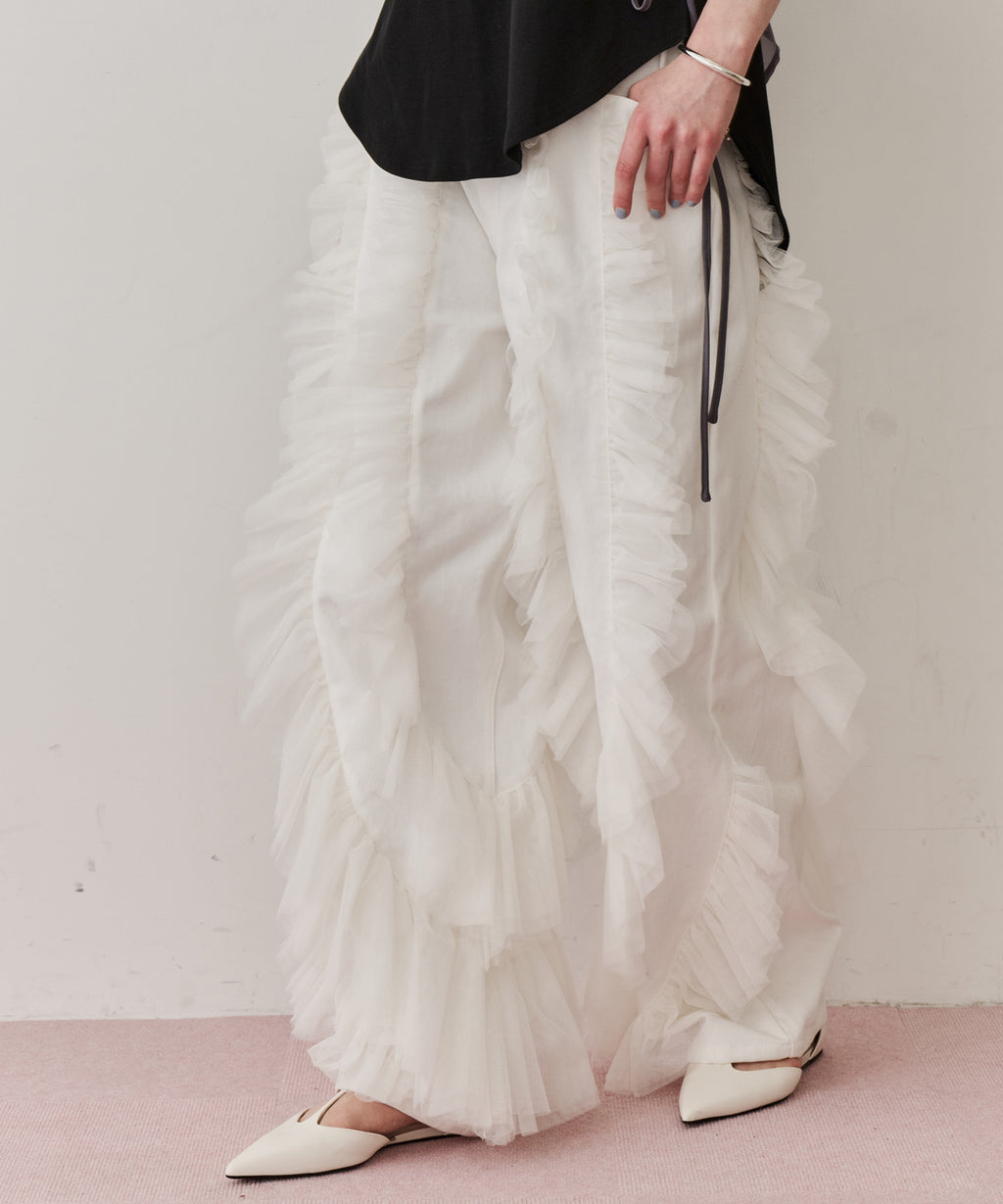 ギャザーをたっぷり寄せたチュールをデニムにドッキング。