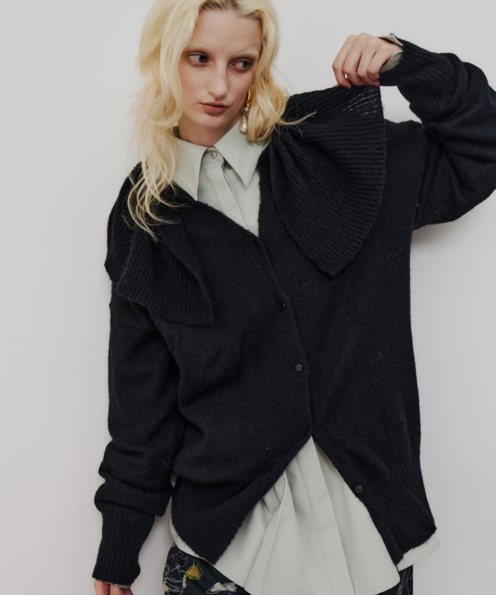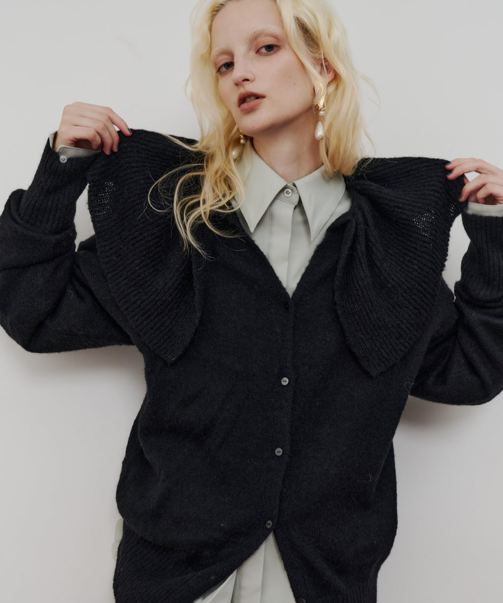 ボタンを留めてニットトップスとして着用してもかわいい。