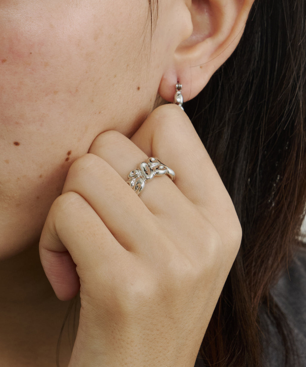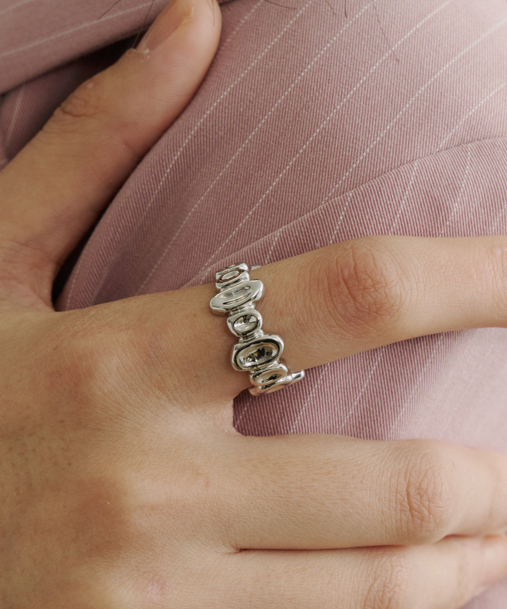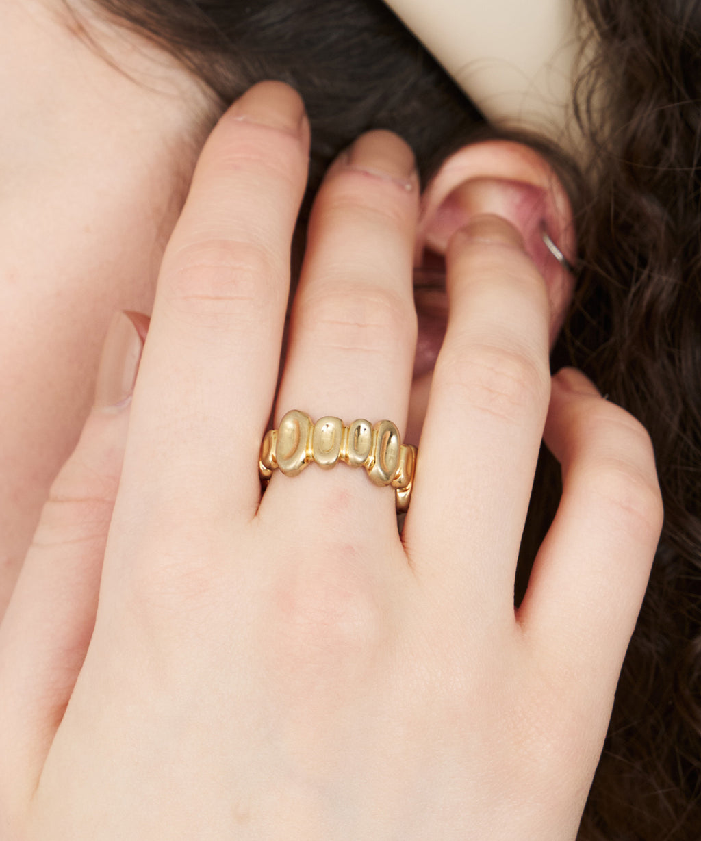 小さなお豆が連なったようなデザインのリング。
