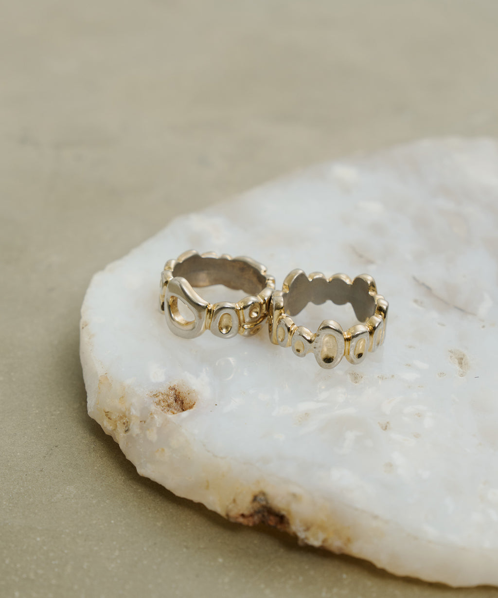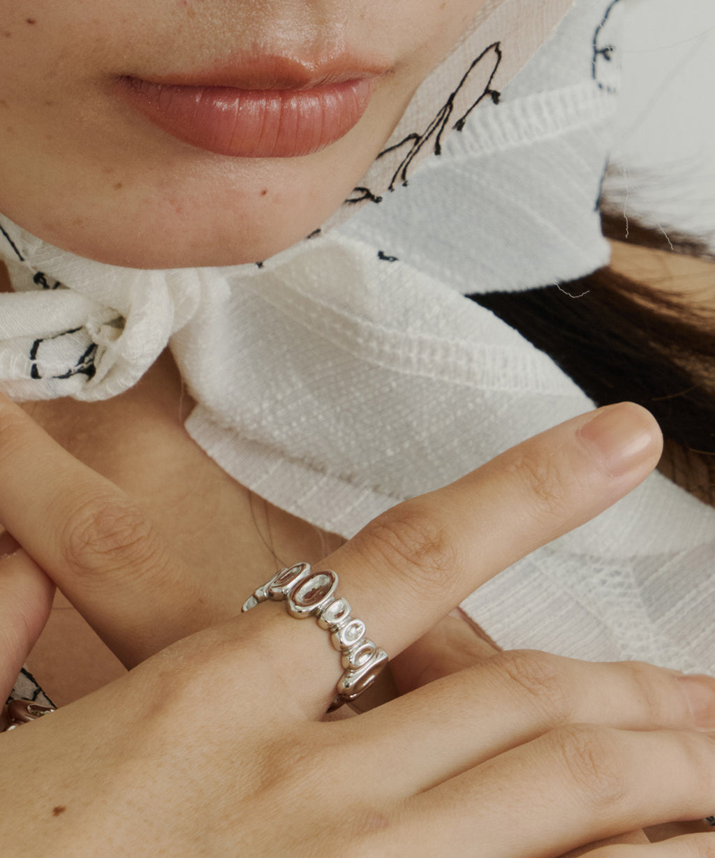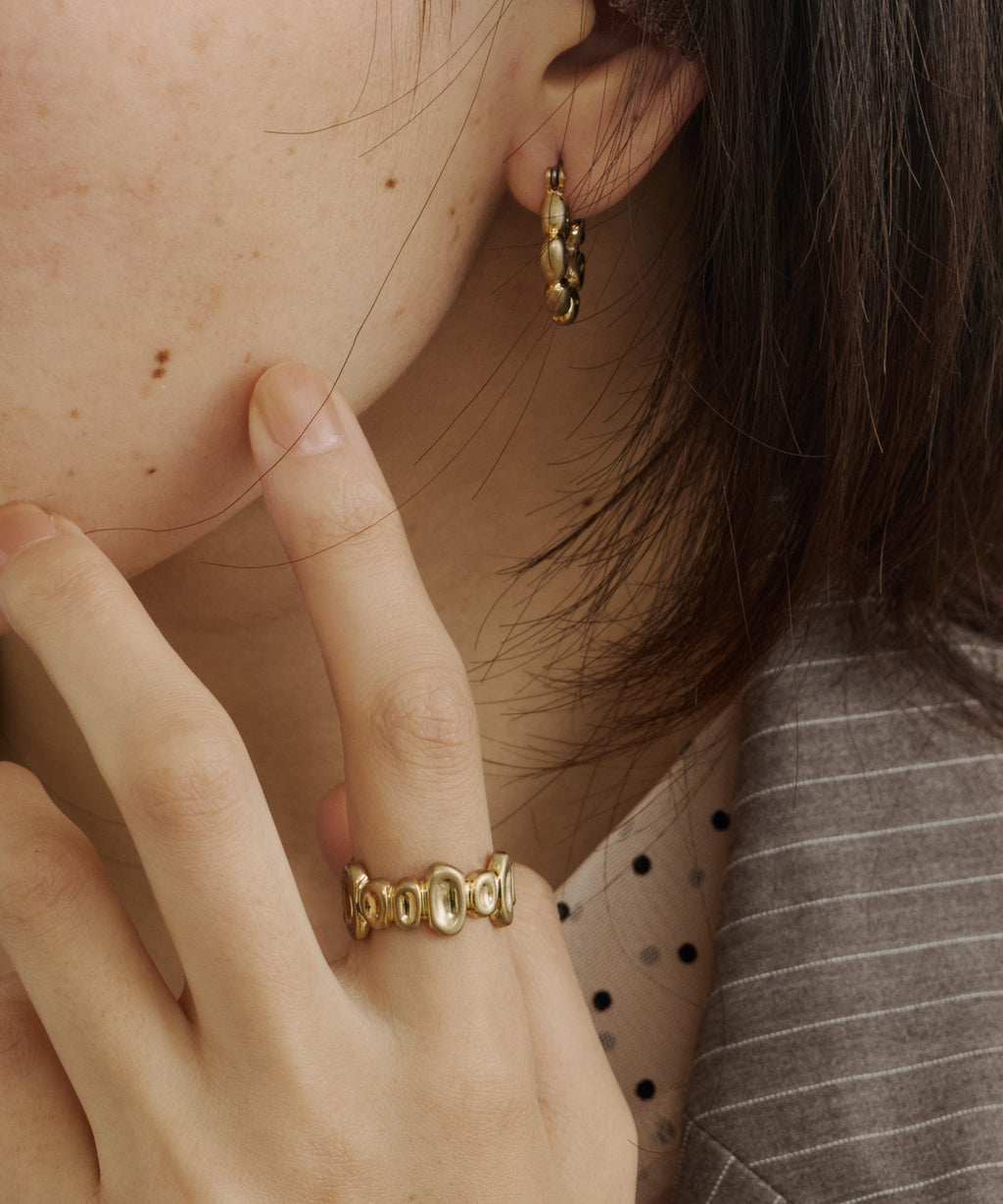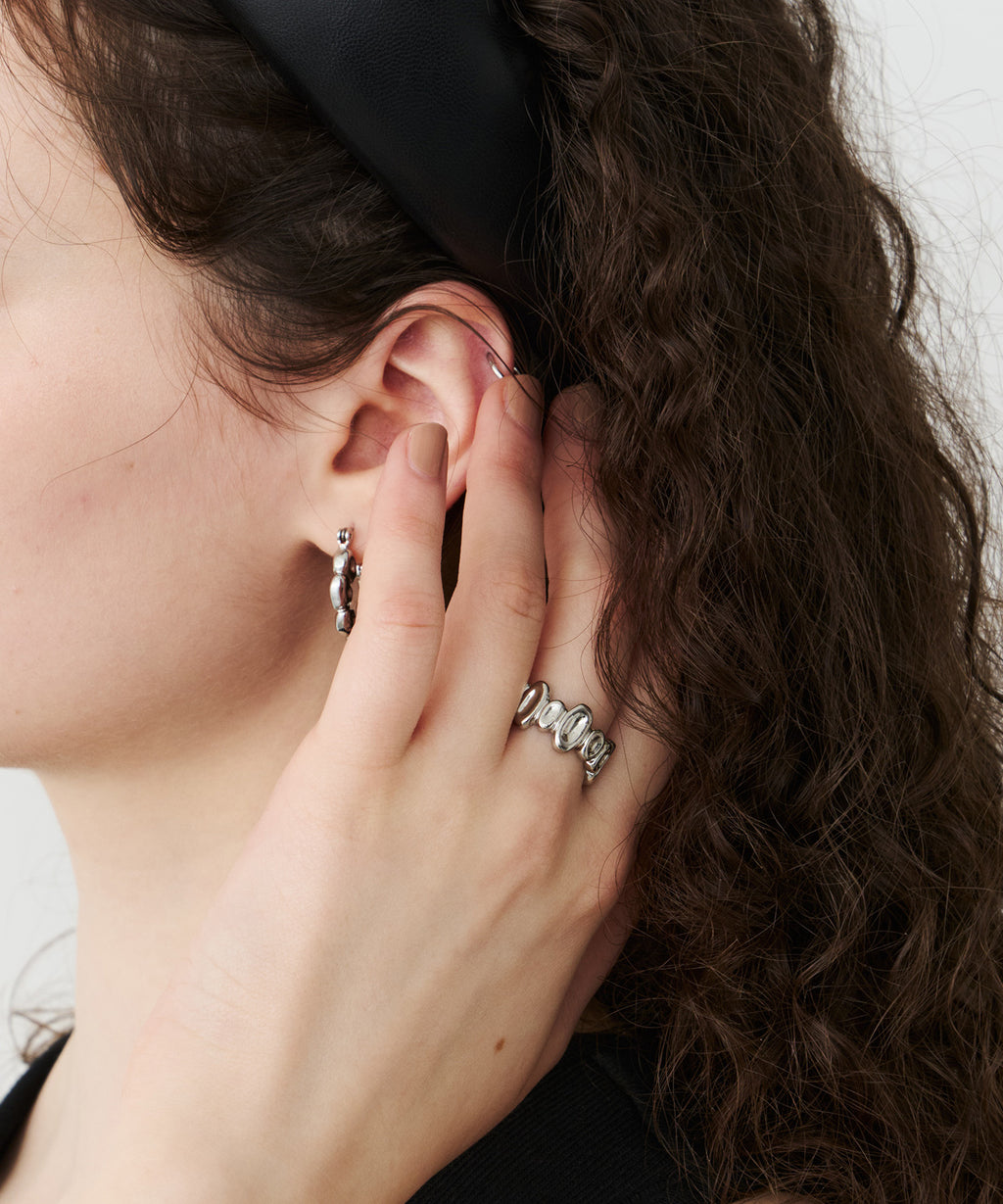 小さなお豆が連なったようなデザインのリング。