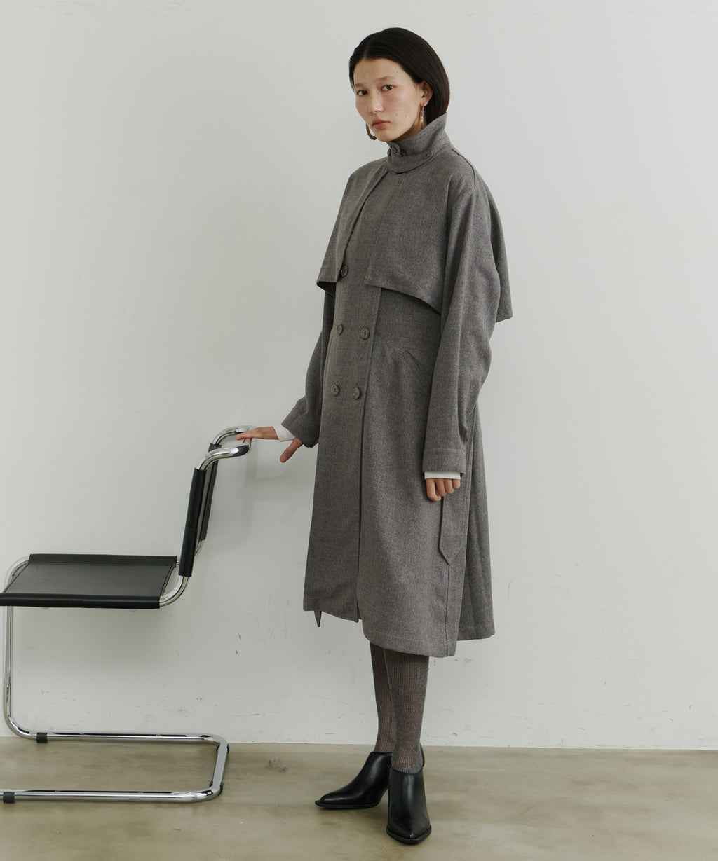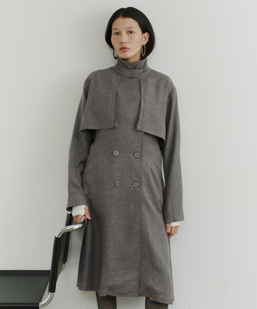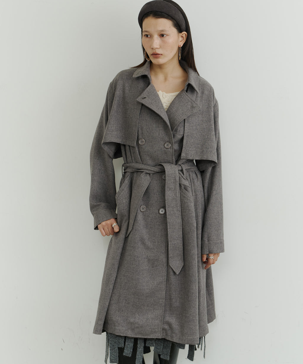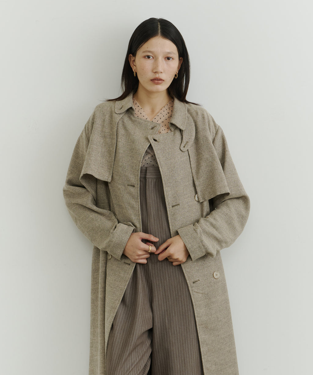 大きなケープが特徴的なトレンチコート。
