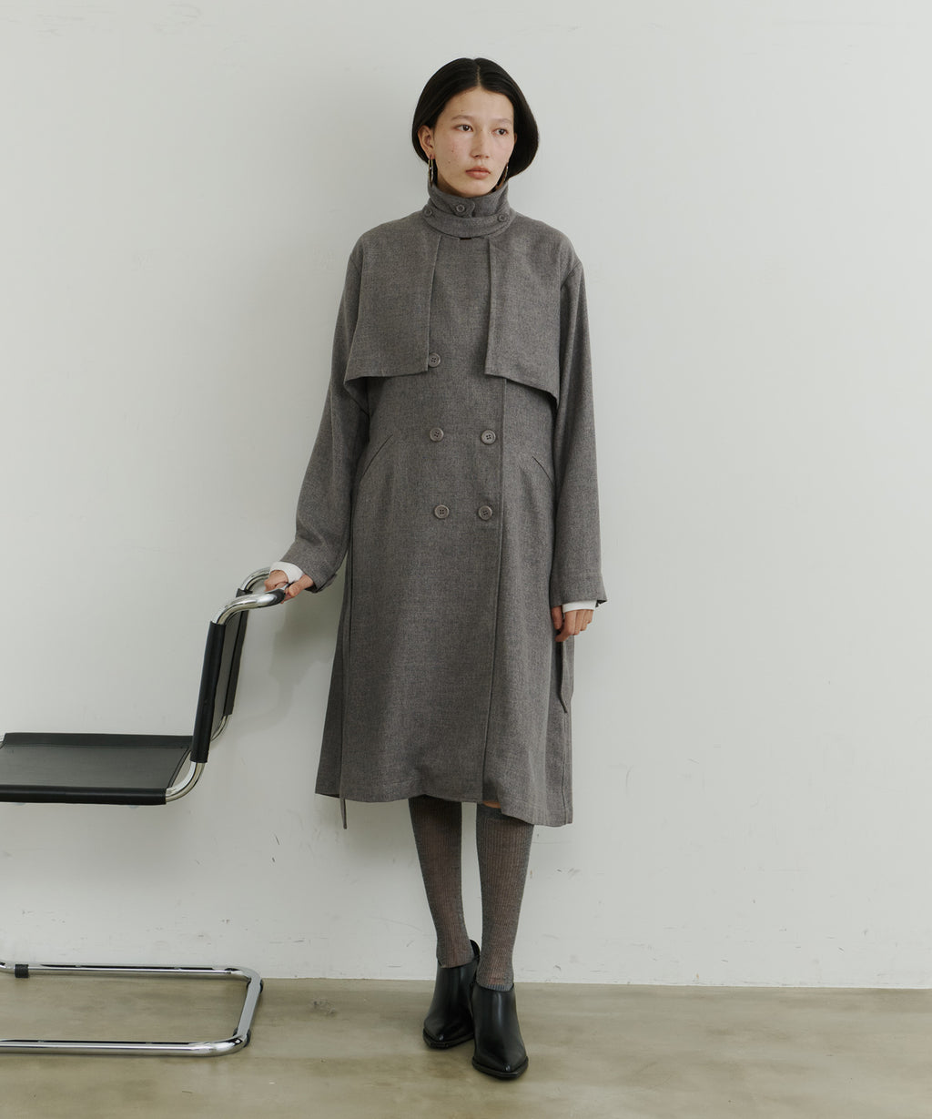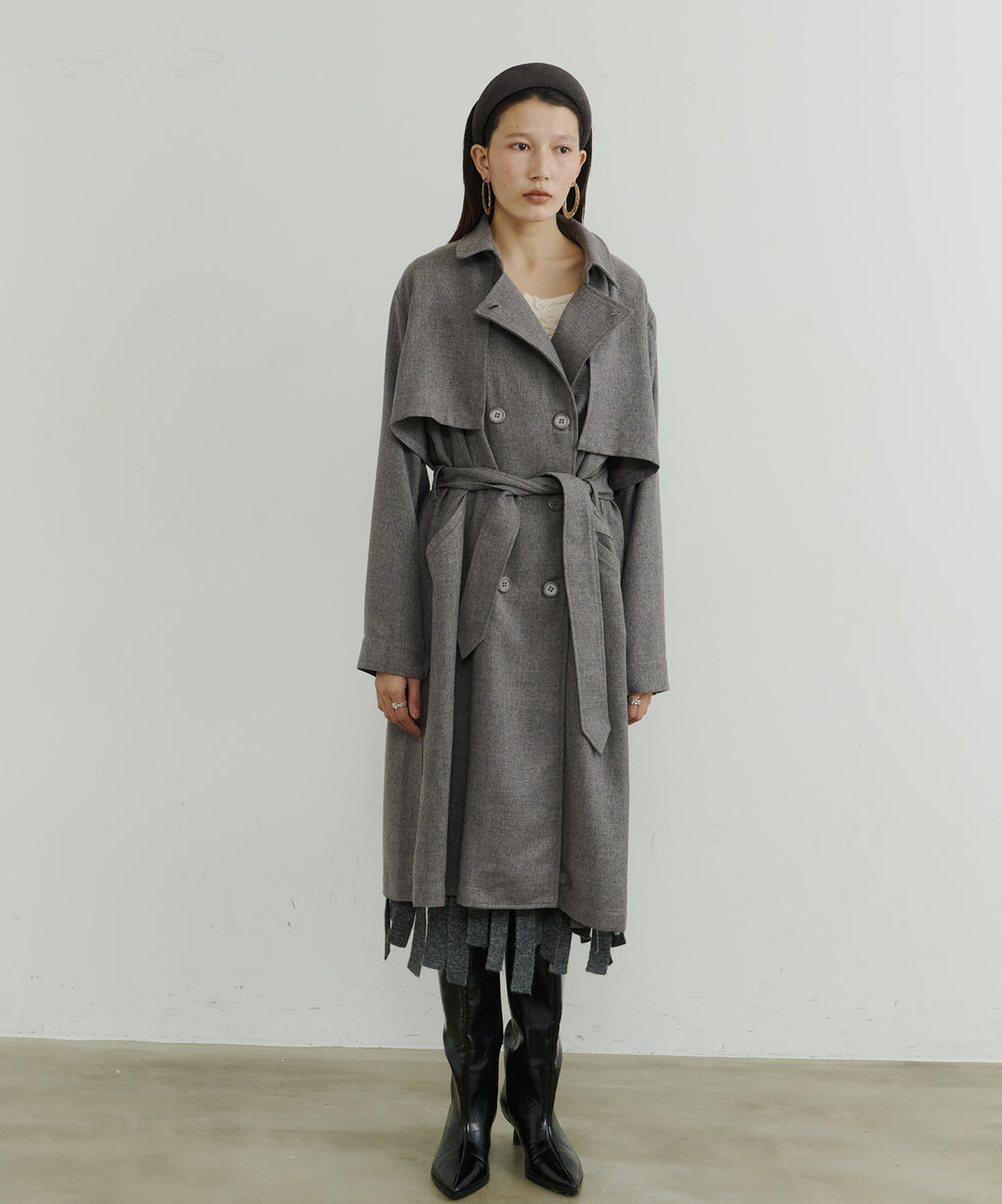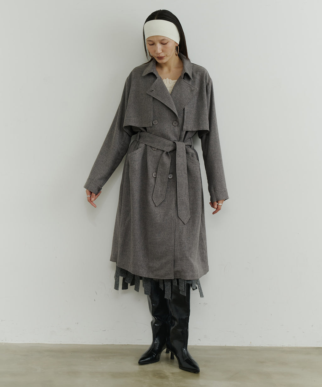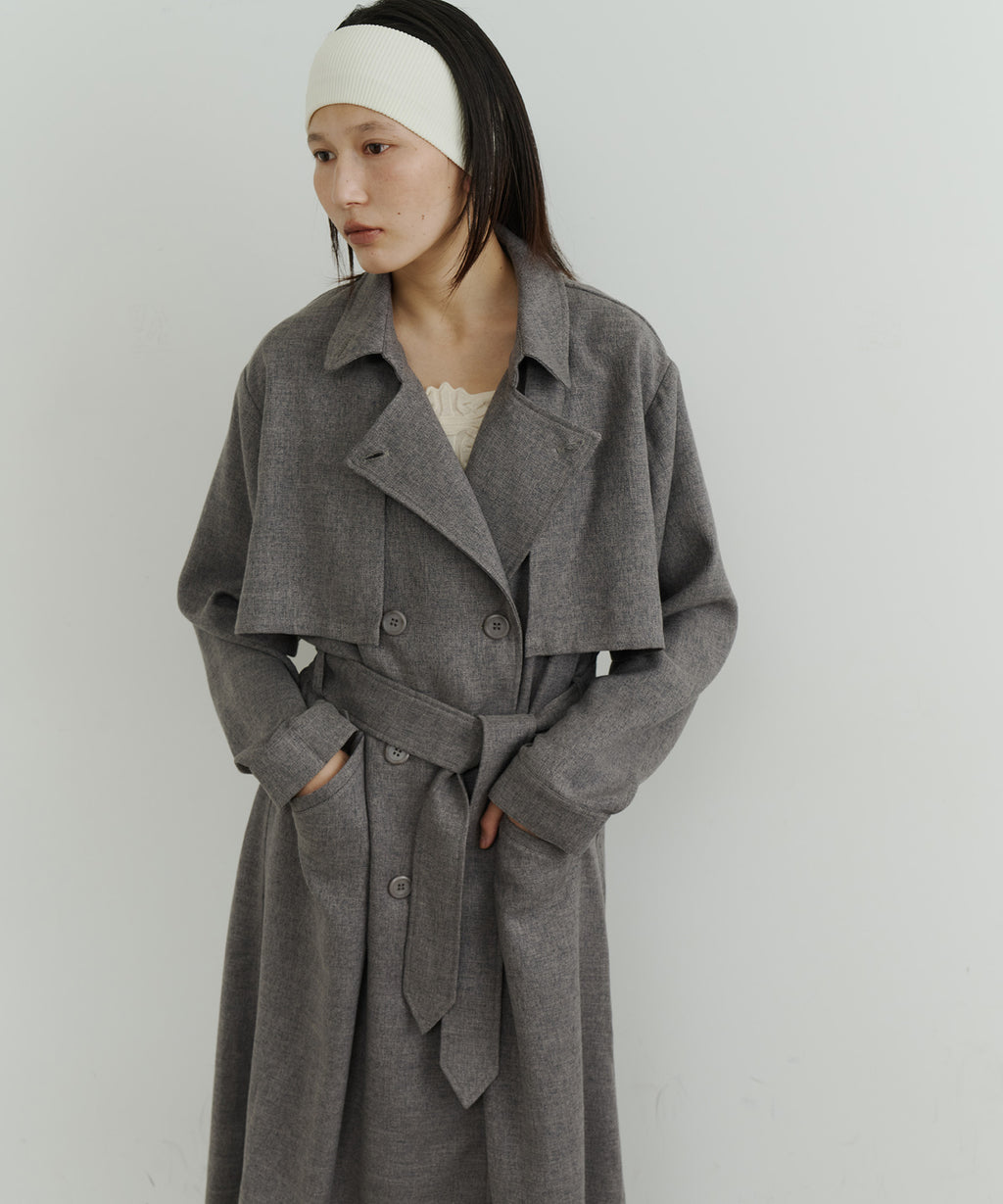 大きなケープが特徴的なトレンチコート。