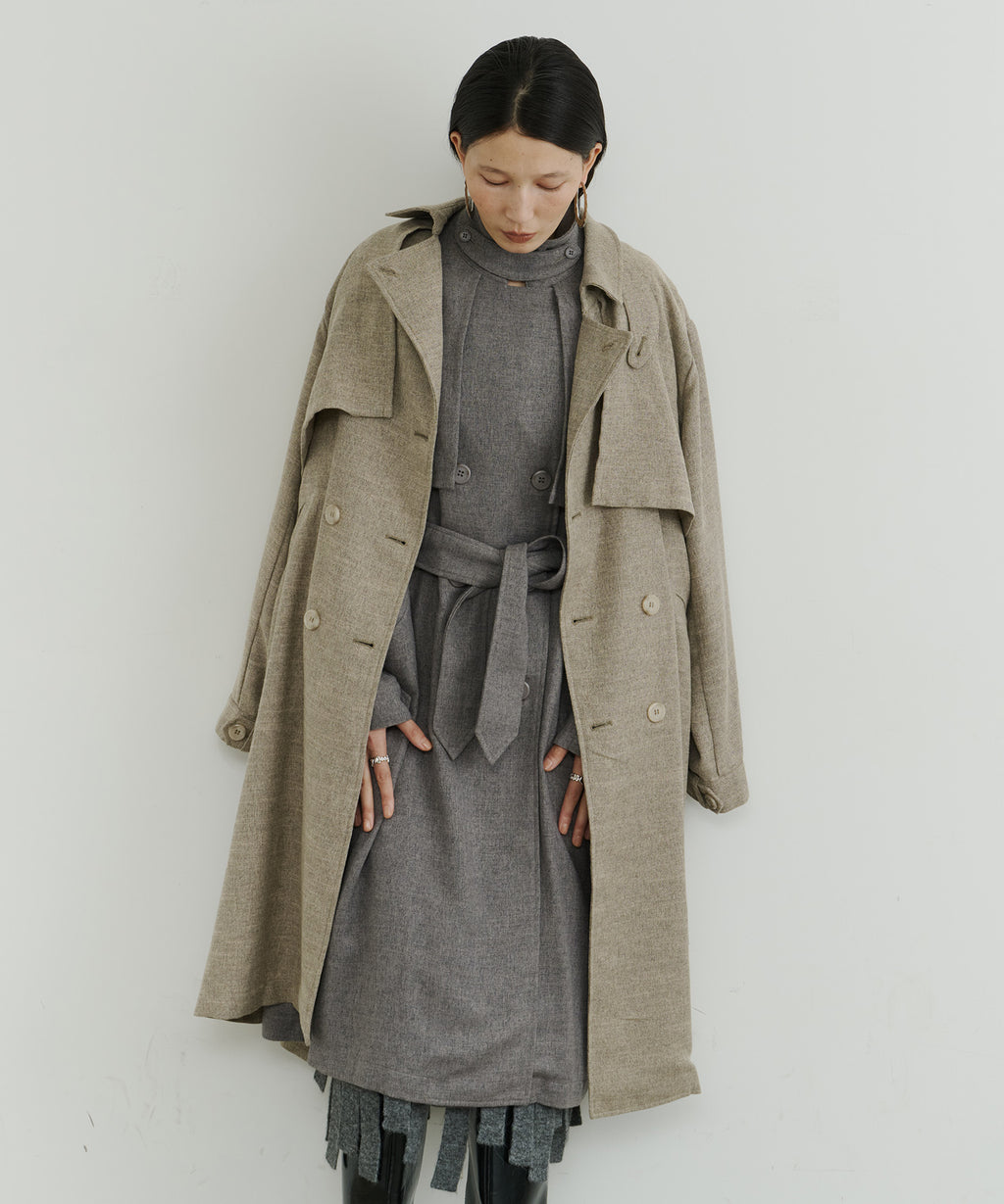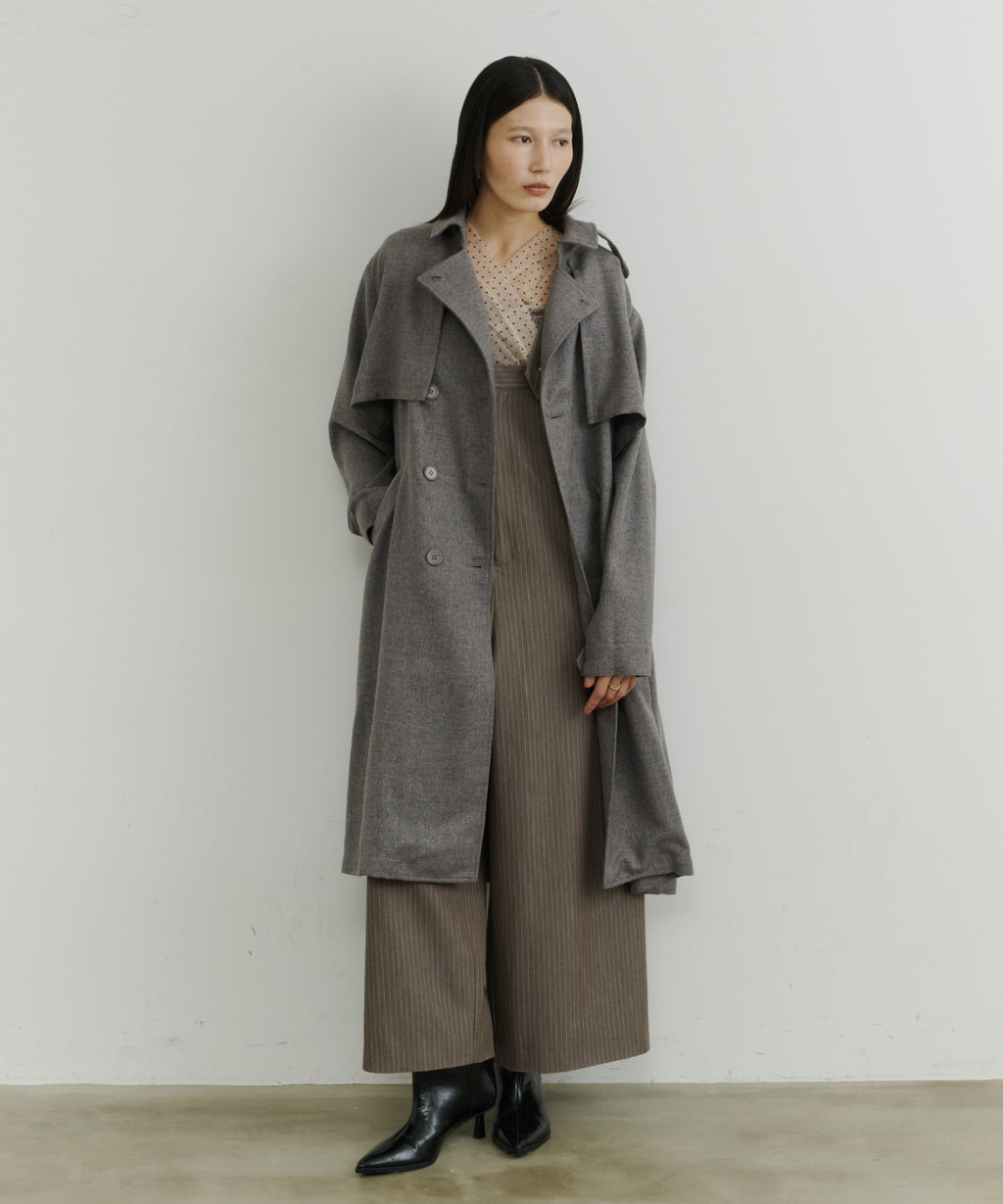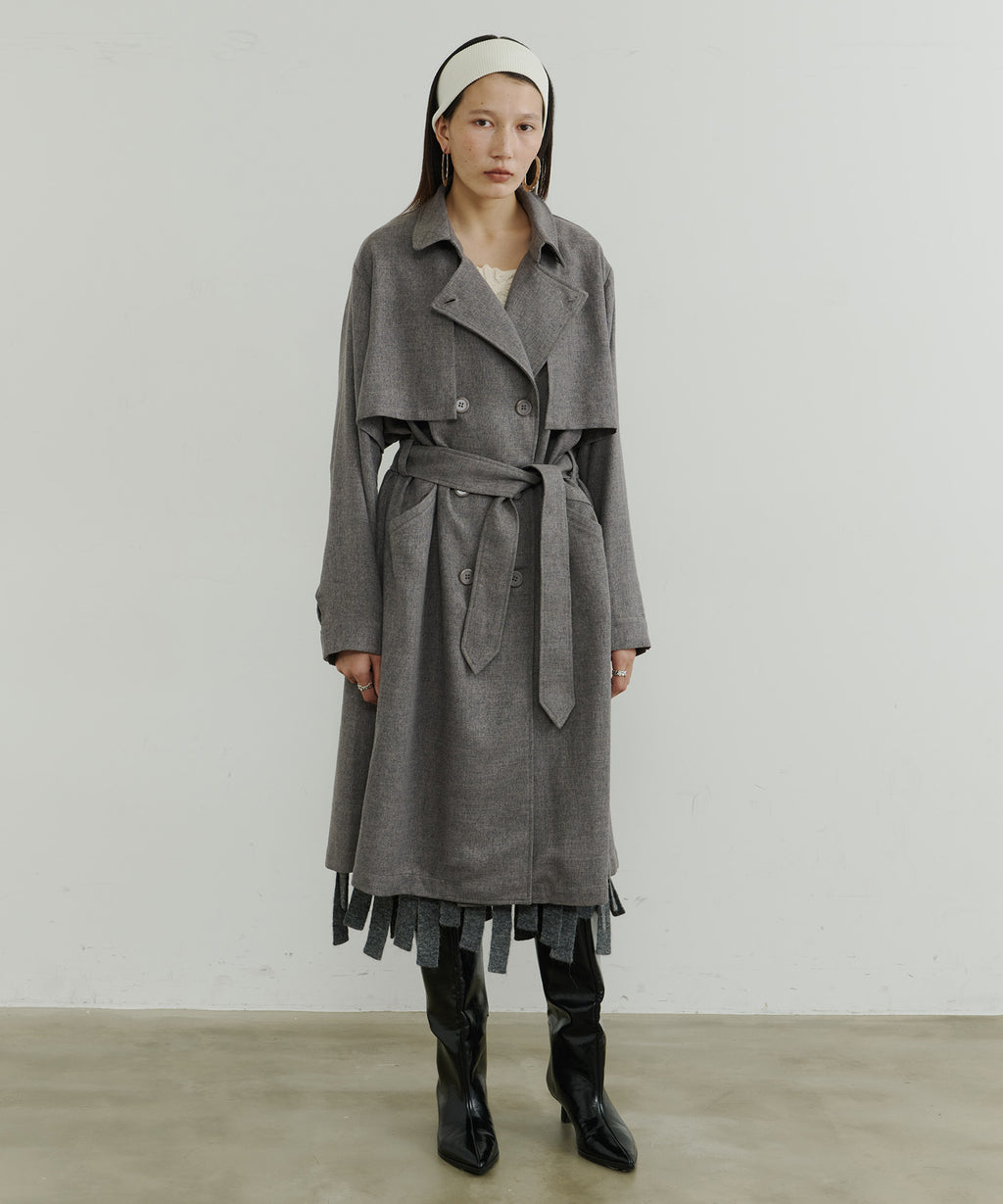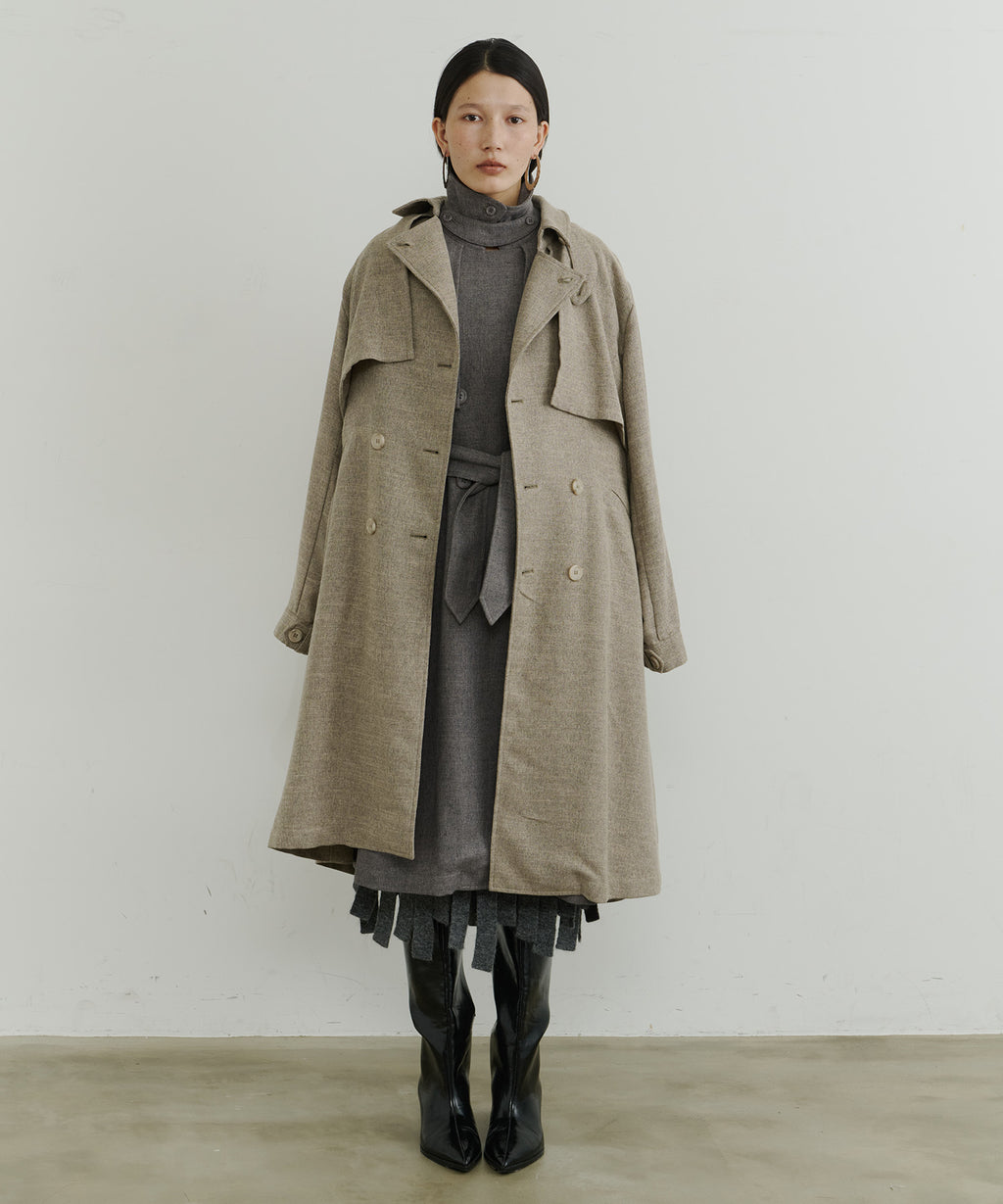 大きなケープが特徴的なトレンチコート。