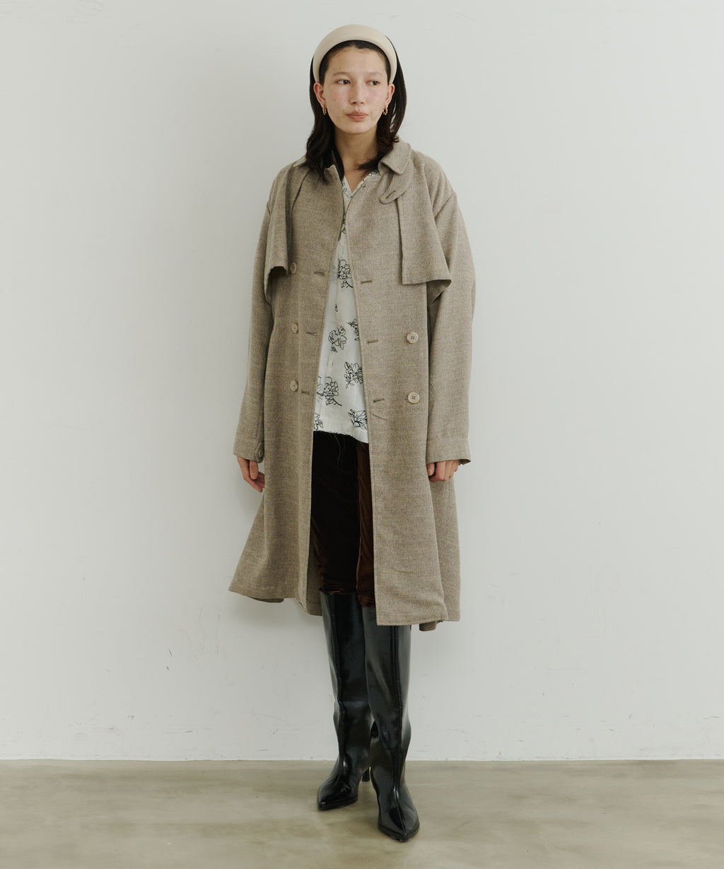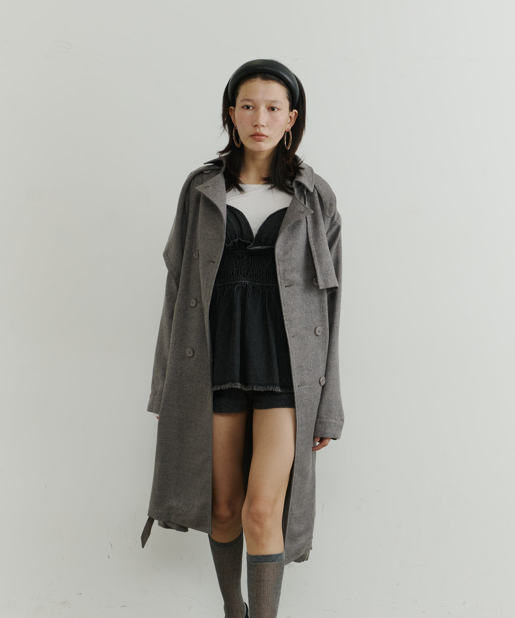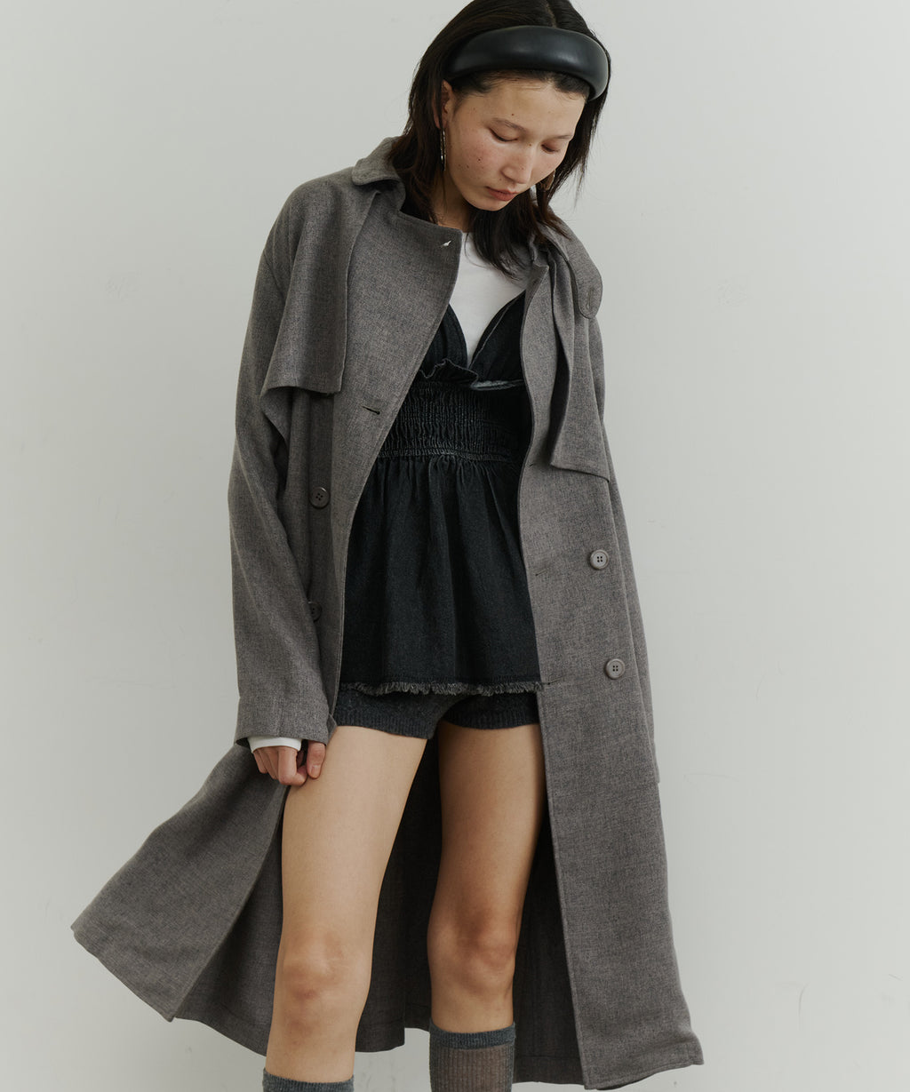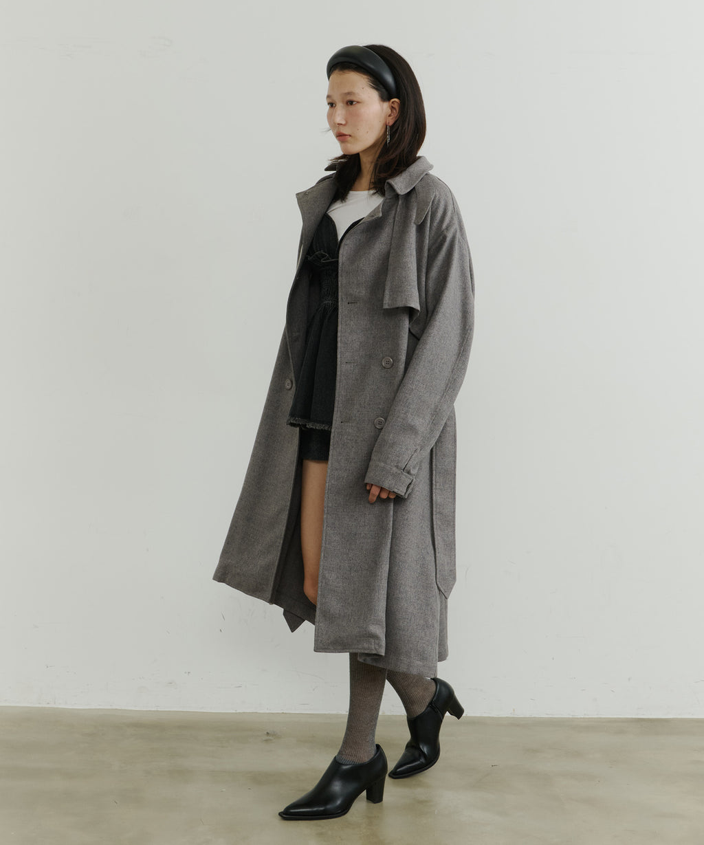大きなケープが特徴的なトレンチコート。