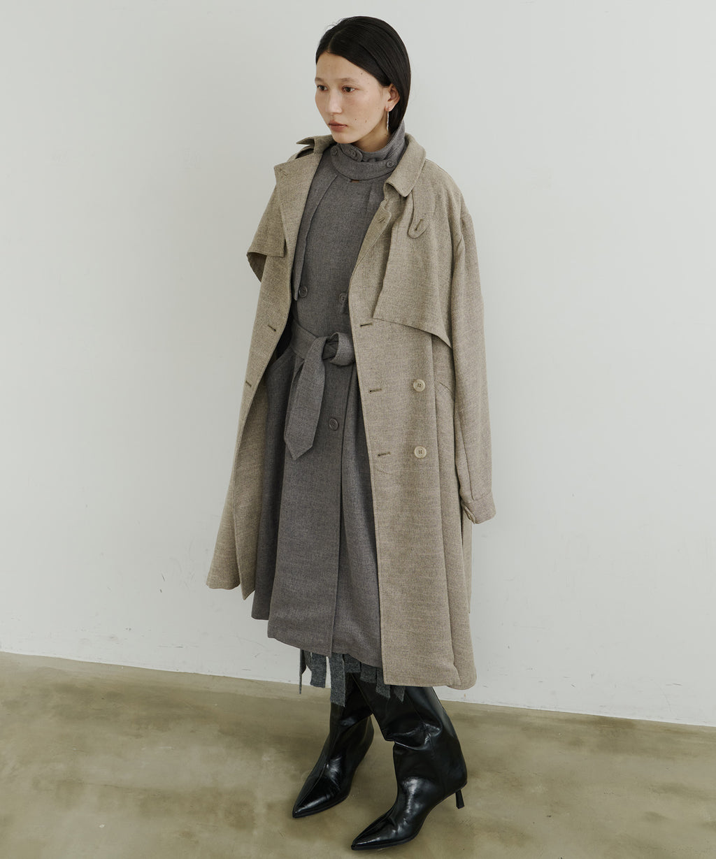 クラシカルな印象もありながら、表情のある生地感でカジュアルさを兼ね備える、room153らしい1着。