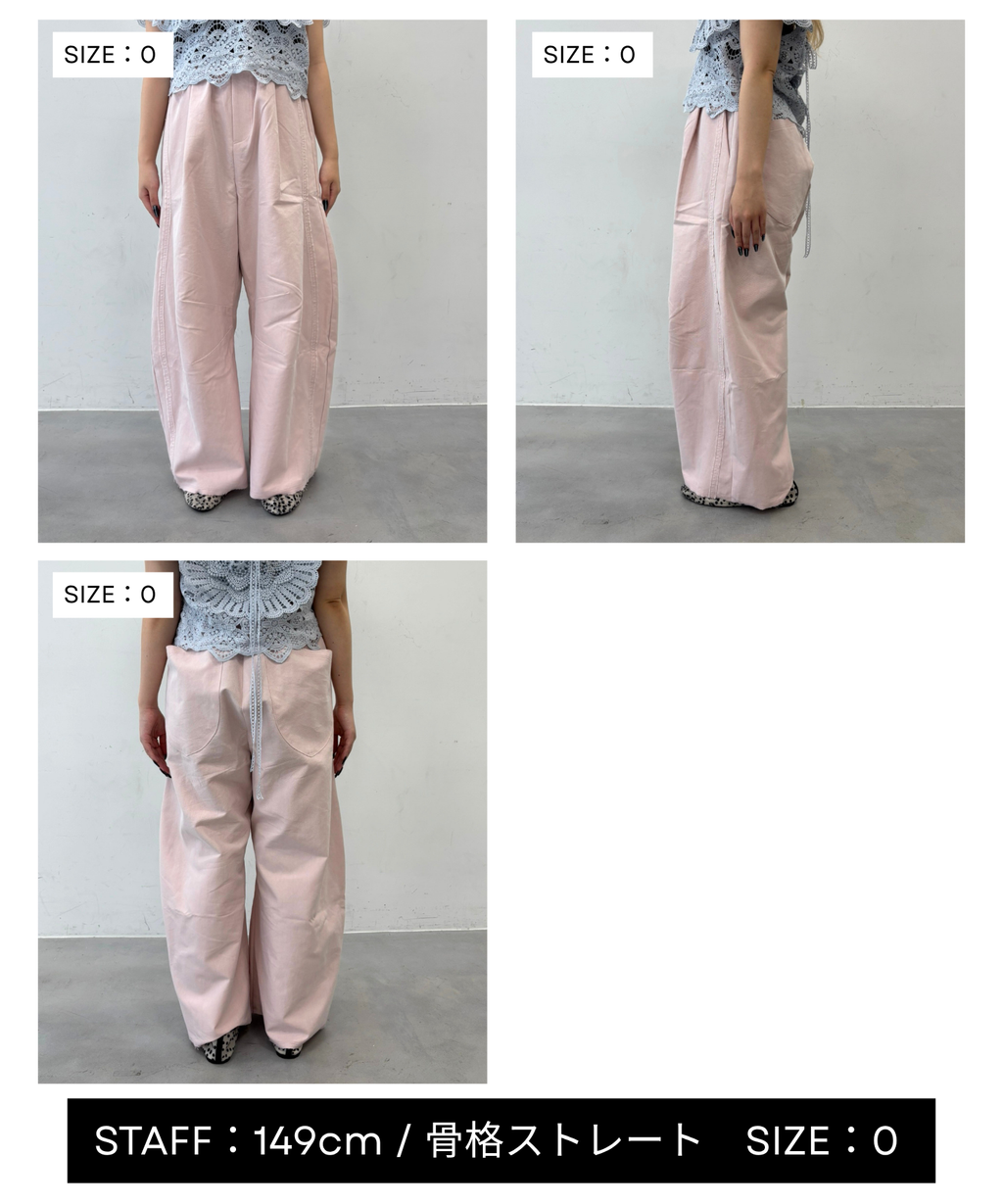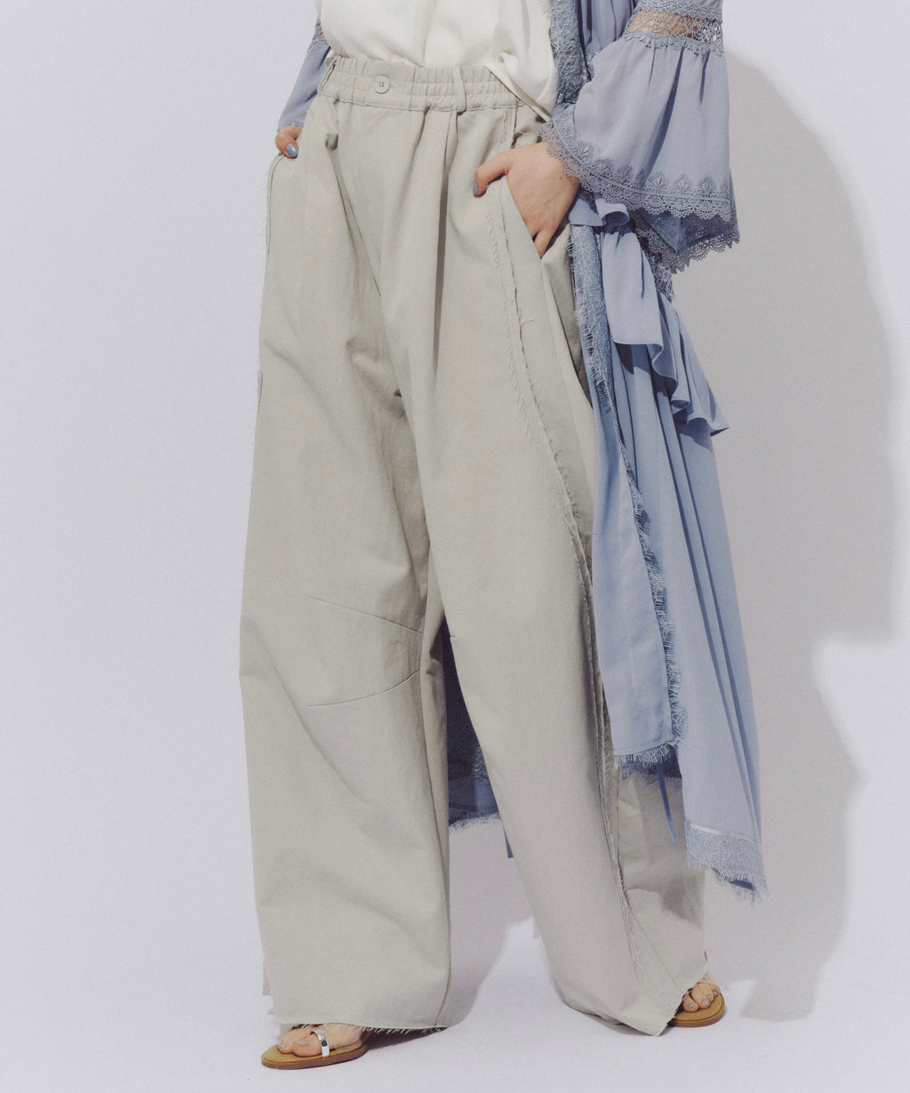 立体的なカーブを描いた、シルエットが魅力のスプリングパンツ。