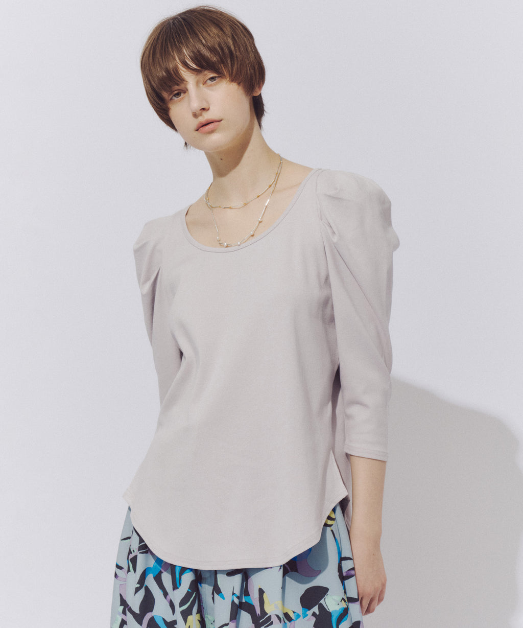 ざっくりと開けたUネックに対してギャザーを寄せた
