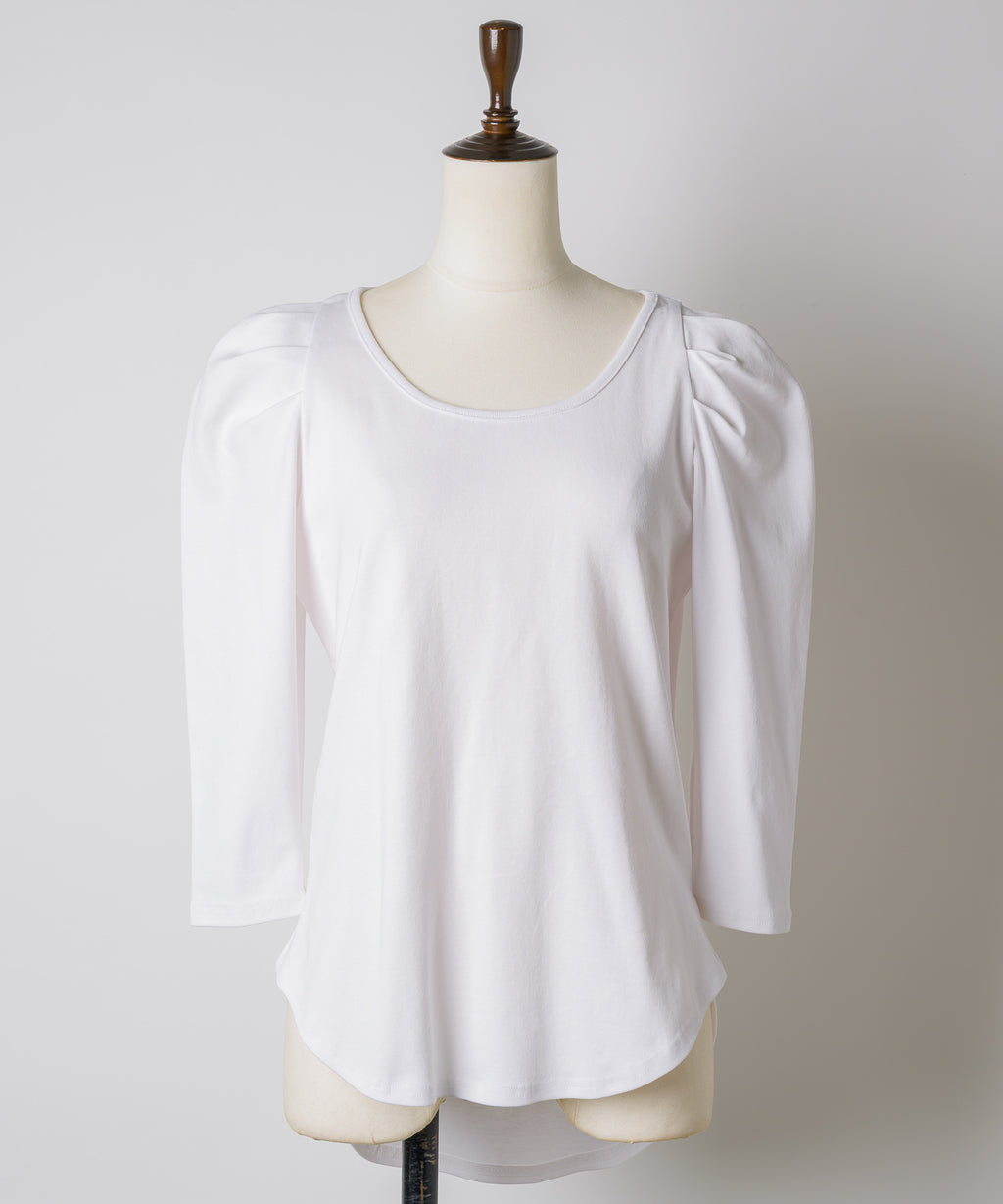 ボリュームスリーブのシルエットがKEEPされる素材感。