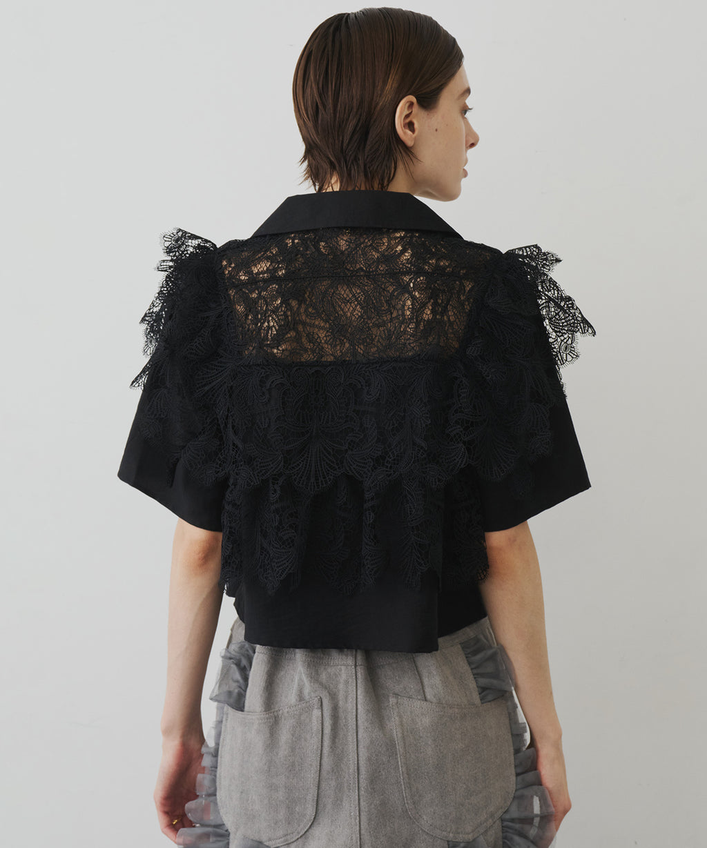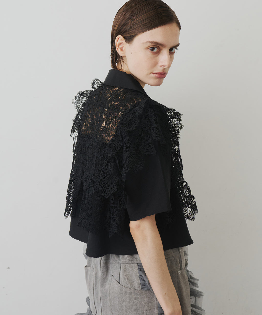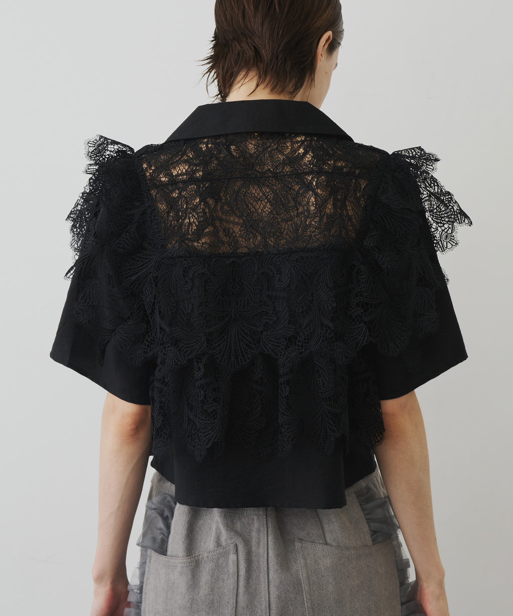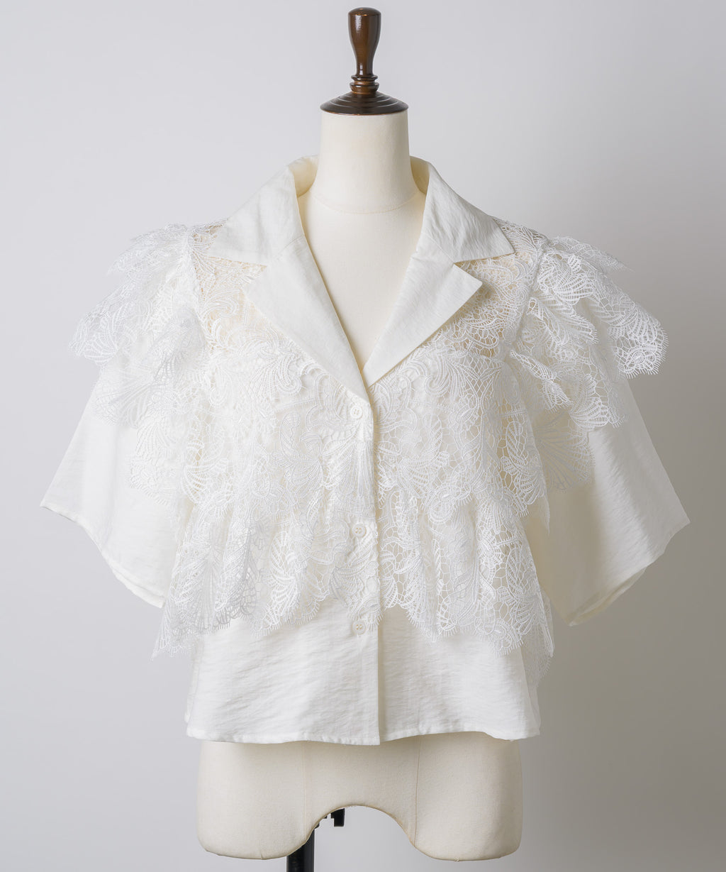ヨーク部分にレースを贅沢に施した存在感のあるデザインシャツ。