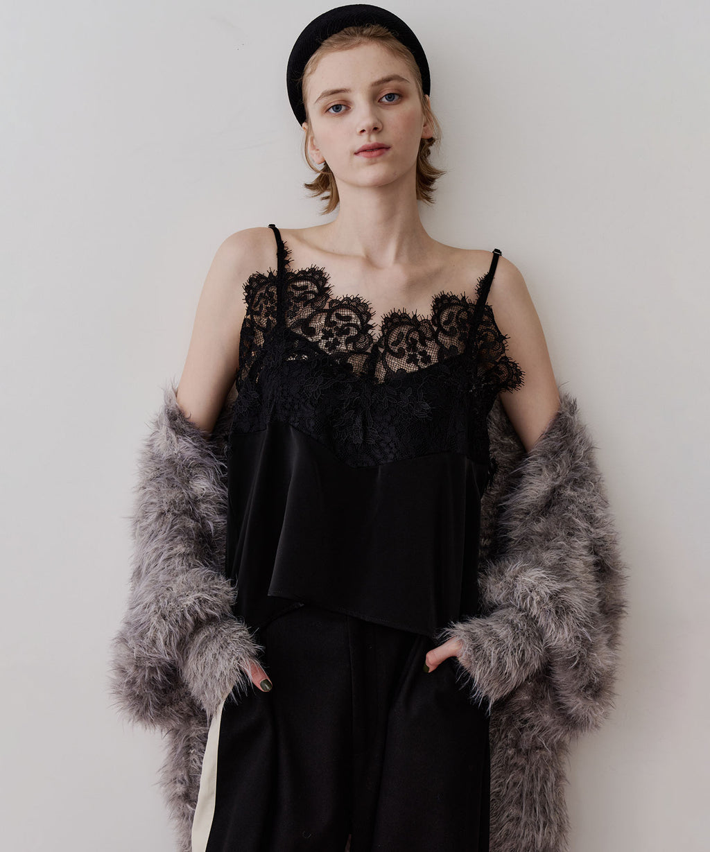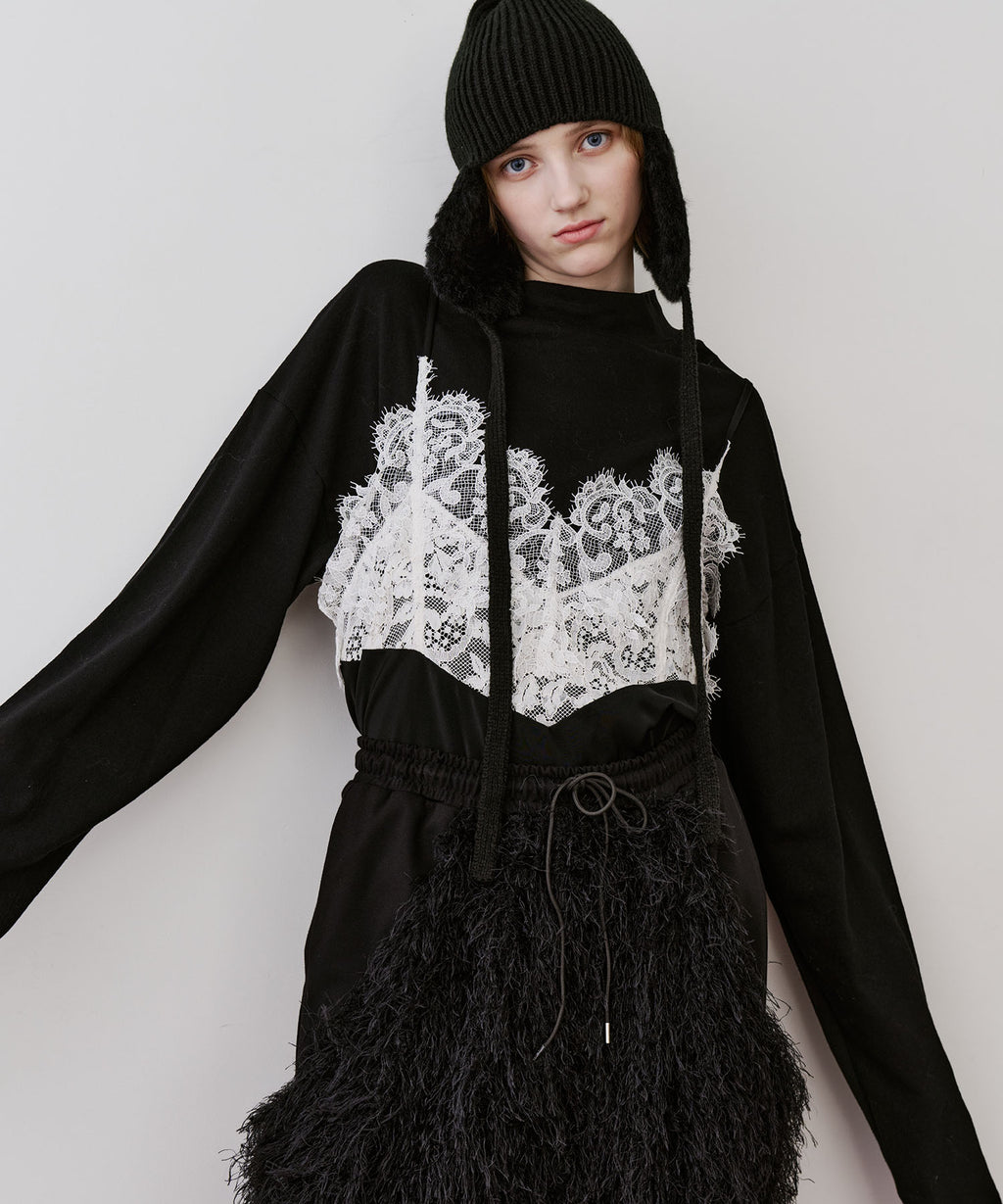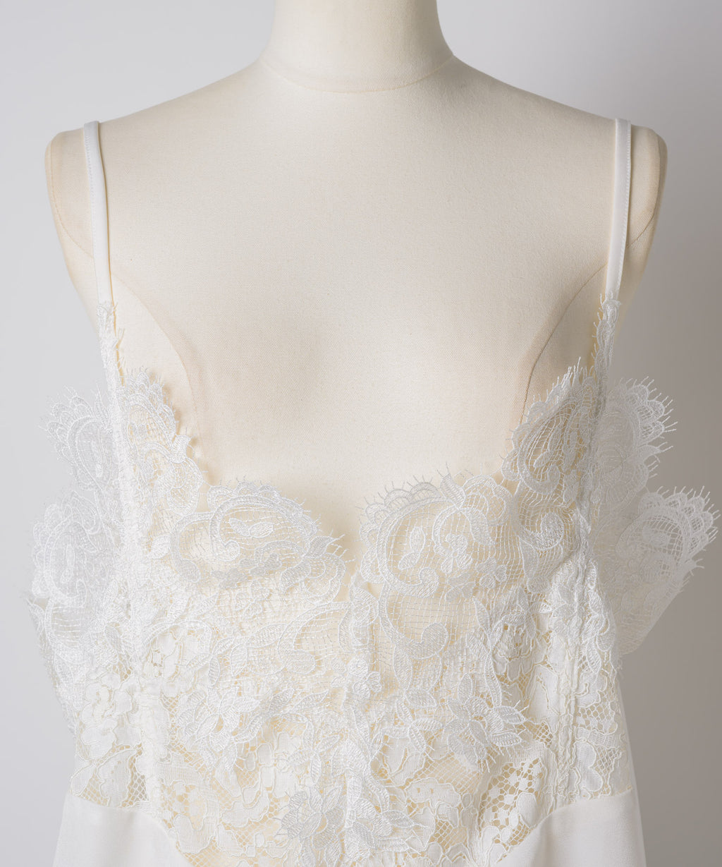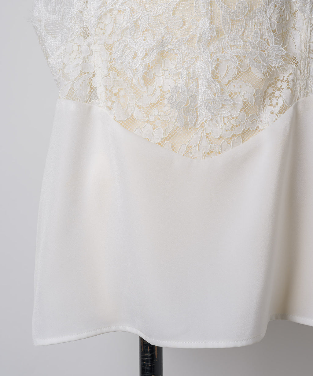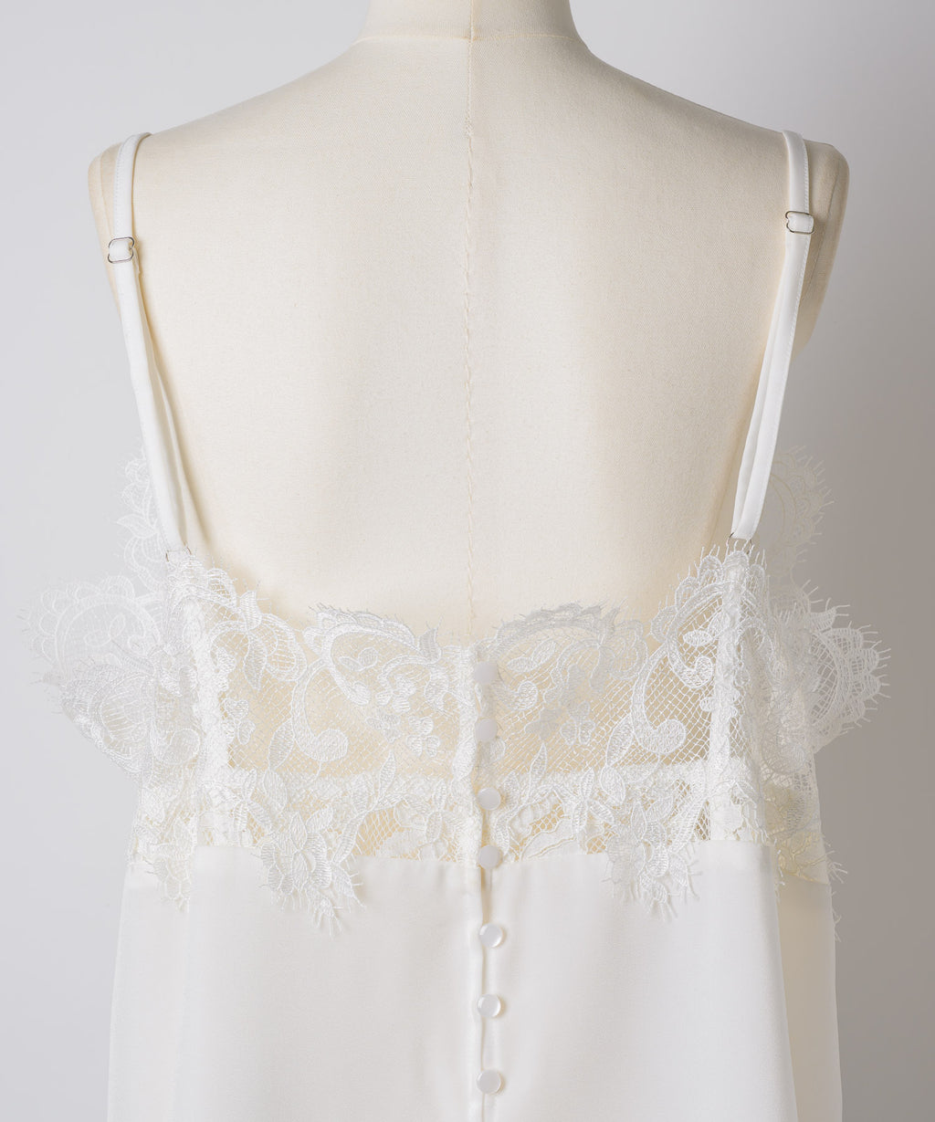 胸元〜背中にかけて、ぐるりと幅広いレースをドッキング。