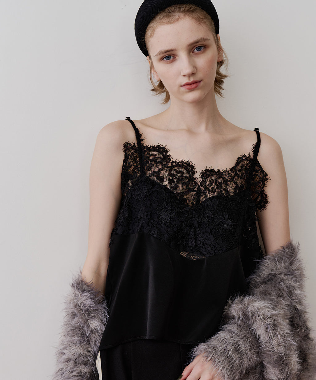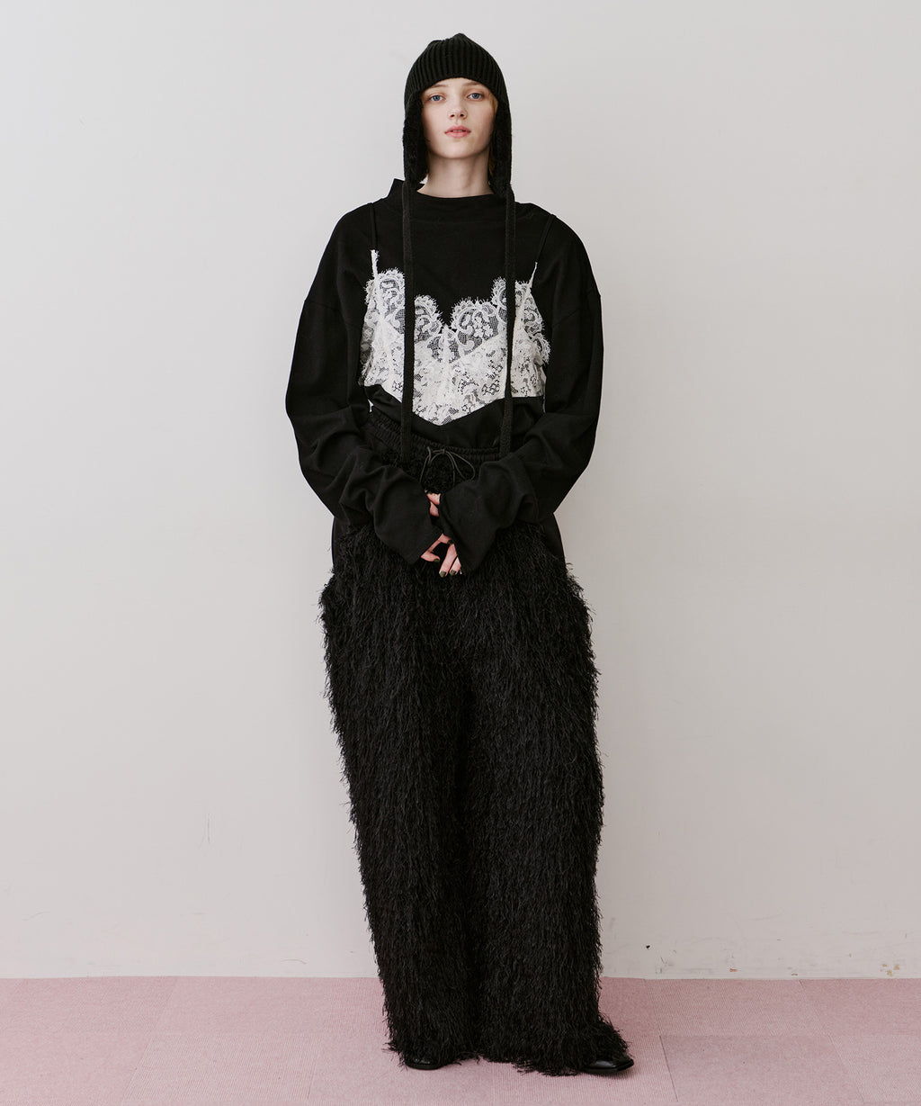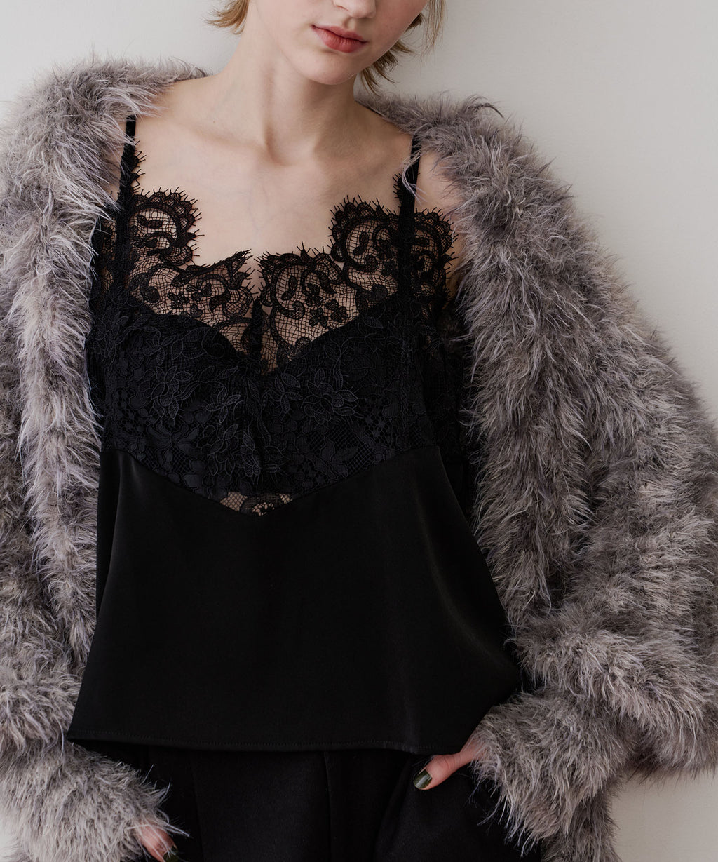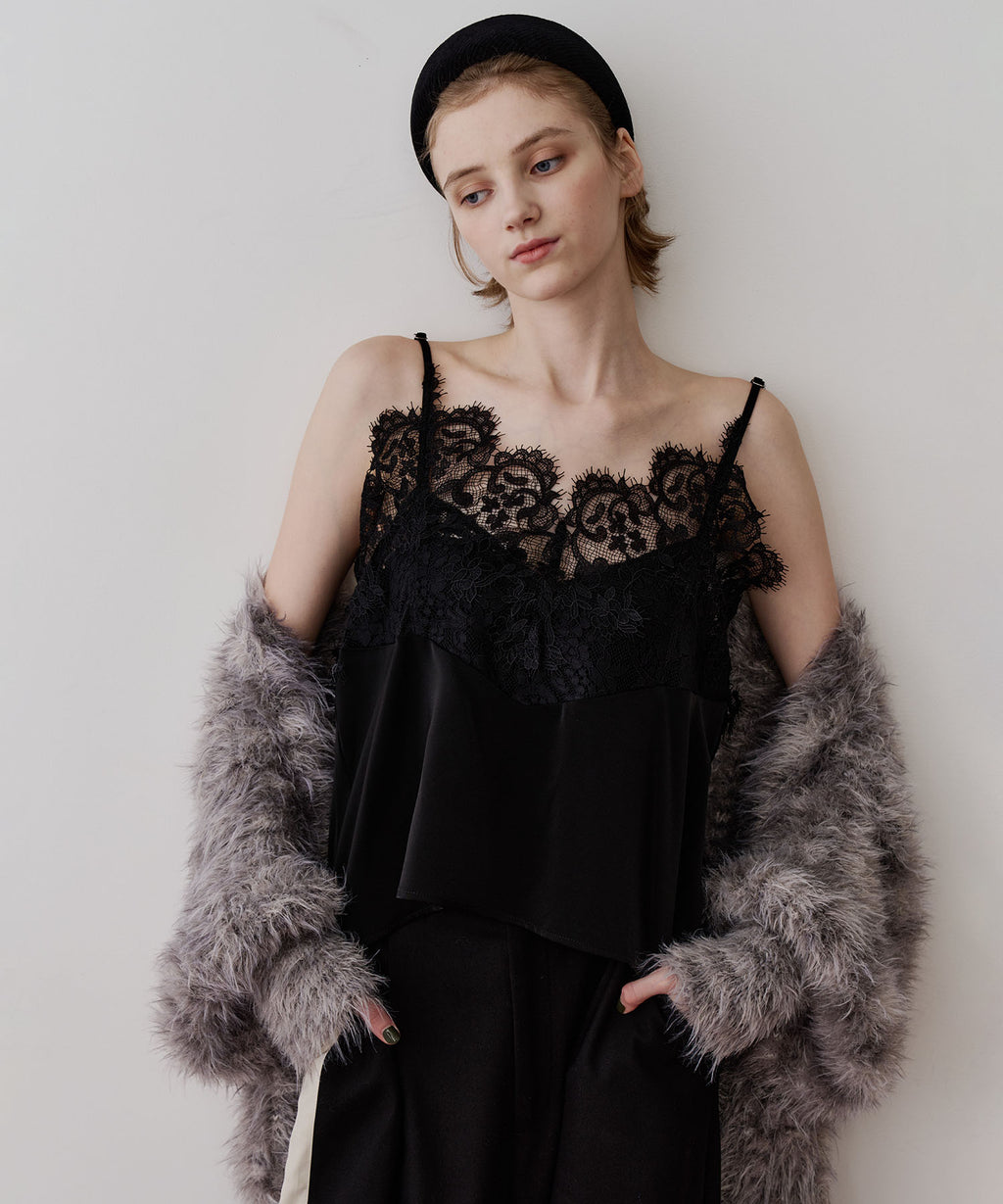 胸元〜背中にかけて、ぐるりと幅広いレースをドッキング。