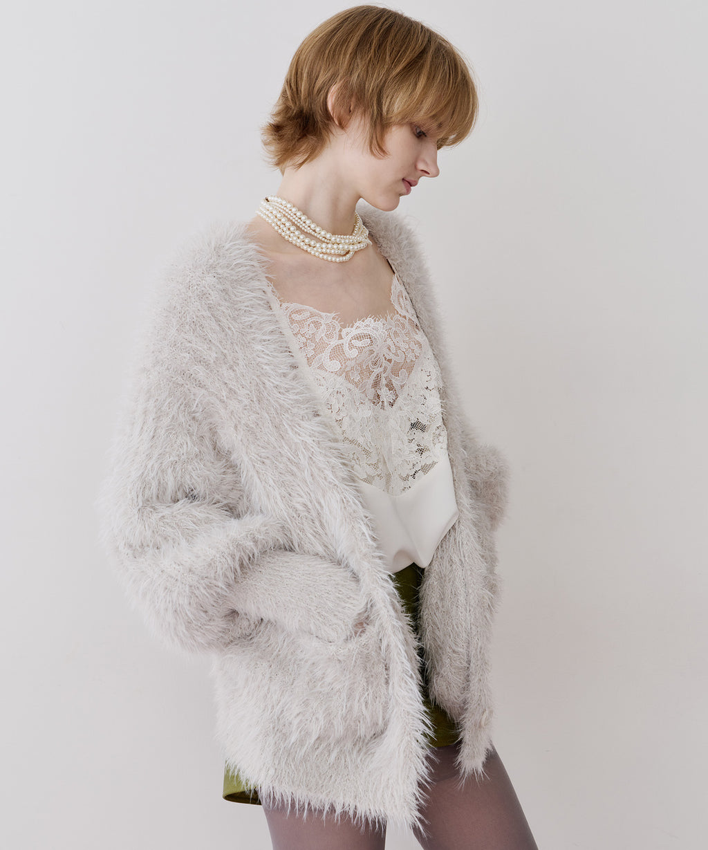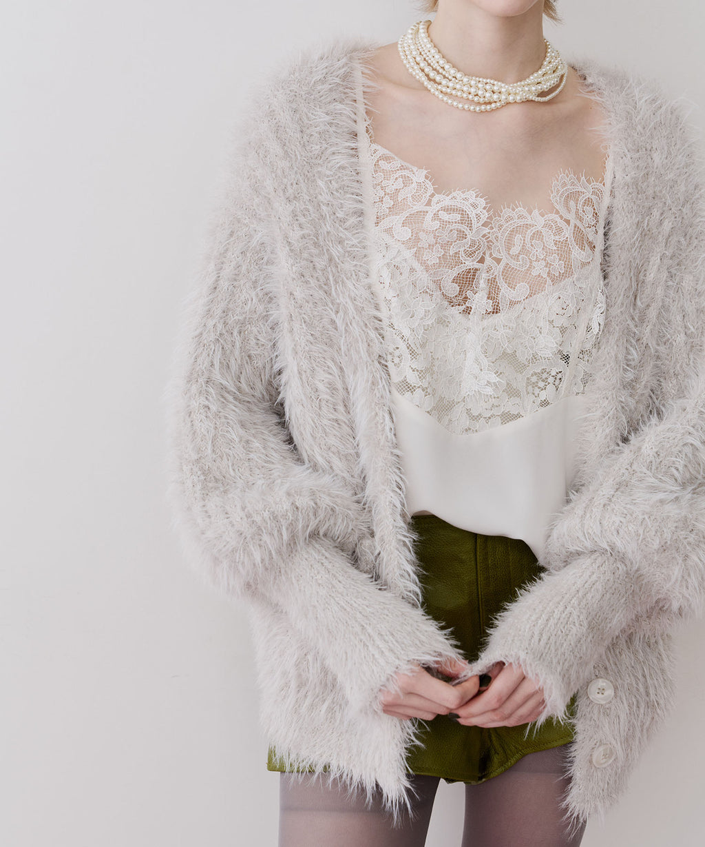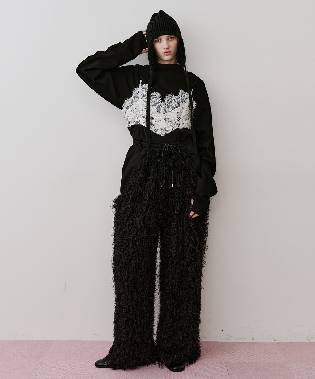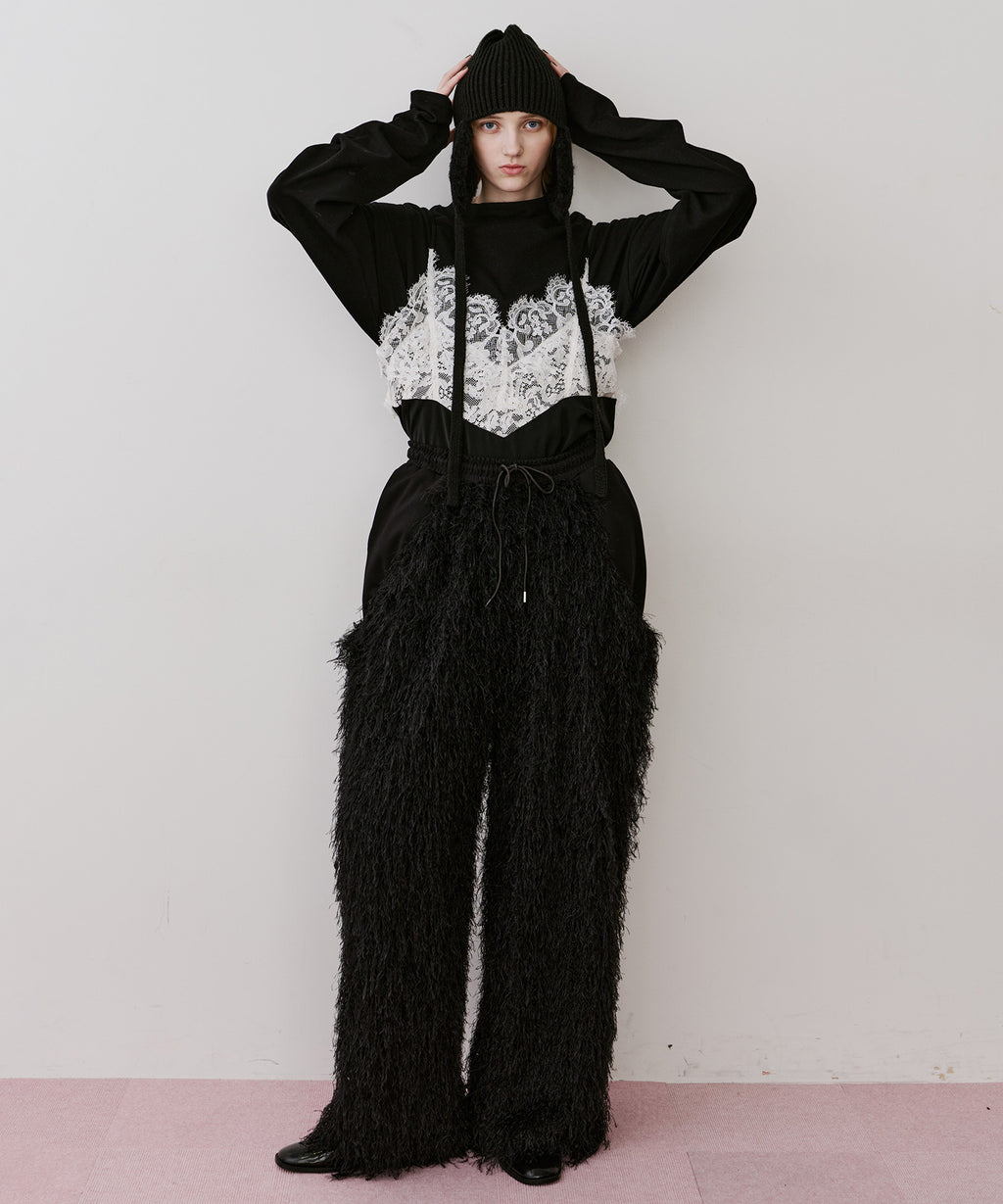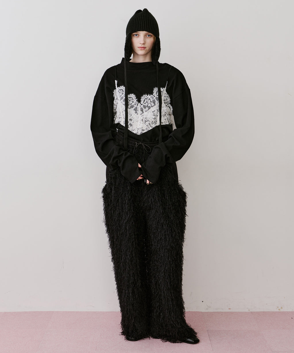 胸元〜背中にかけて、ぐるりと幅広いレースをドッキング。