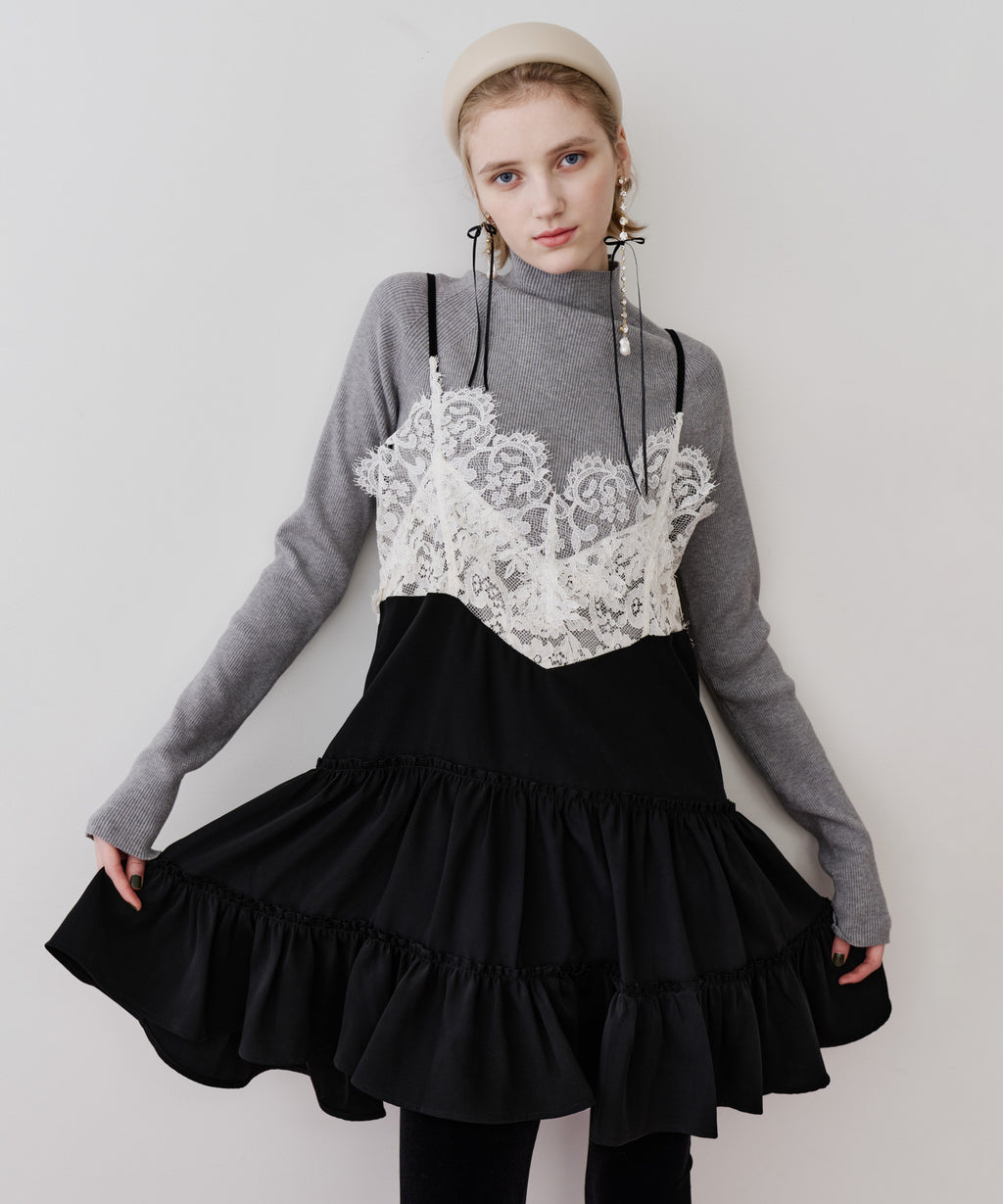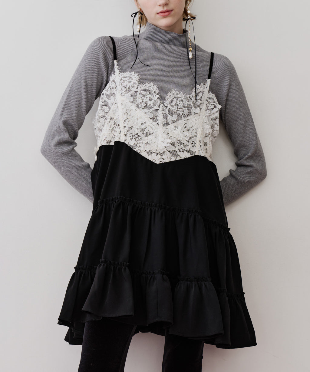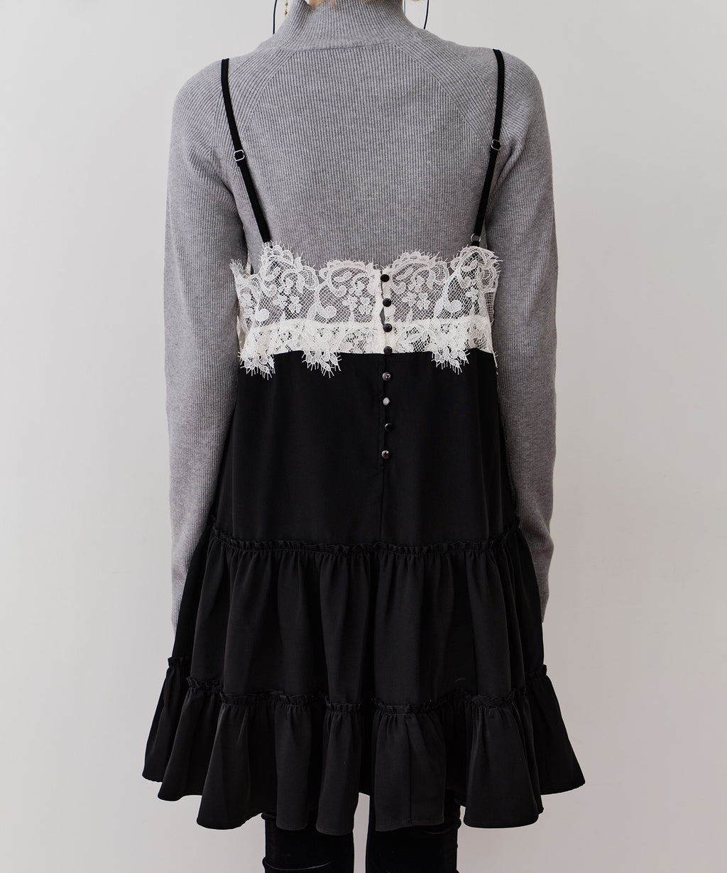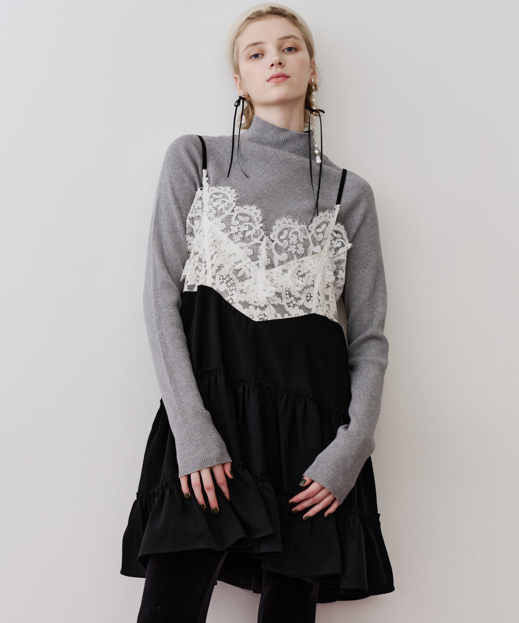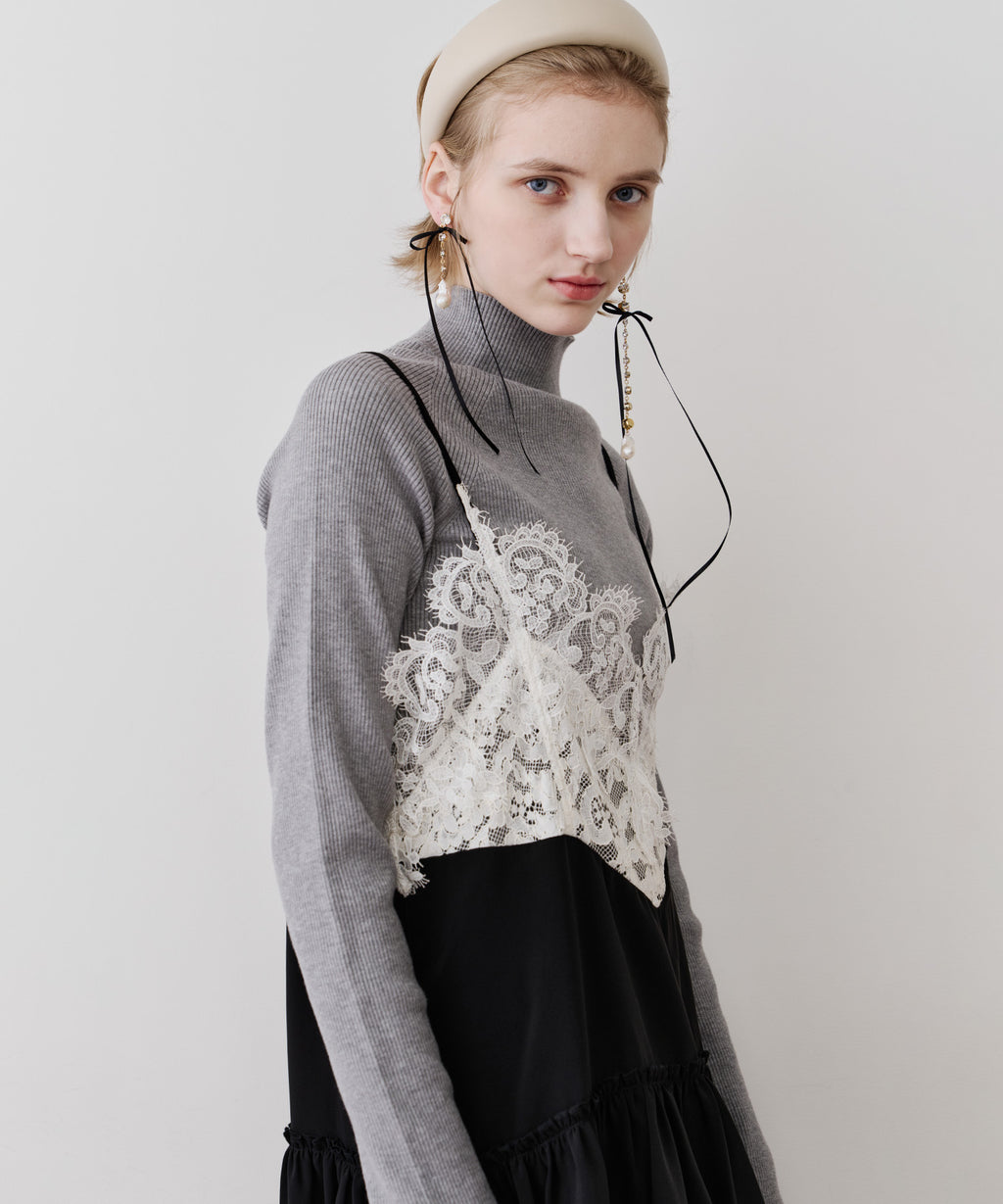 胸元〜背中にかけて、ぐるりと幅広いレースをドッキング。