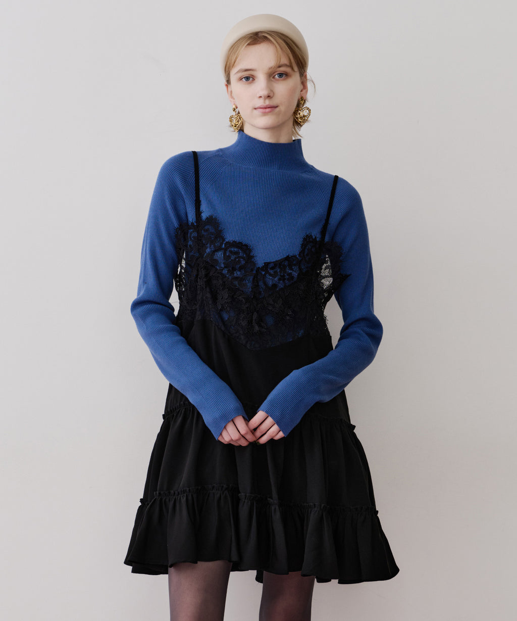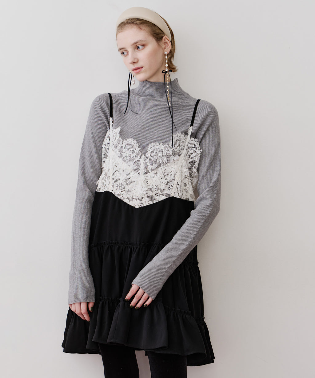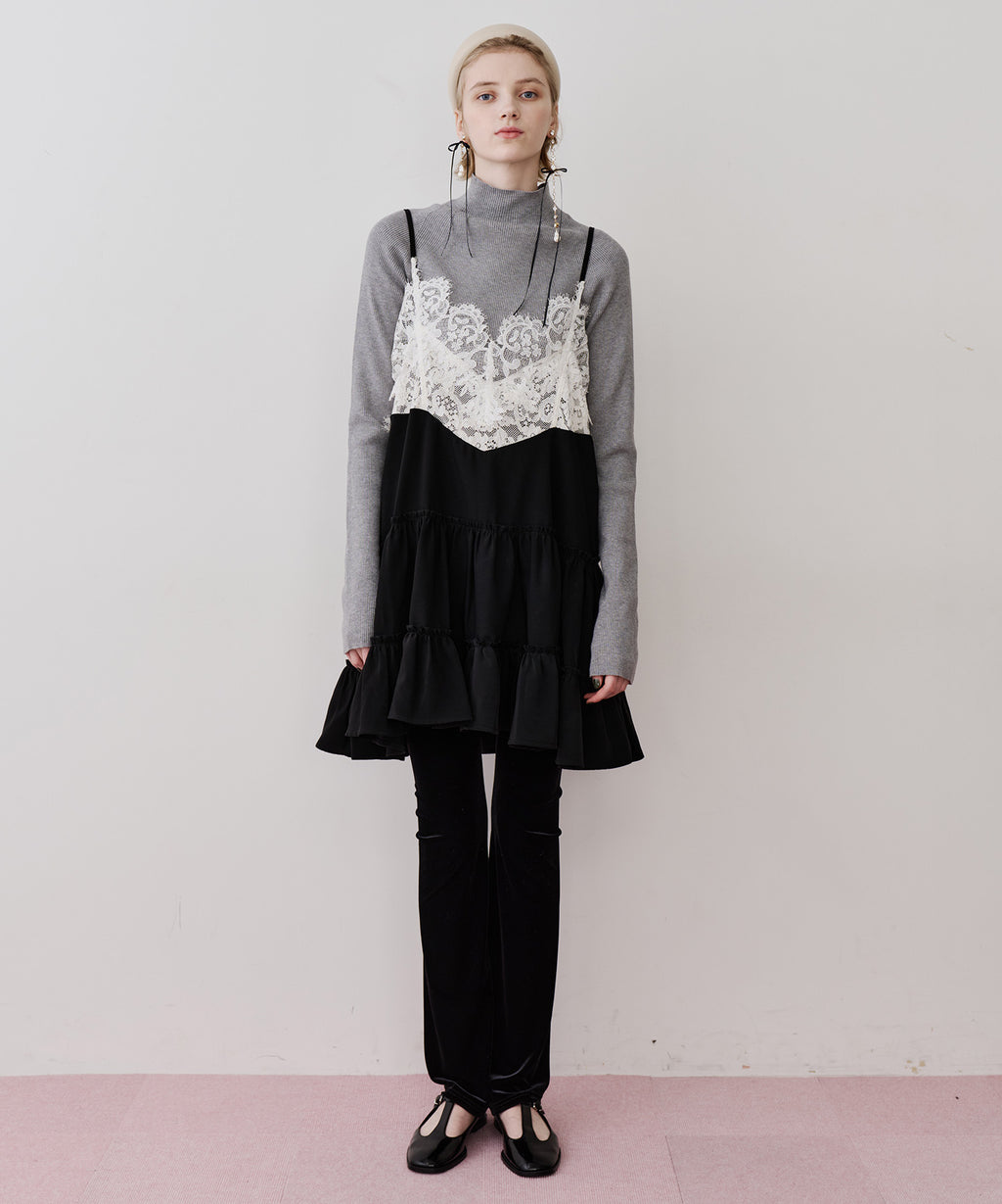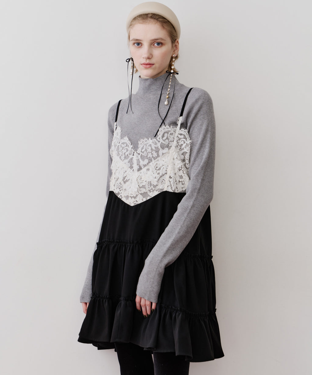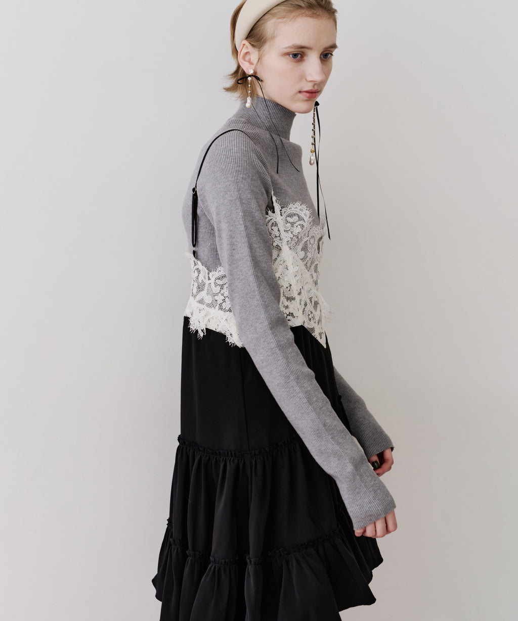胸元〜背中にかけて、ぐるりと幅広いレースをドッキング。