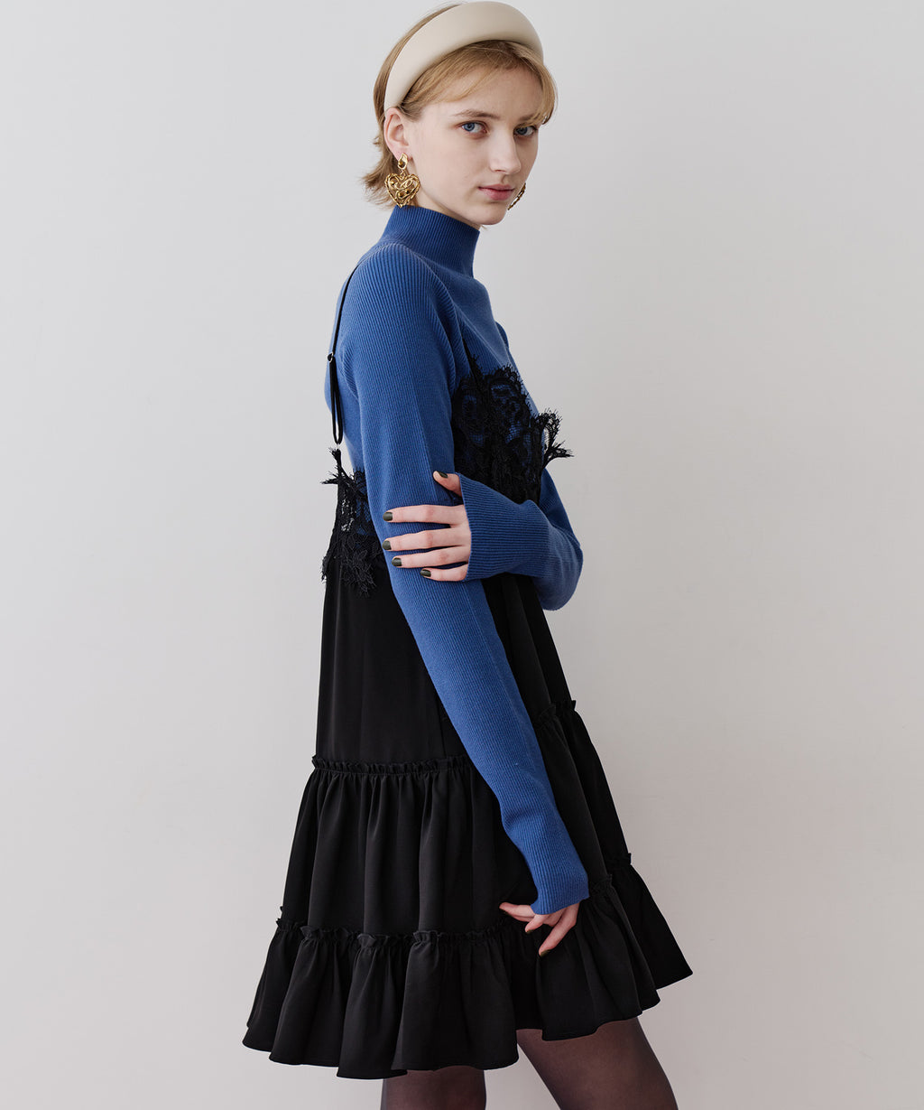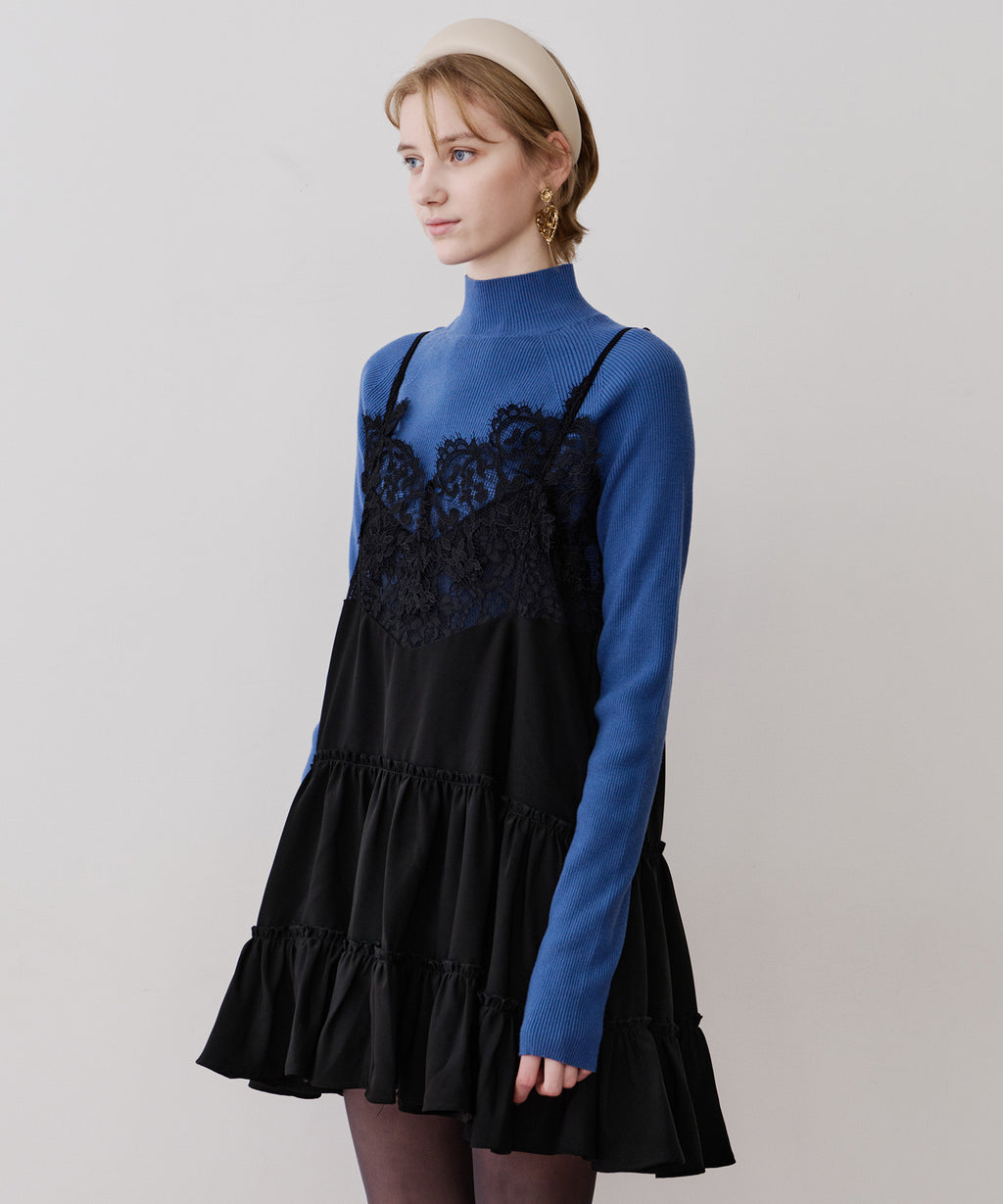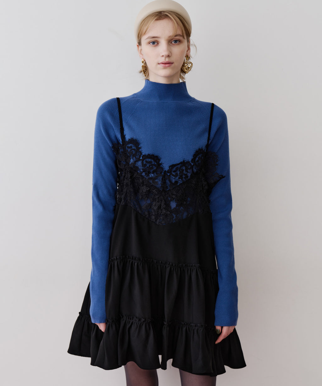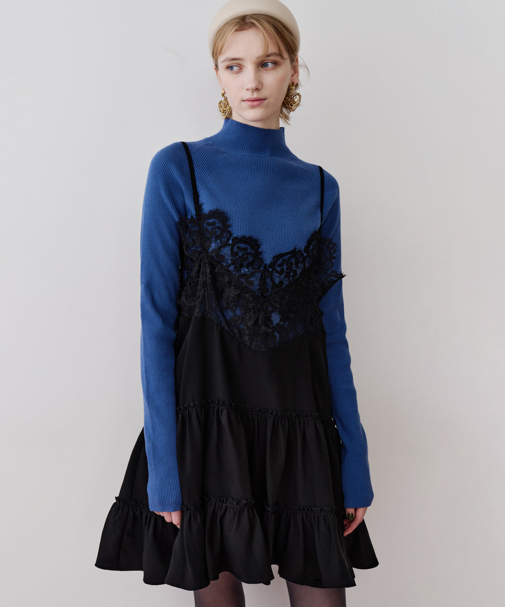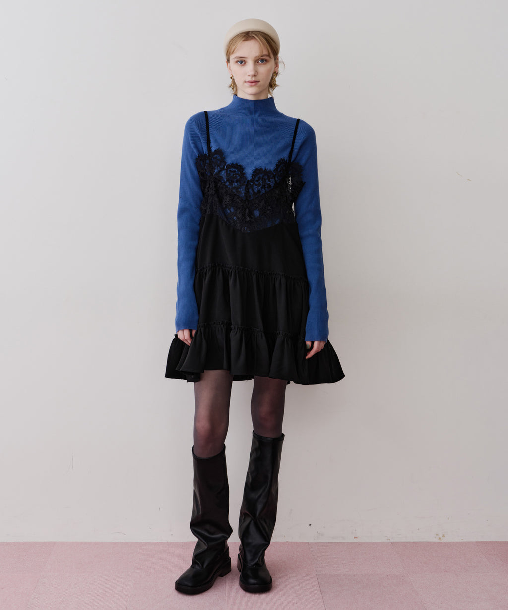 胸元〜背中にかけて、ぐるりと幅広いレースをドッキング。