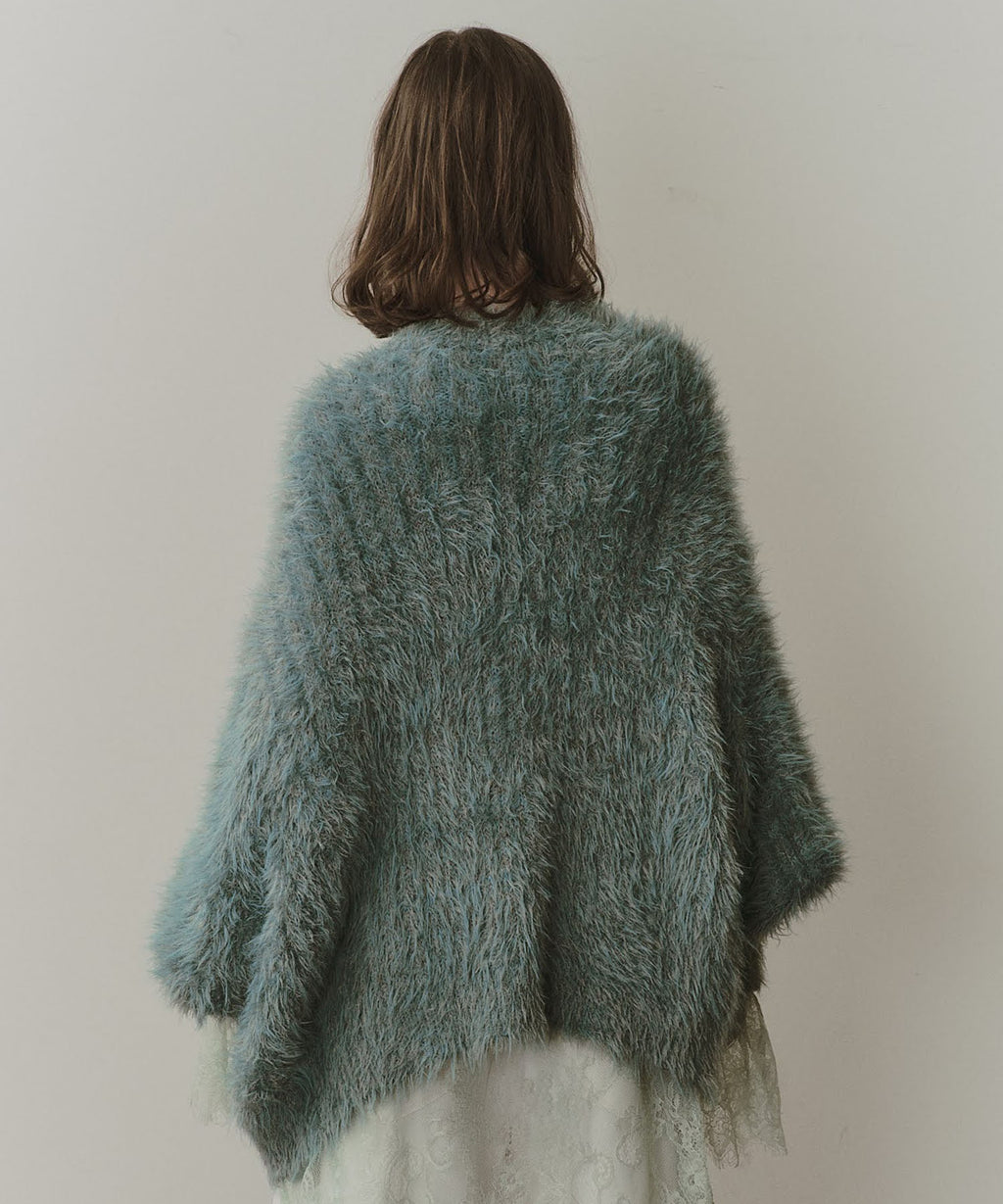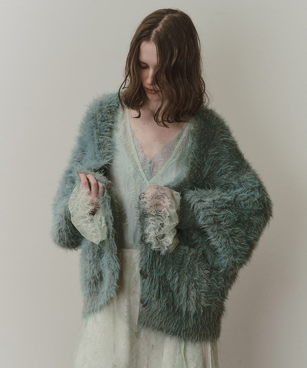 毛足の長いフェザーニットで見た目にも暖かなニットカーディガン 。
