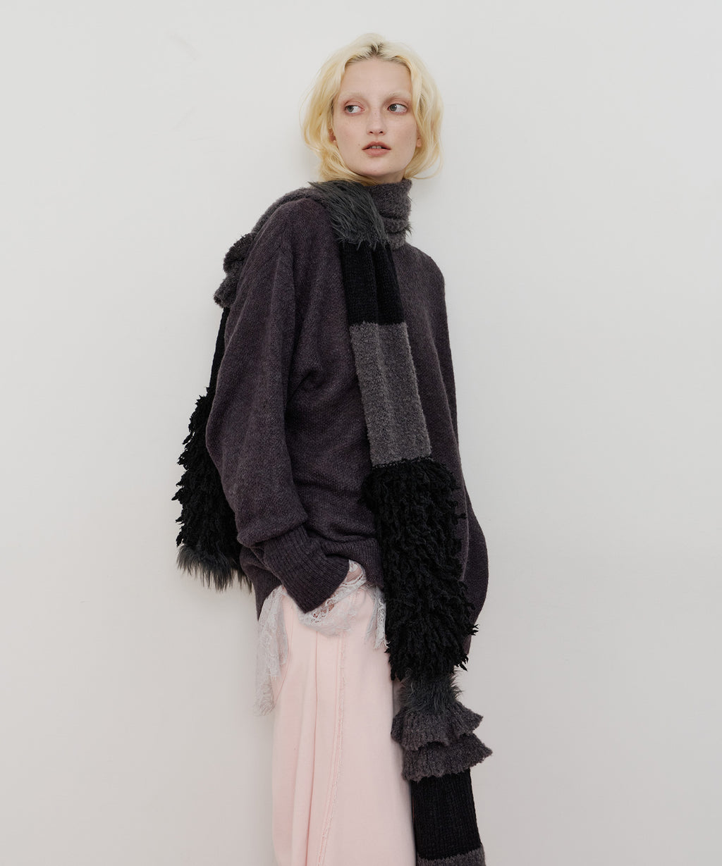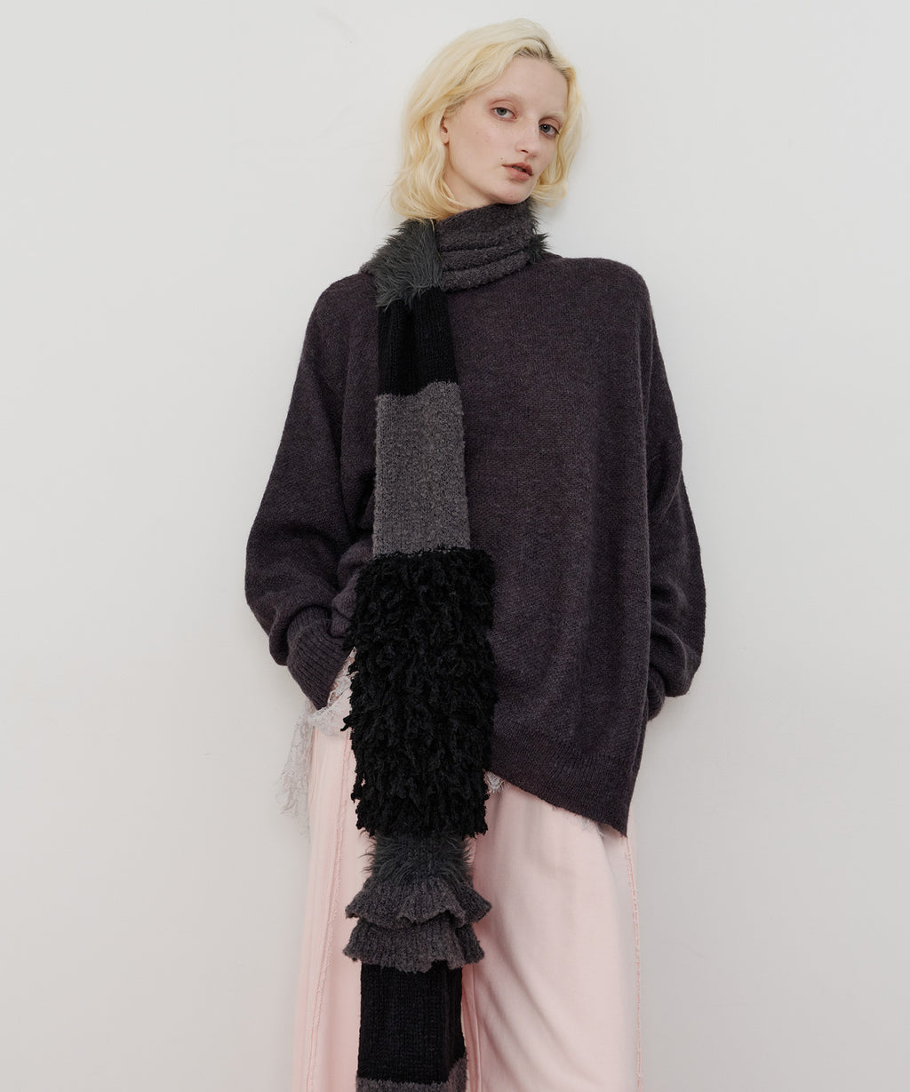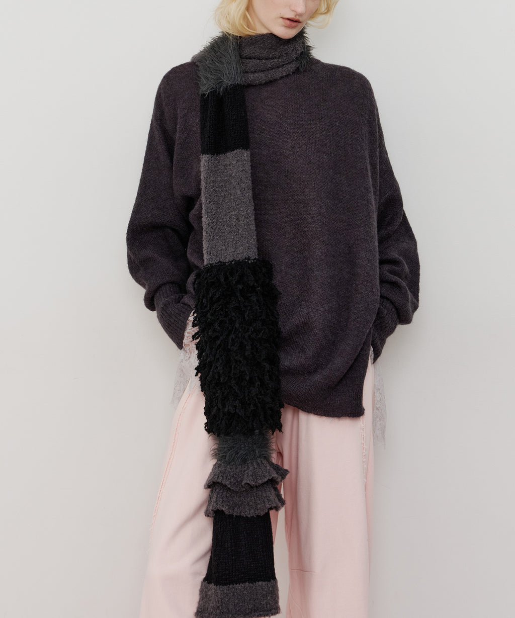 暖かいのにライトな巻き心地が嬉しい、ニットマフラー。