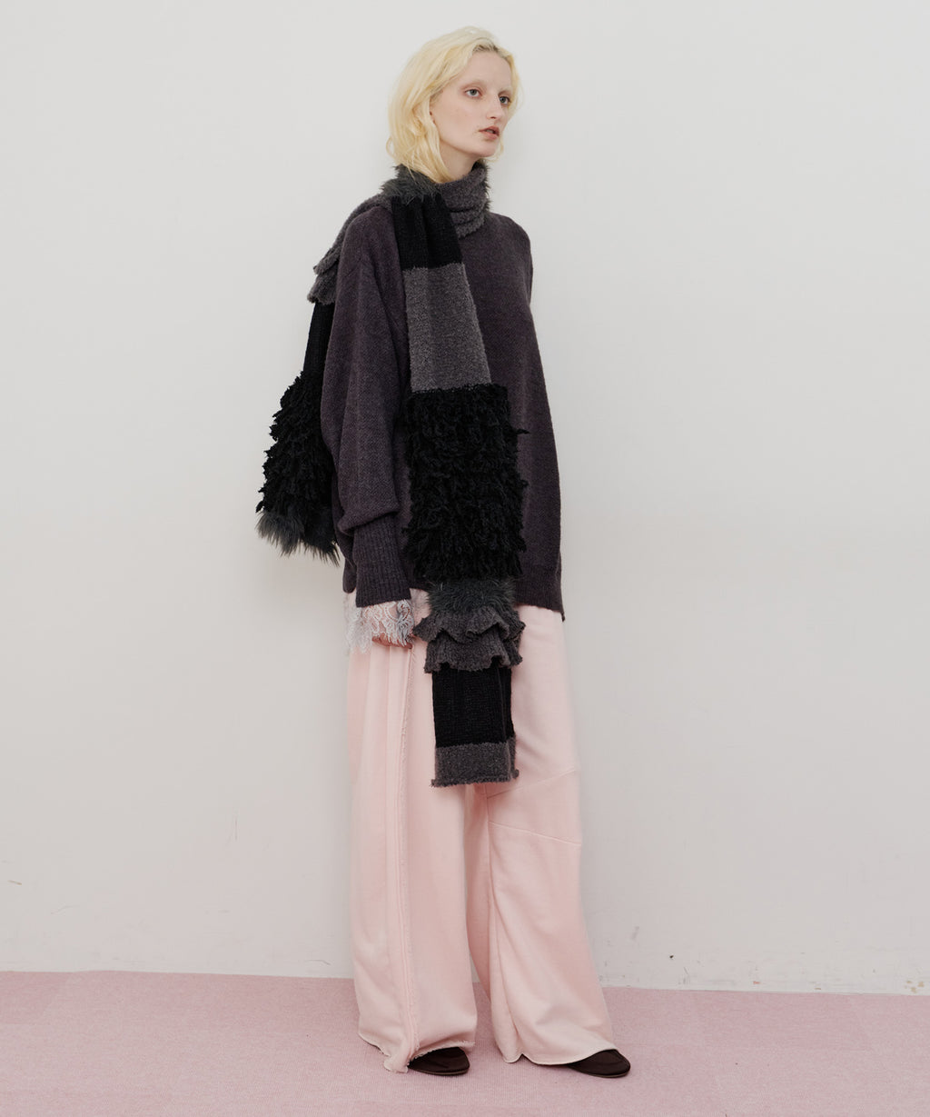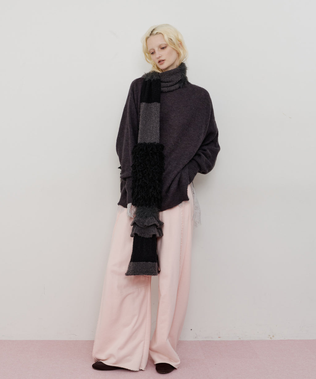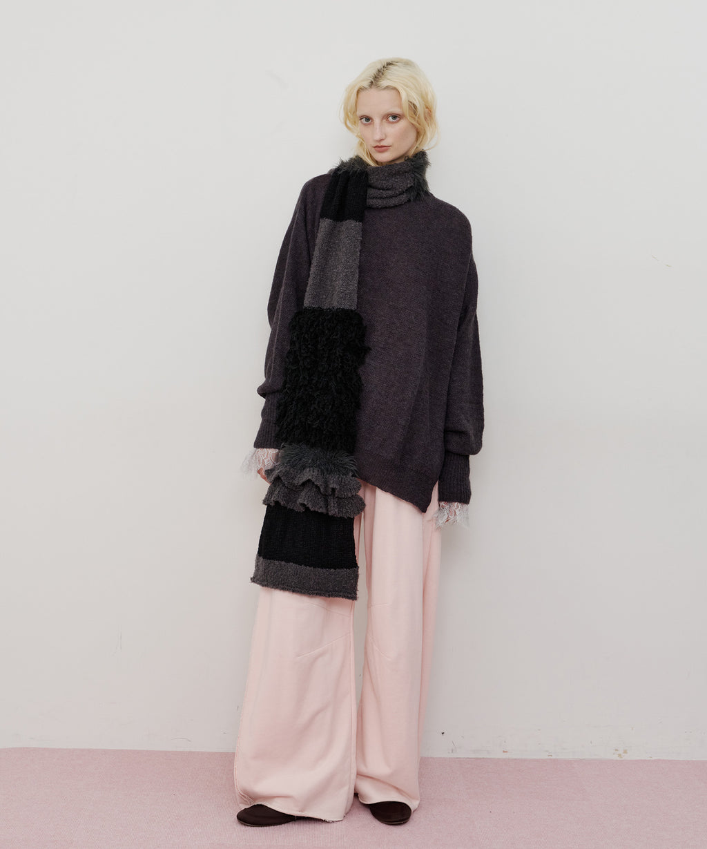 暖かいのにライトな巻き心地が嬉しい、ニットマフラー。