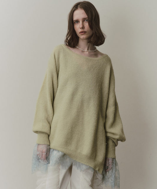 フェザーとウェーブ感のある糸を合わせることで、色差がでて奥行きのある色合いが完成。