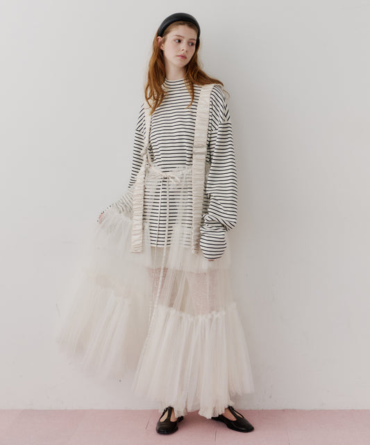 後ろにシャーリングを施しているので程よくボディラインにfit。