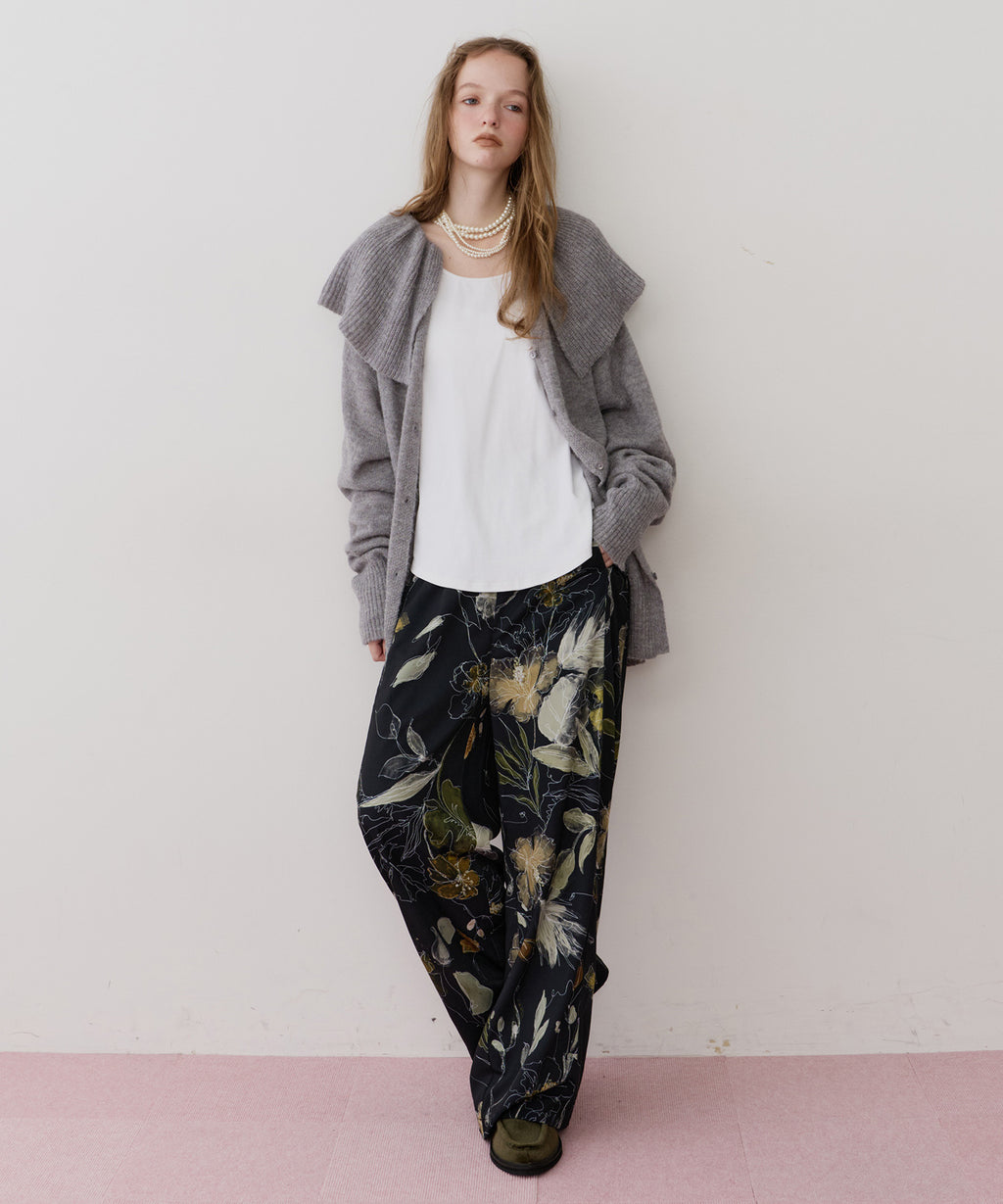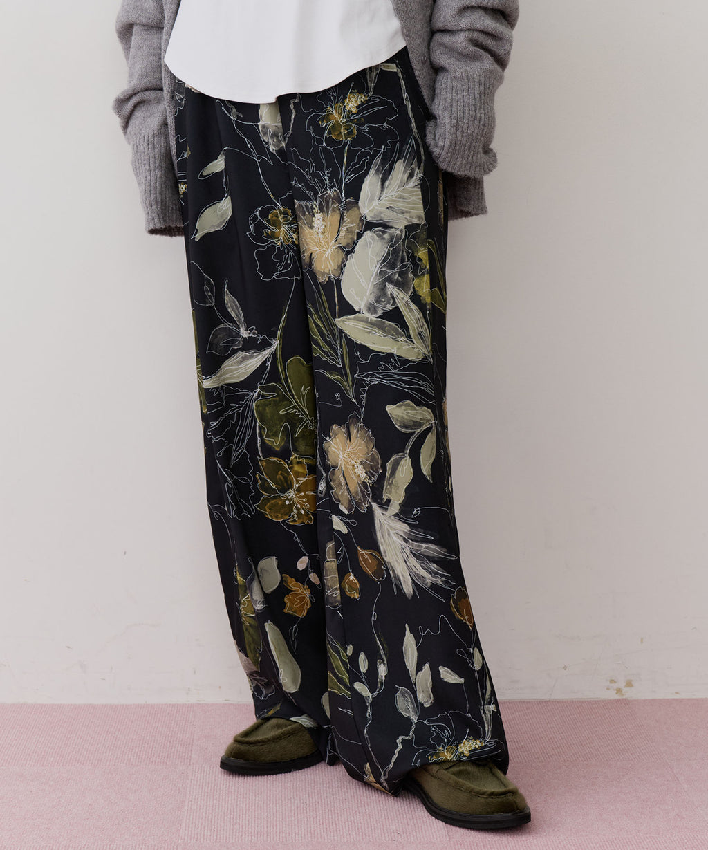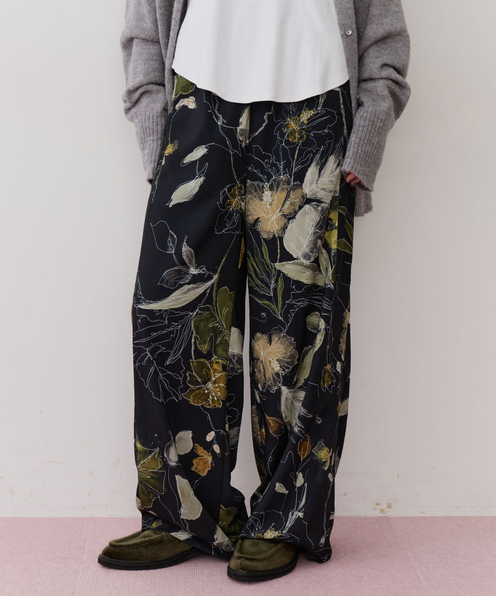 花柄もパンツにすることで可愛くなりすぎず、カジュアルにもなりすぎない大人可愛いスタイリングが実現◎