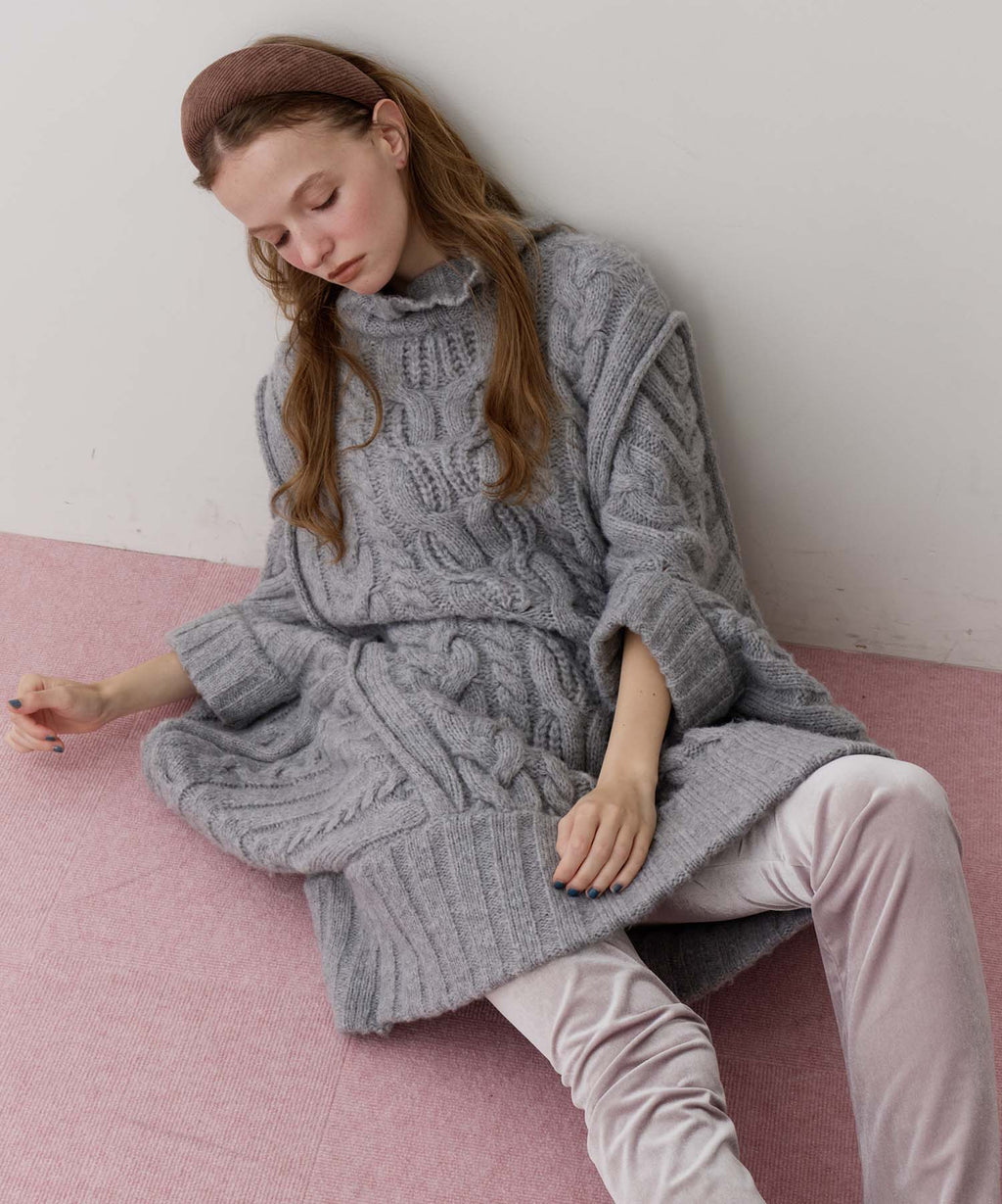 随所に施された大きなケーブル編みとBIGシルエットがLA BELLE ETUDEらしい