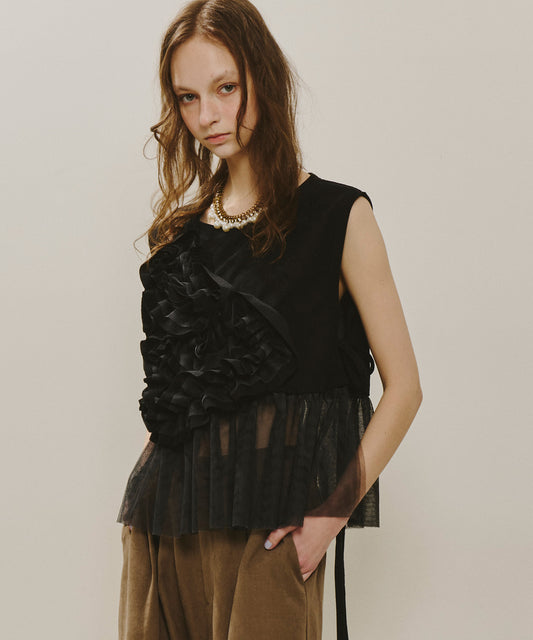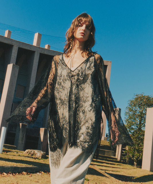 ヴィンテージ調のレースをキャミソールの上端にぐるりと施し、