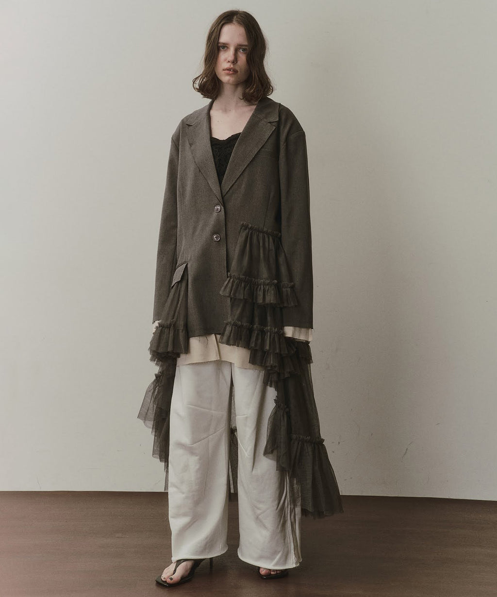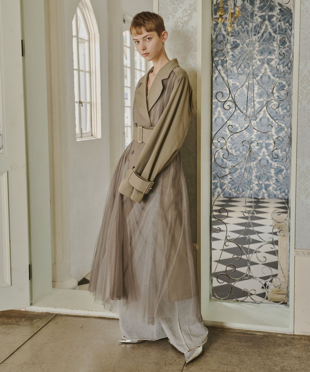 あえてレースやチュールなどのガーリーなアイテムと組み合わても◎
