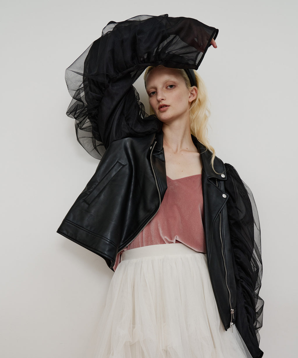 裾には両サイドに大胆なスリットを施し前後差をつけ、