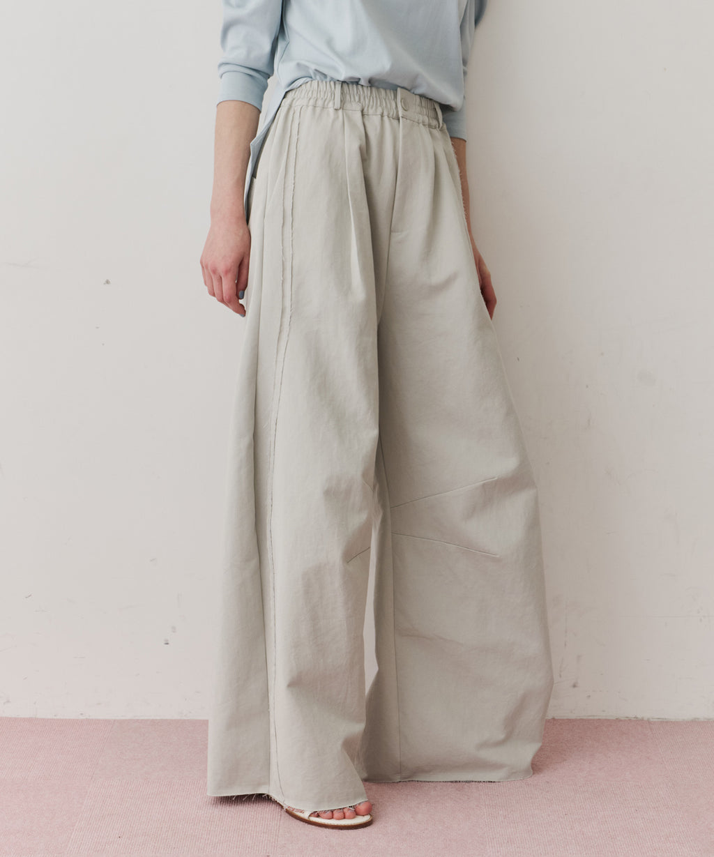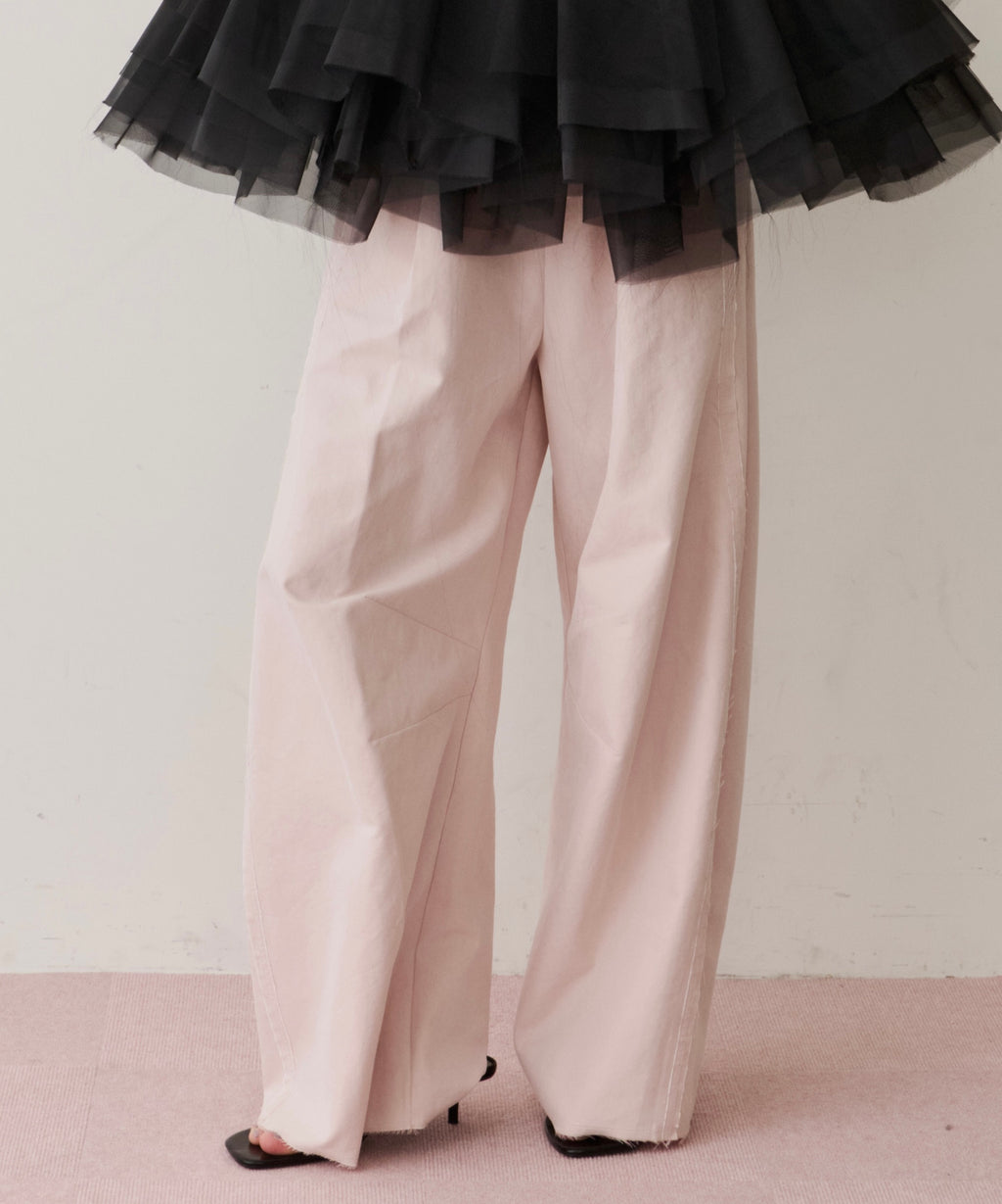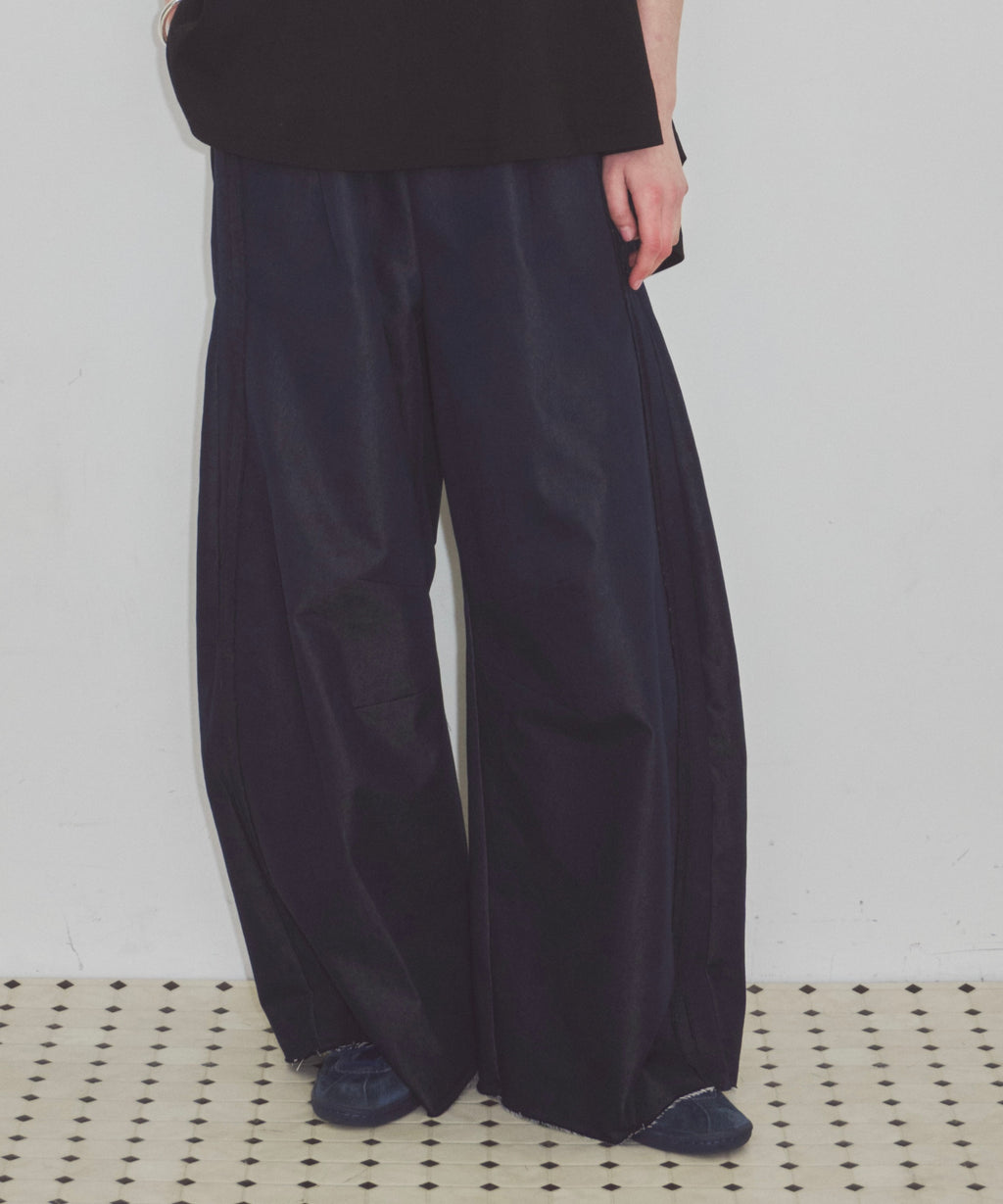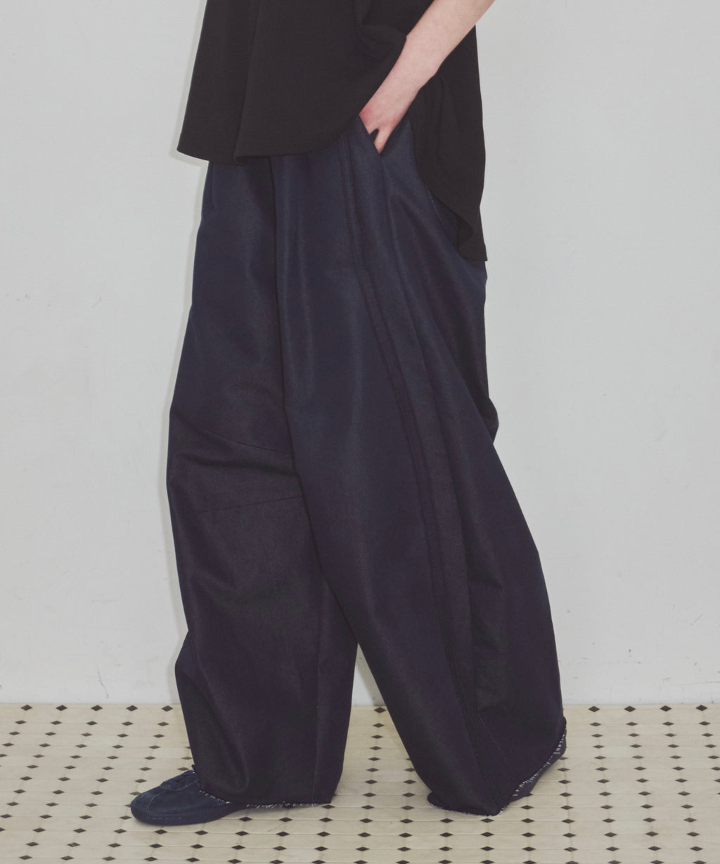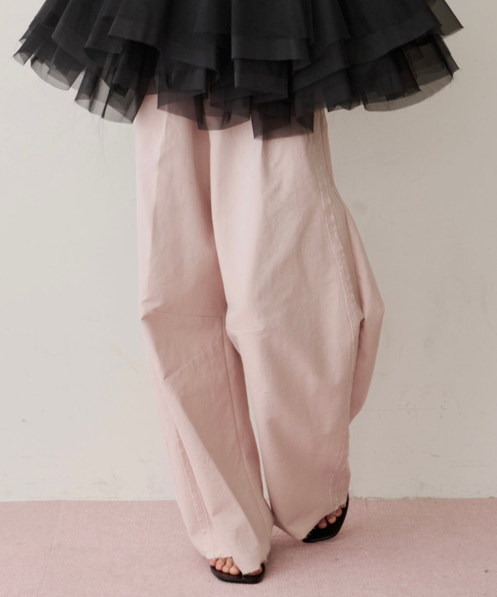 立体的なカーブを描いた、シルエットが魅力のスプリングパンツ。