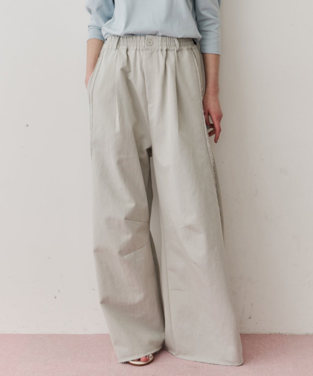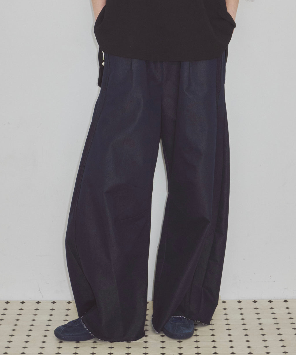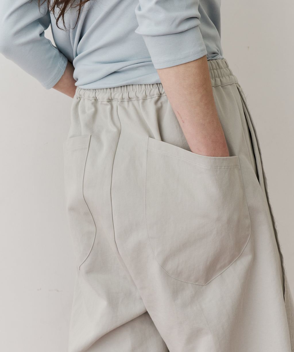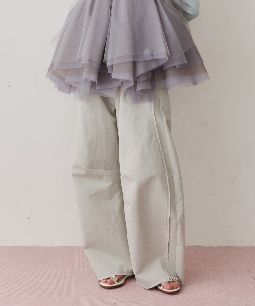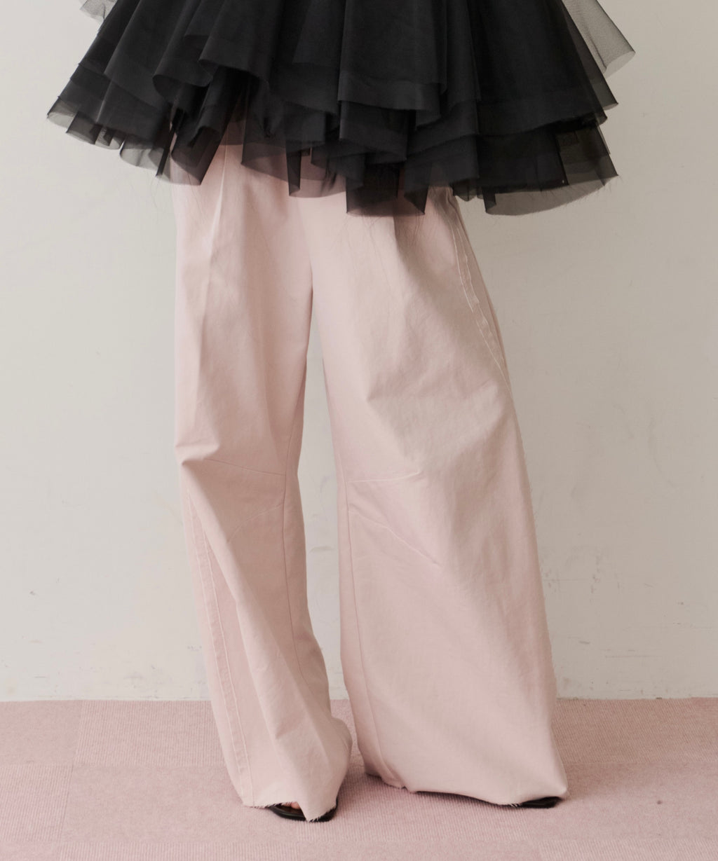 立体的なカーブを描いた、シルエットが魅力のスプリングパンツ。