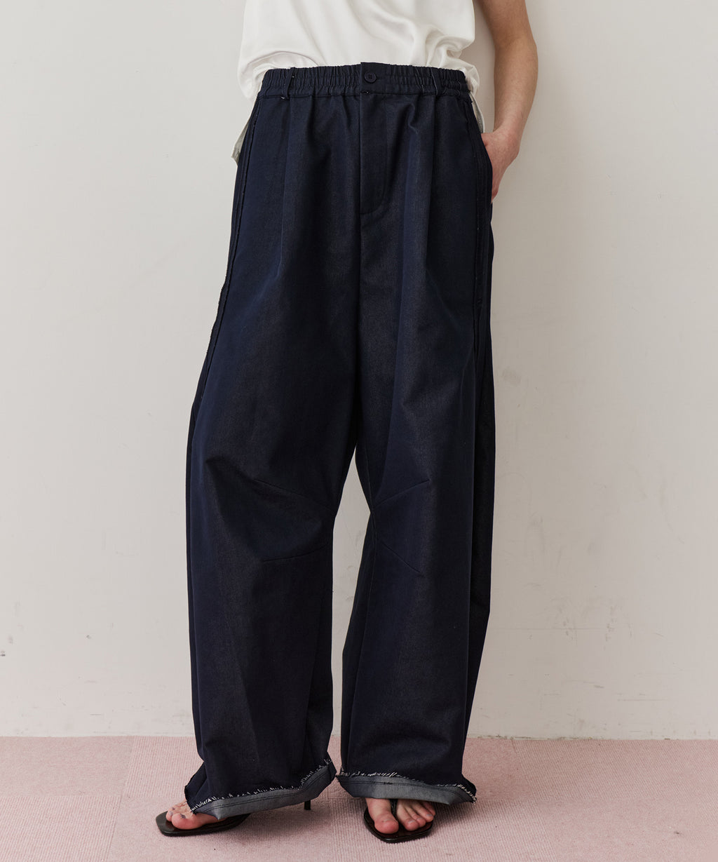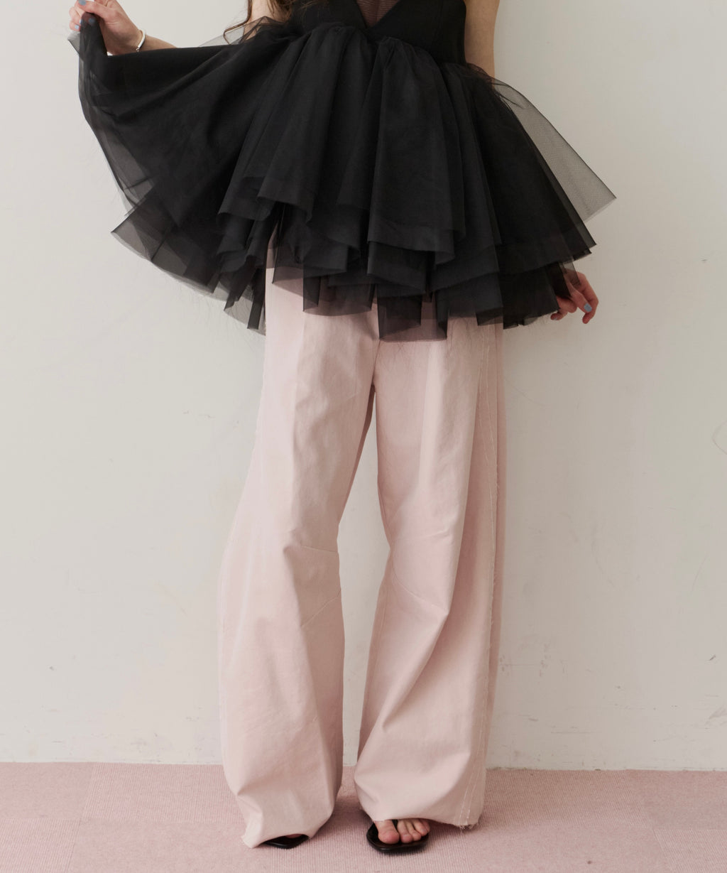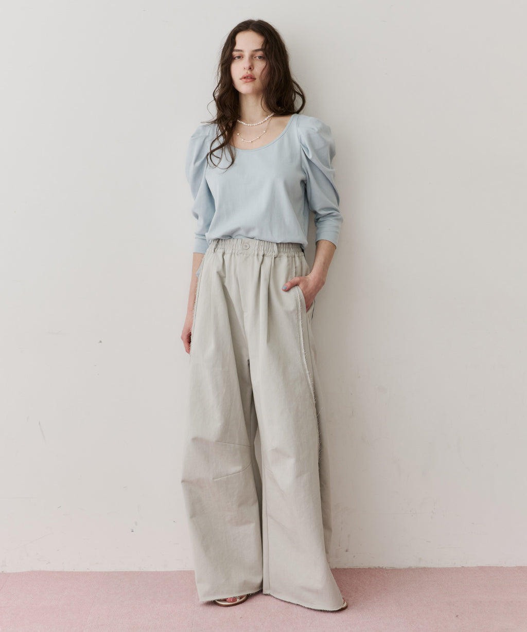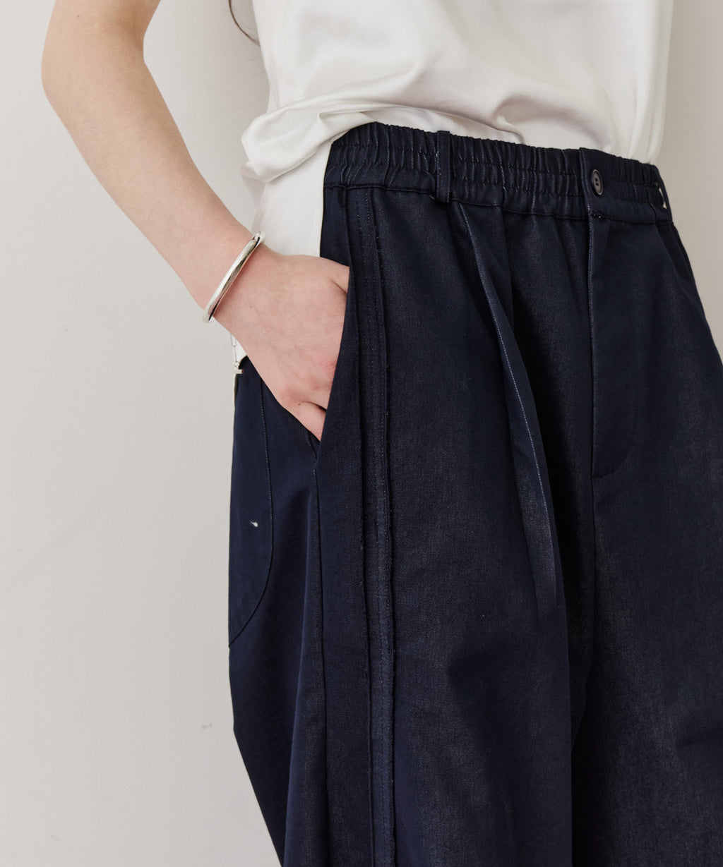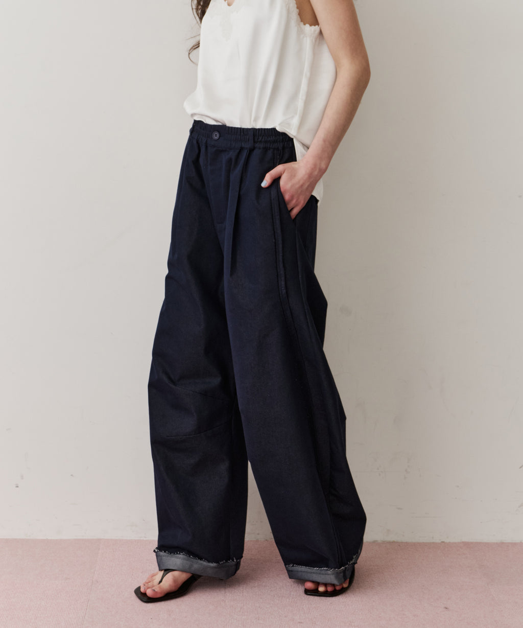 立体的なカーブを描いた、シルエットが魅力のスプリングパンツ。