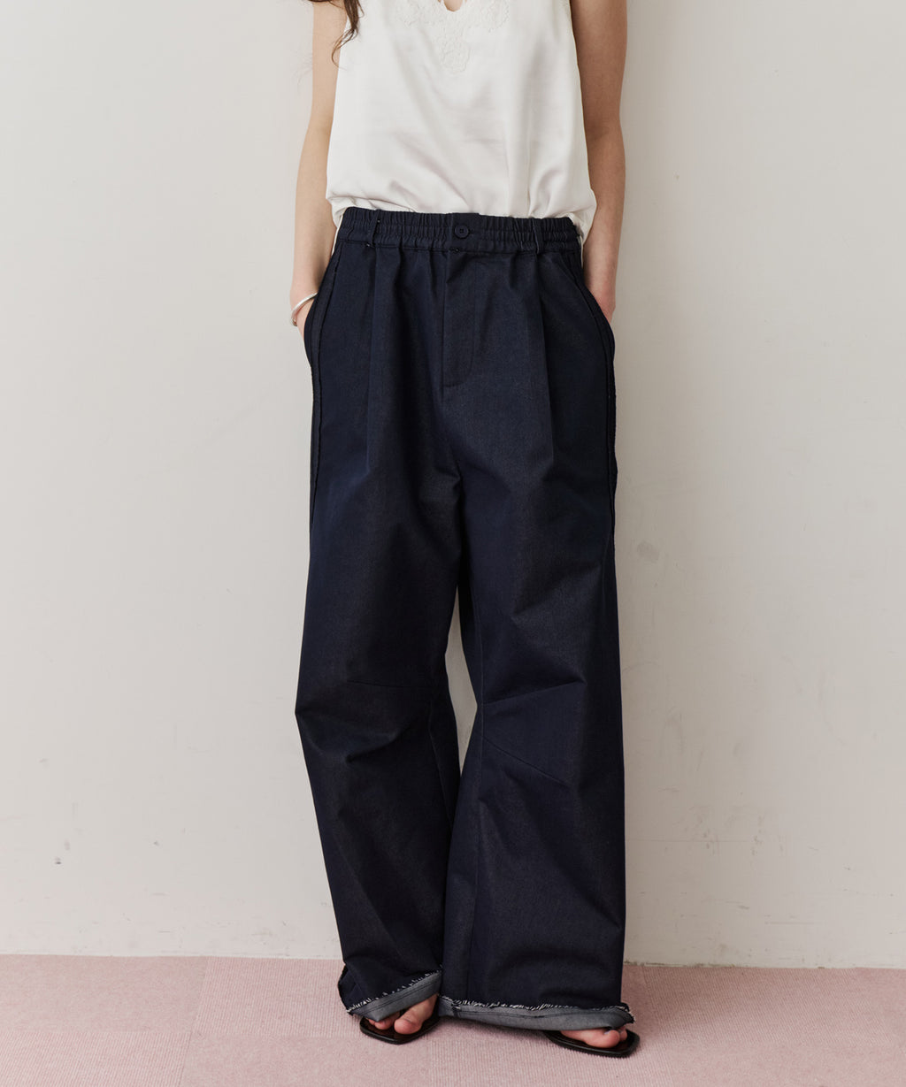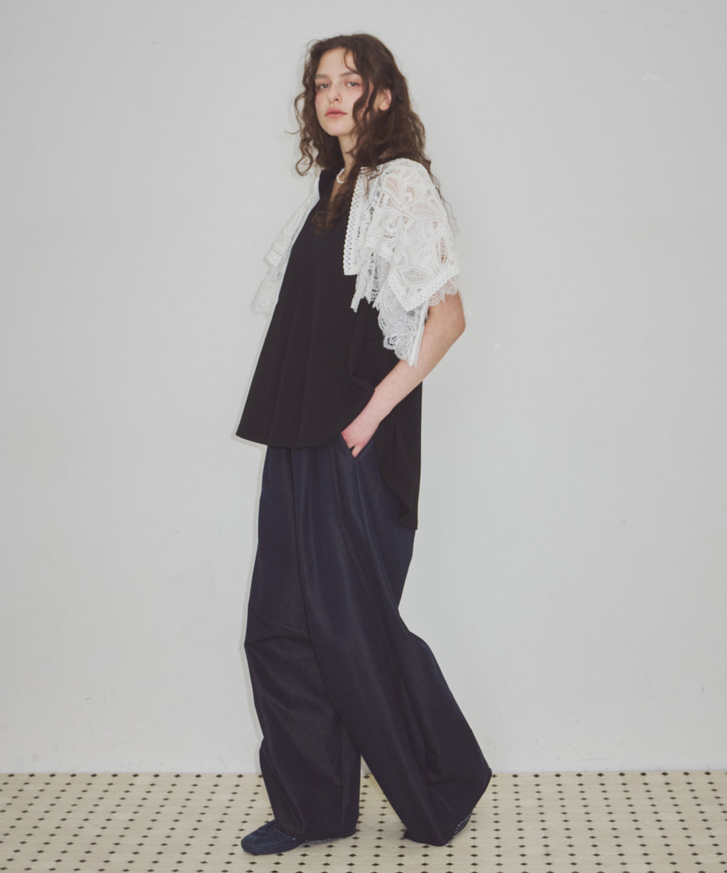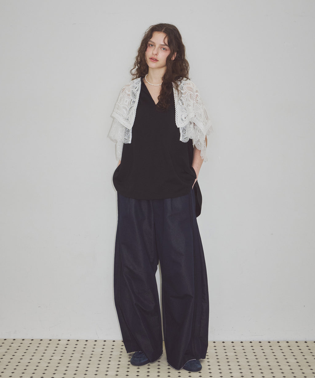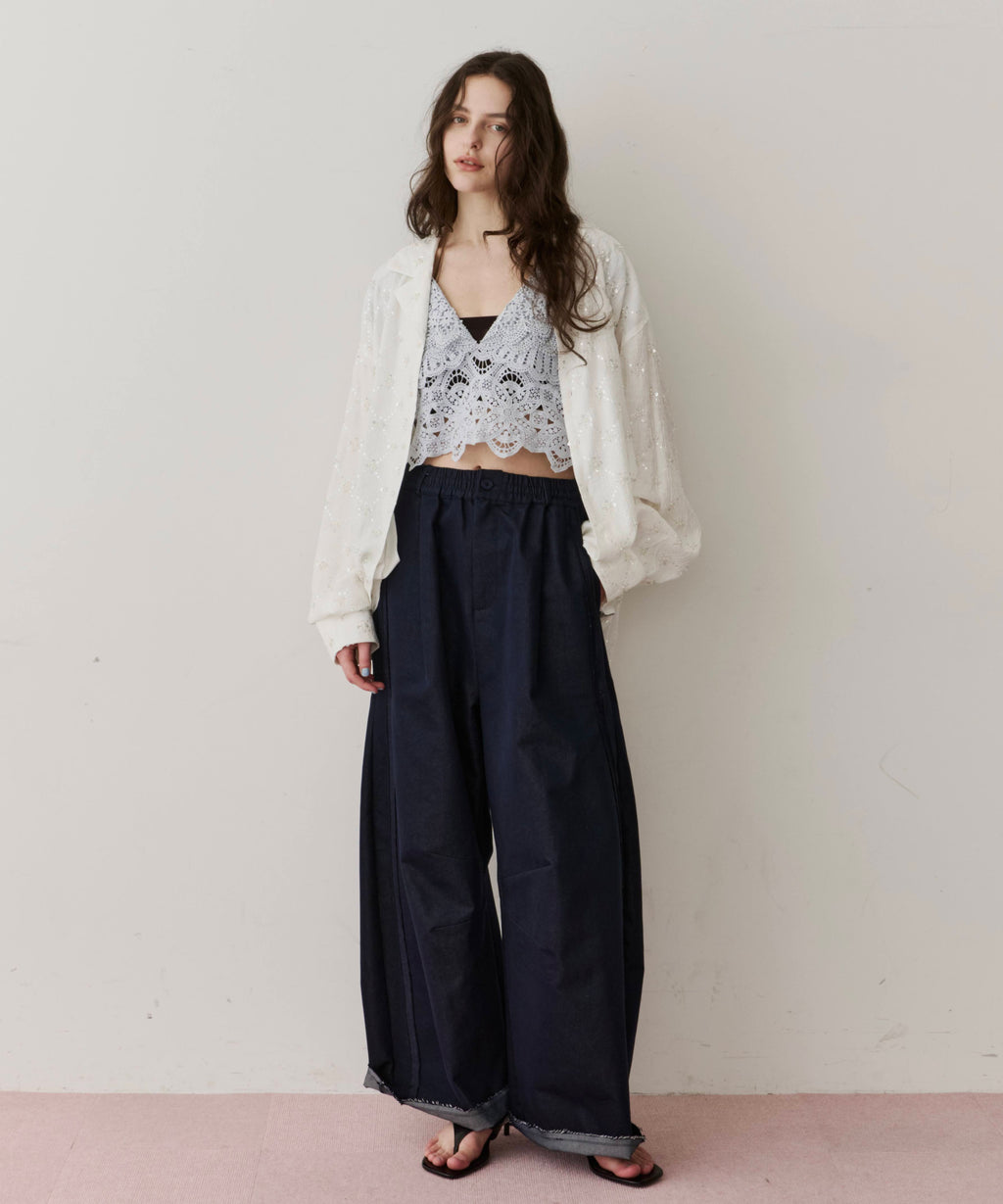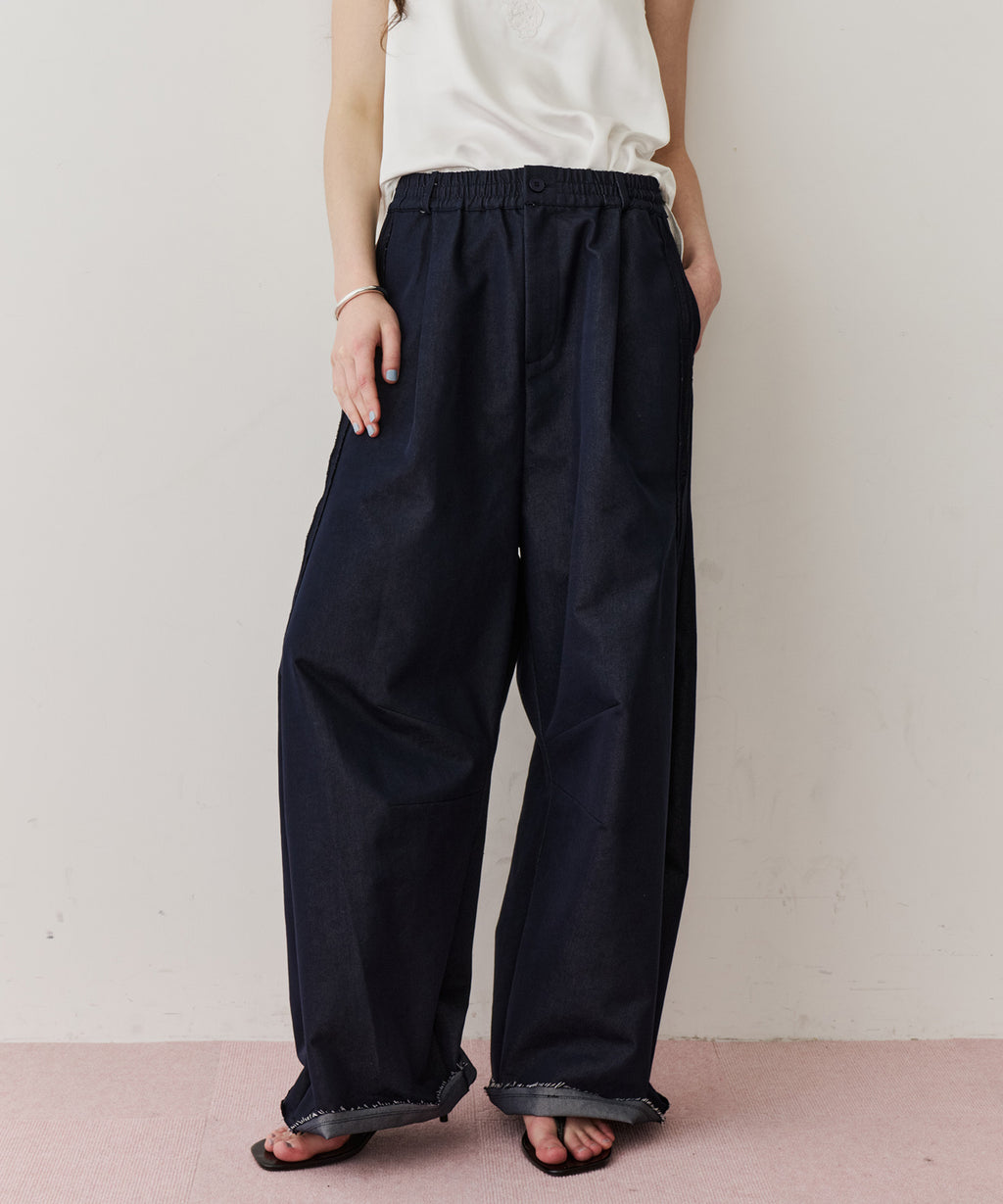 立体的なカーブを描いた、シルエットが魅力のスプリングパンツ。