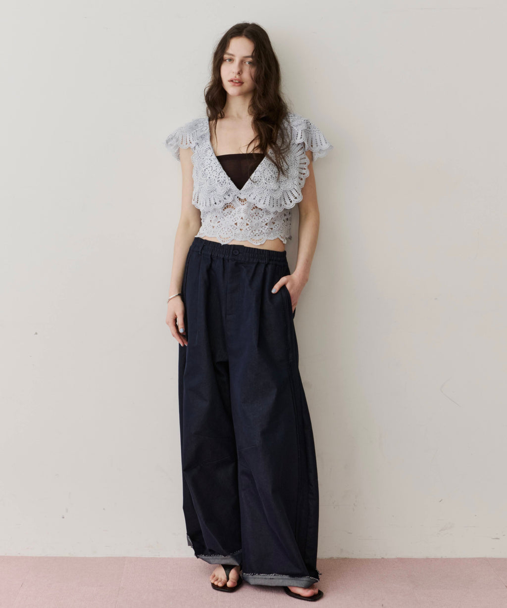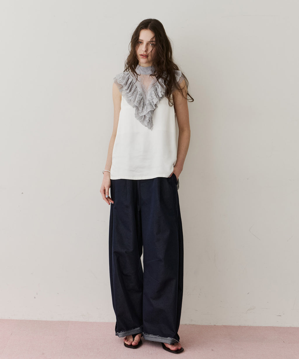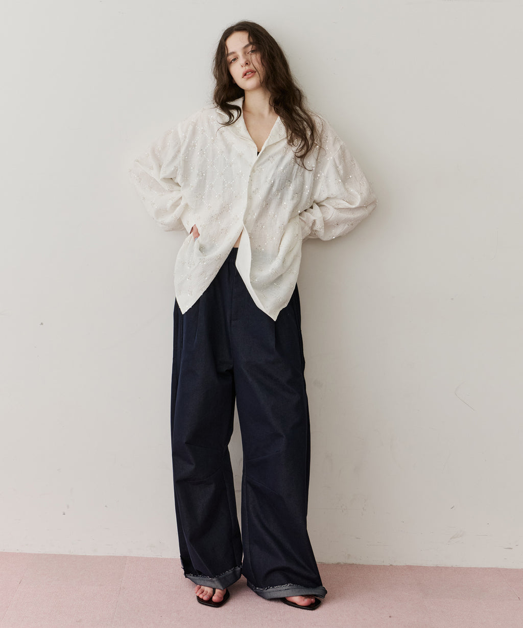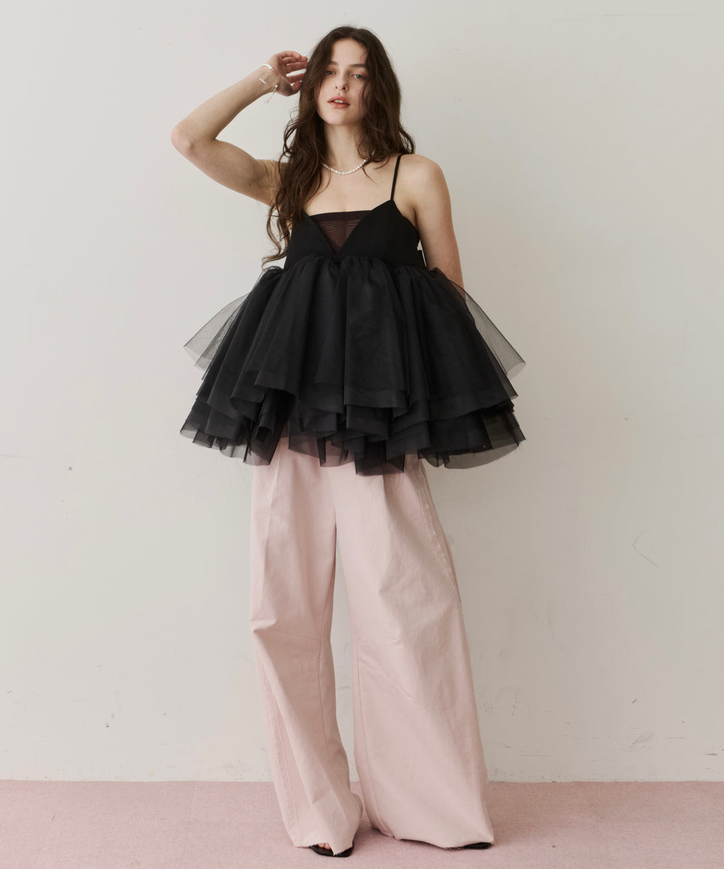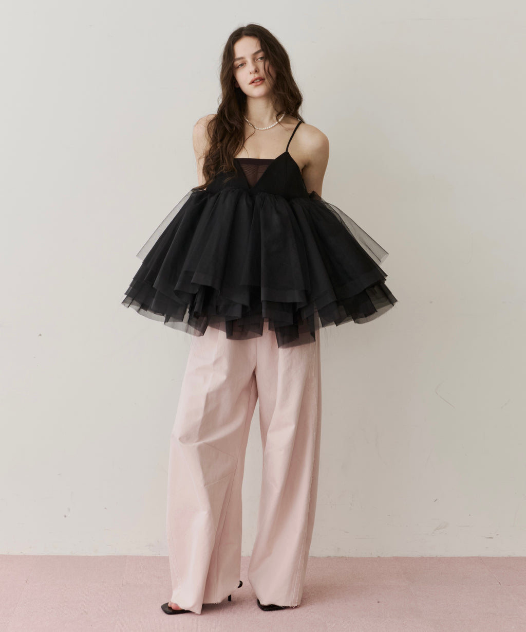 立体的なカーブを描いた、シルエットが魅力のスプリングパンツ。