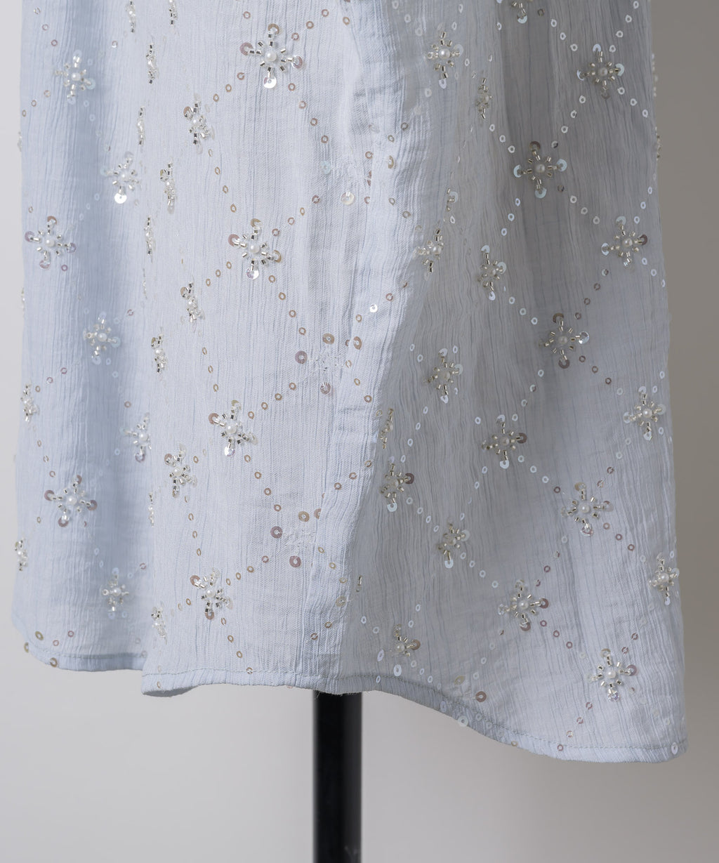 ラフな質感と、ビーズやスパンコールの華やかさが高バランス。