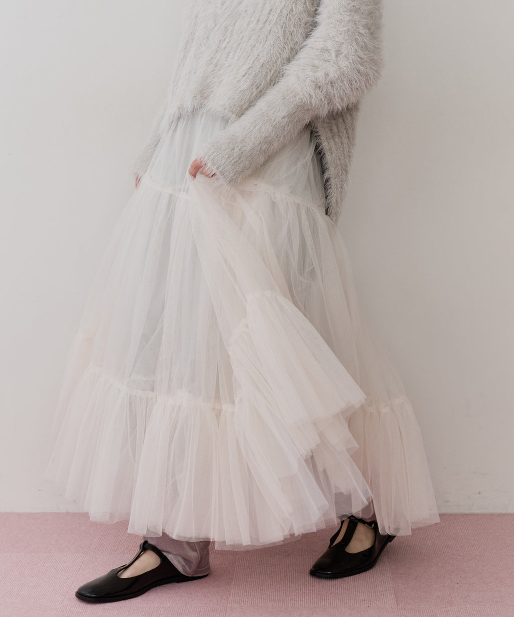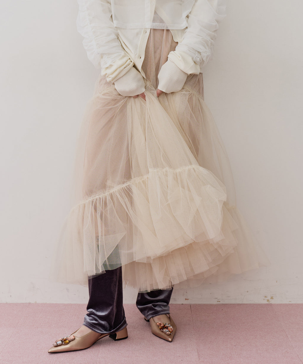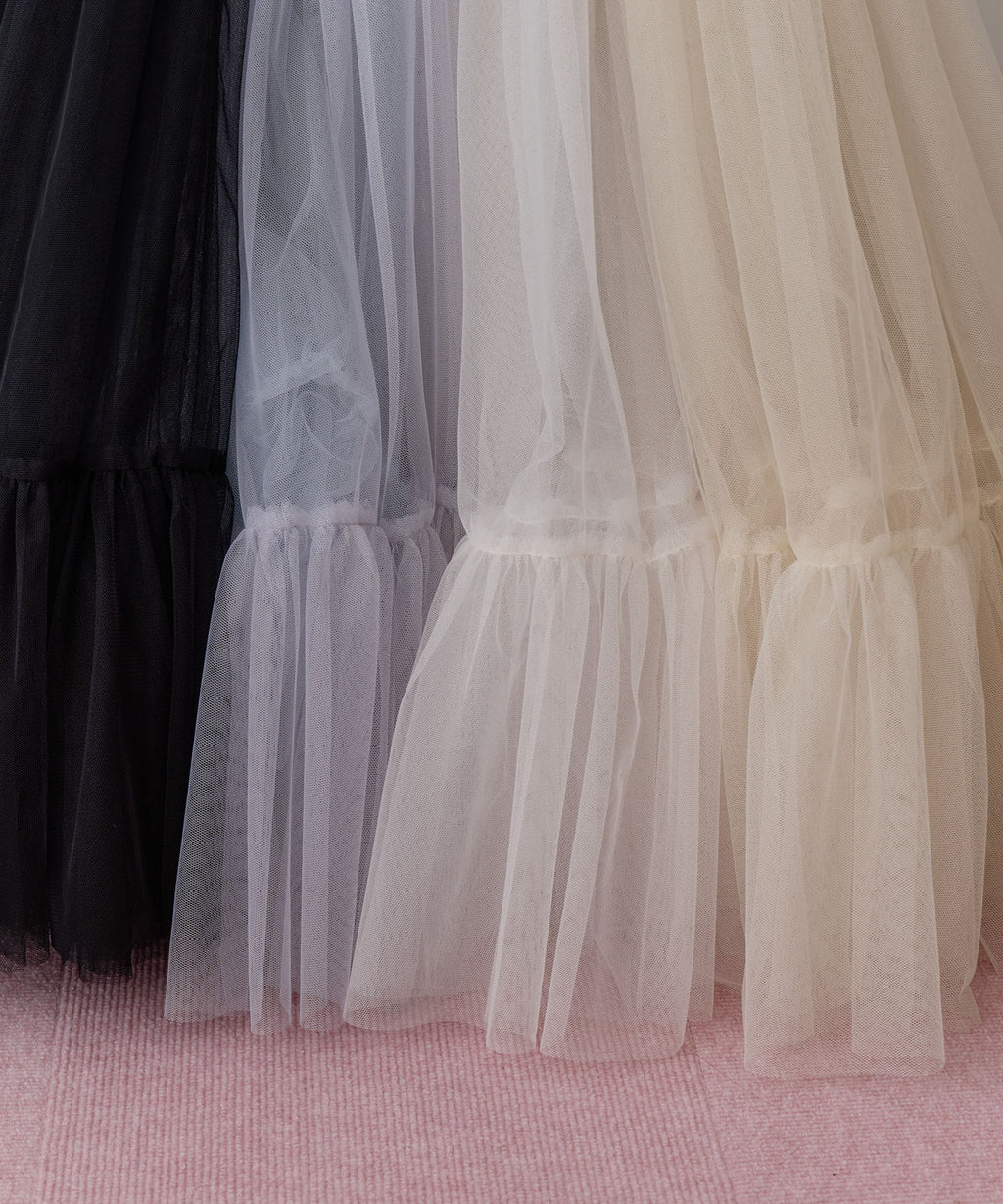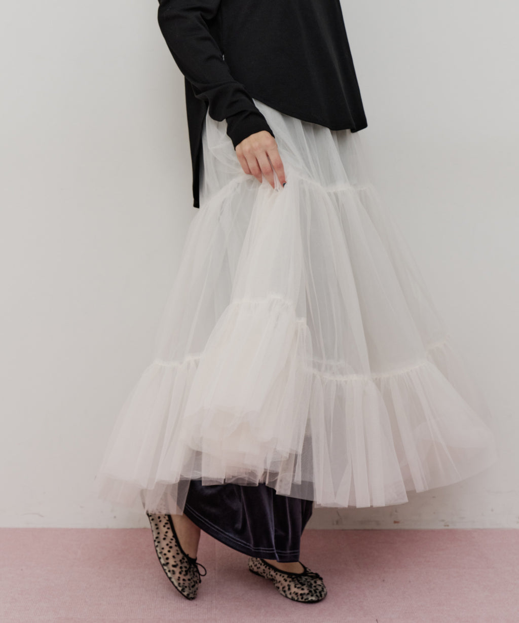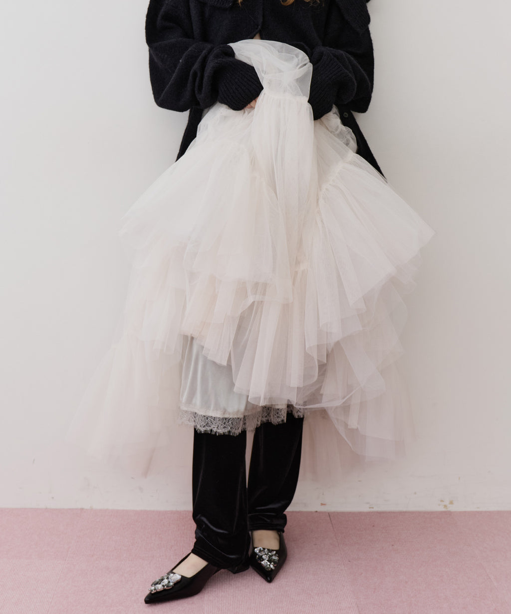重ねた上と下のチュールの長さをあえて揃えず差をつけて