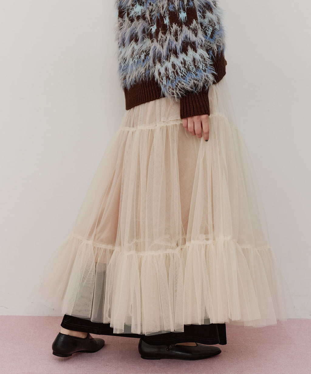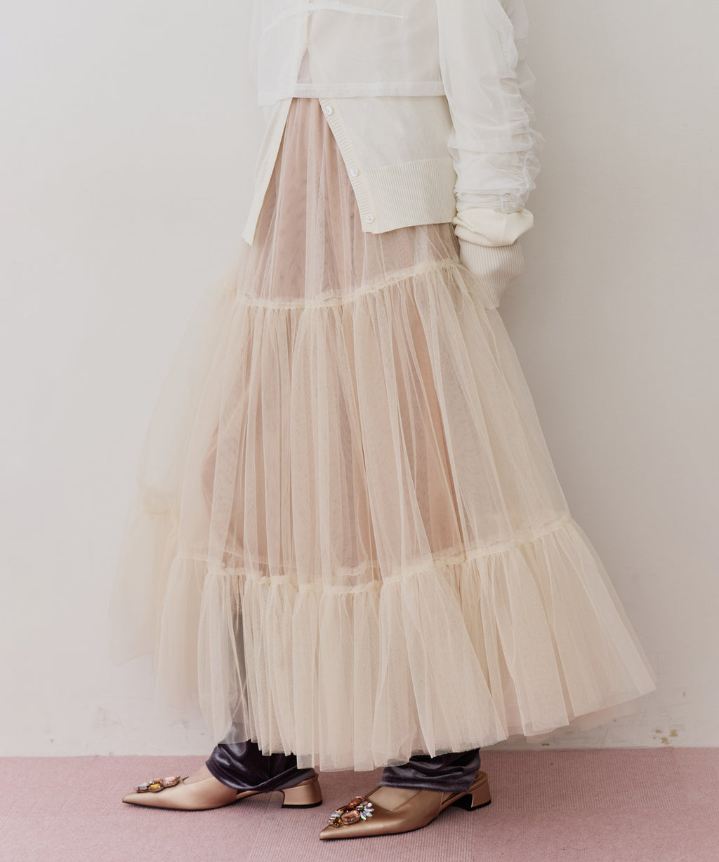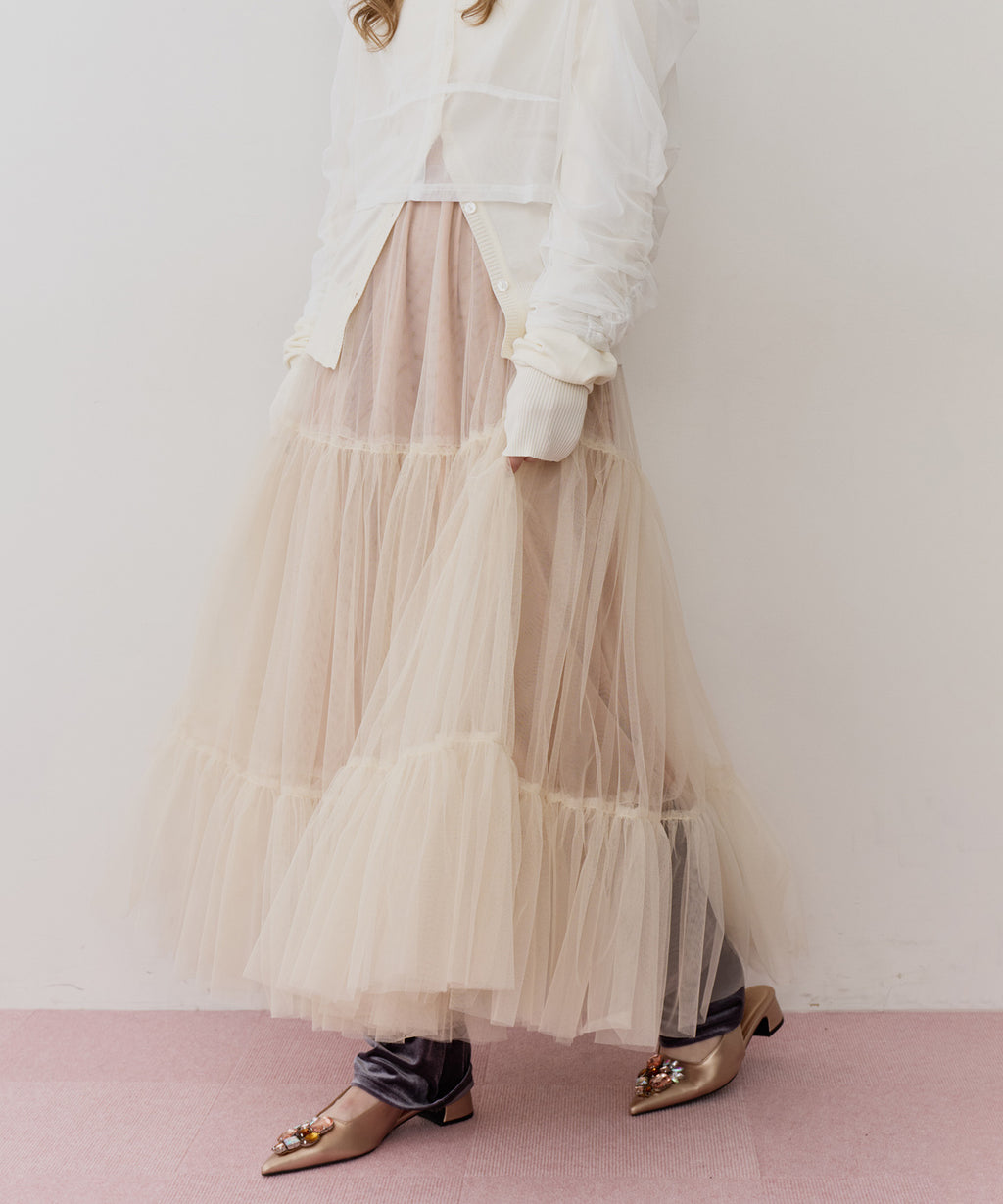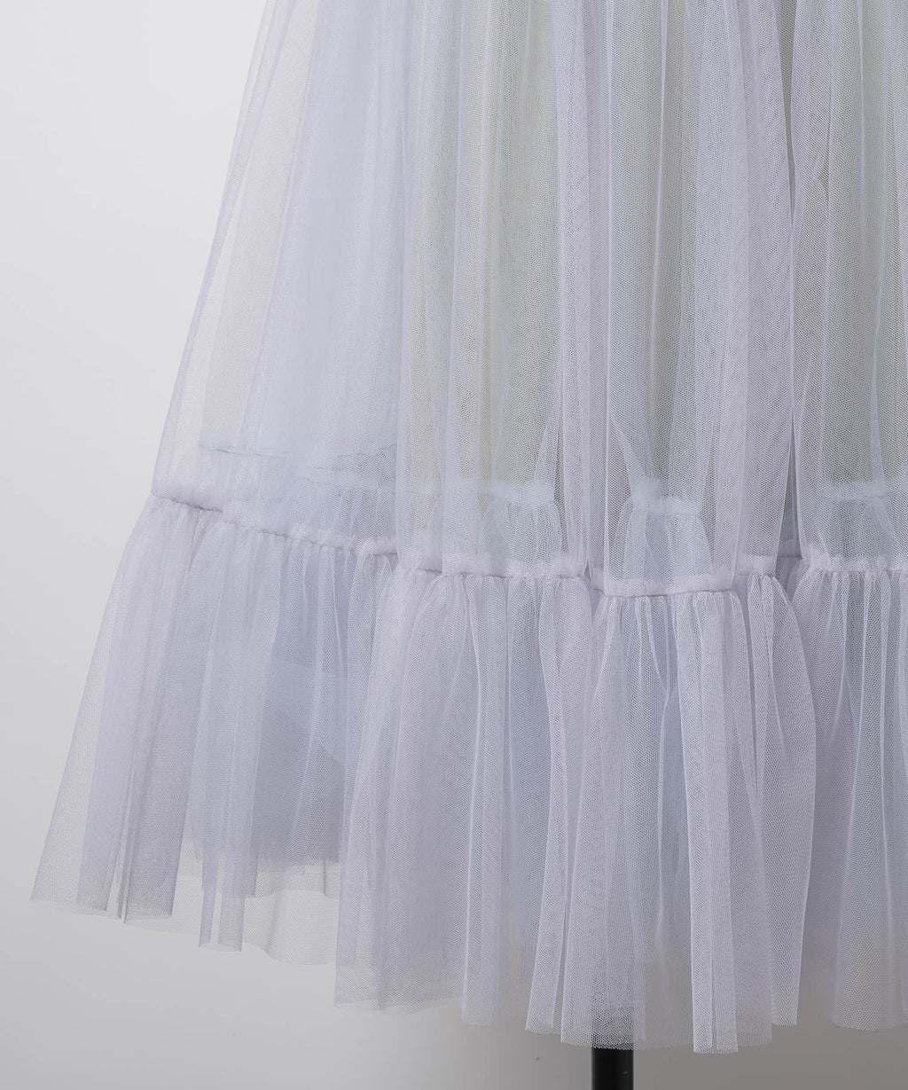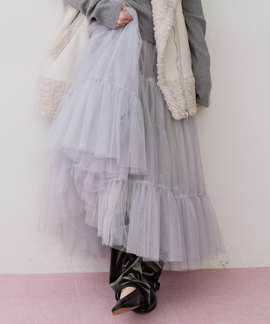 重ねた上と下のチュールの長さをあえて揃えず差をつけて