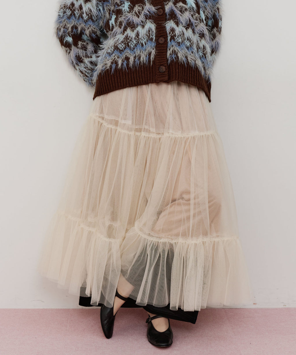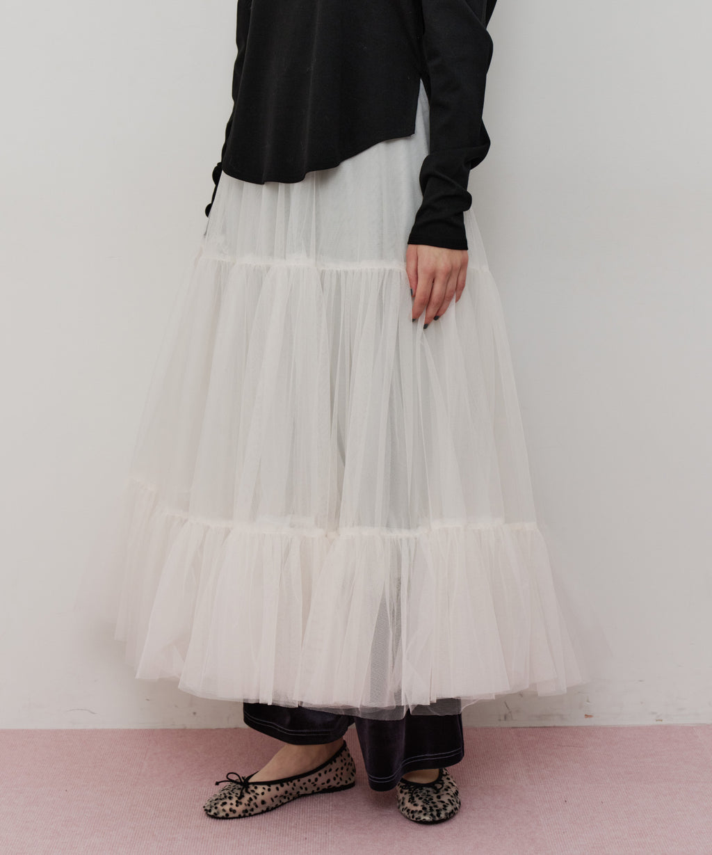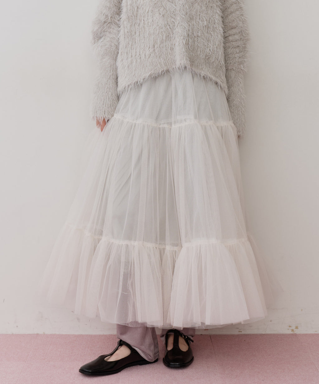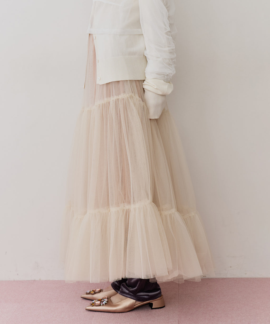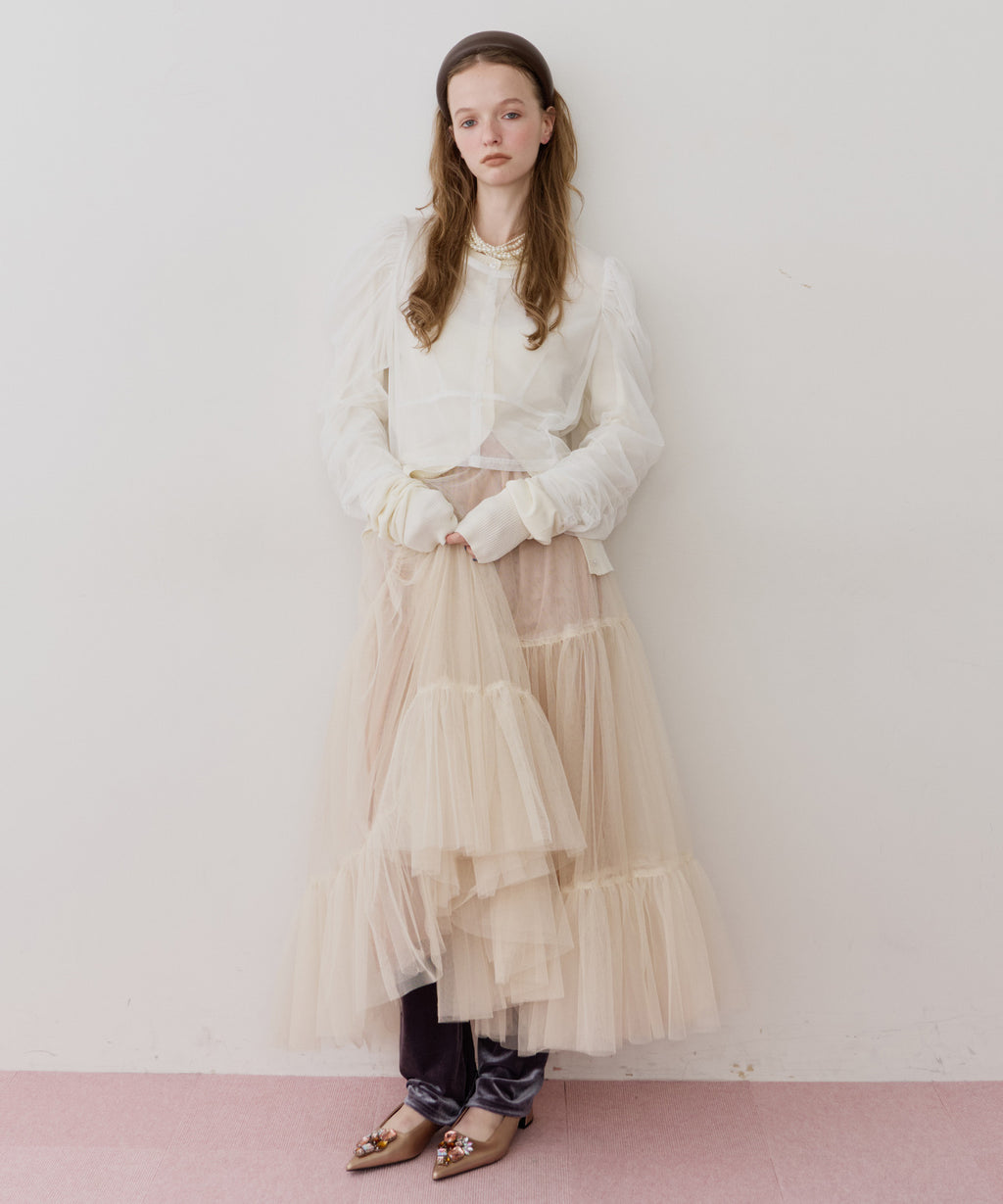 重ねた上と下のチュールの長さをあえて揃えず差をつけて