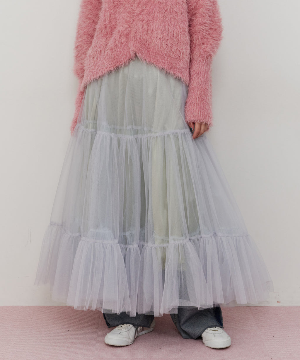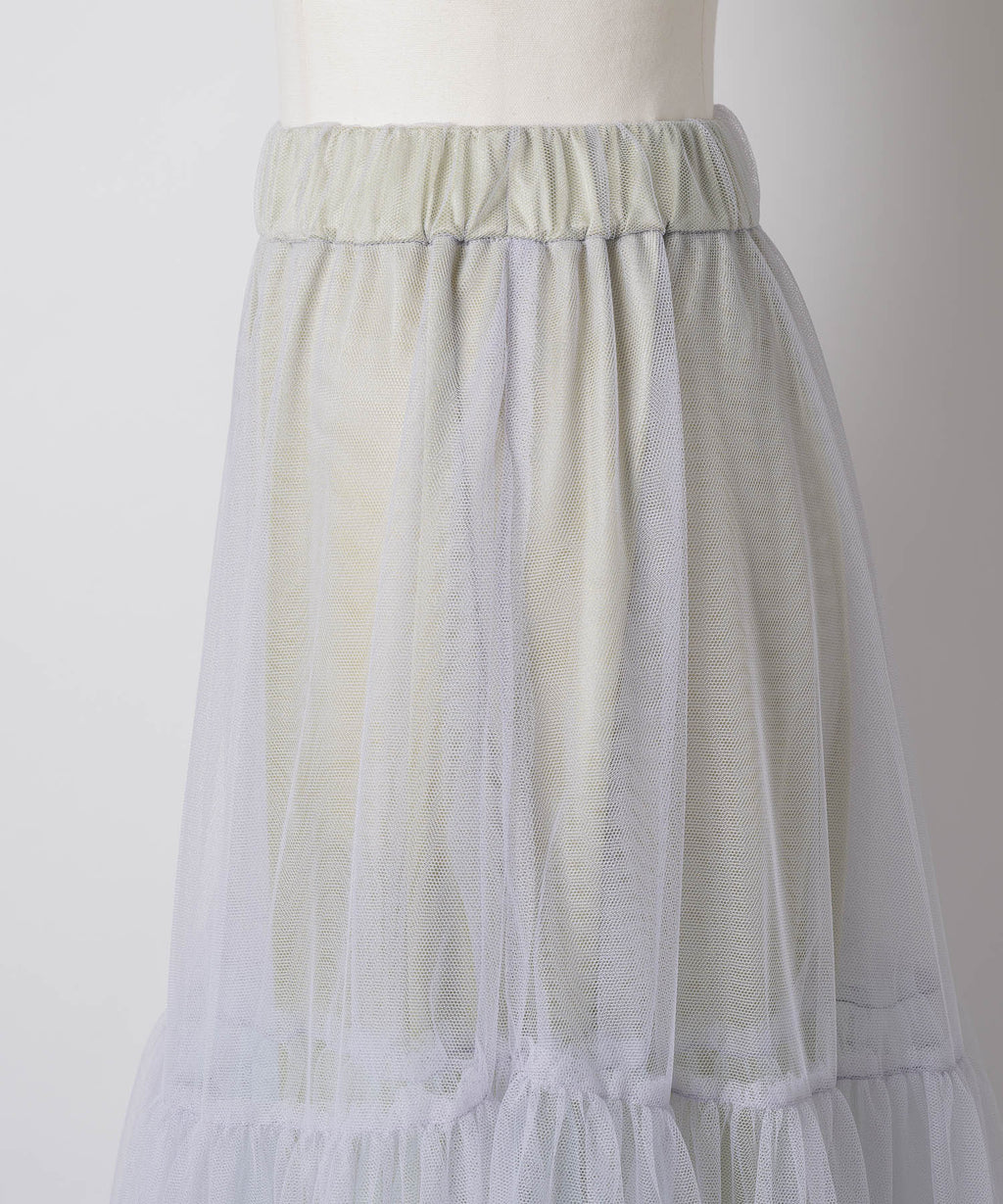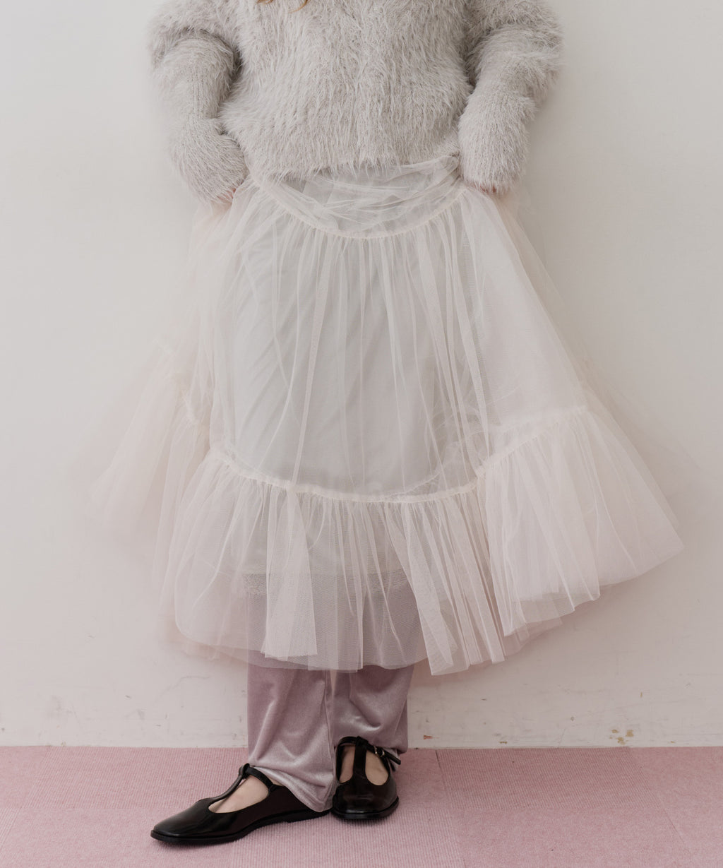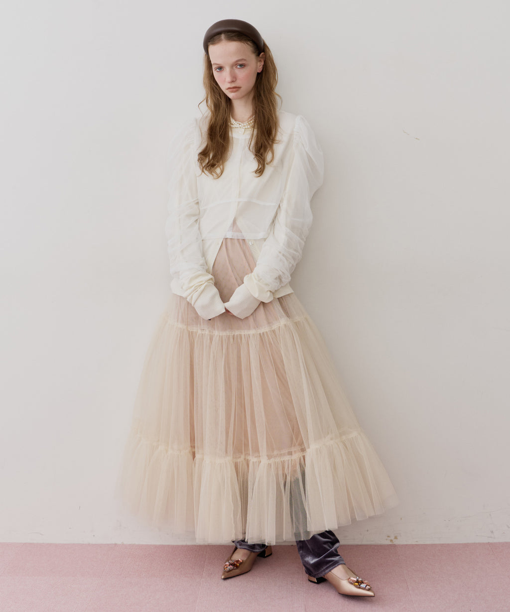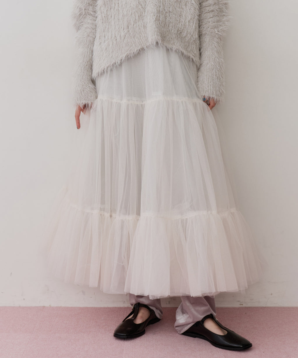 重ねた上と下のチュールの長さをあえて揃えず差をつけて