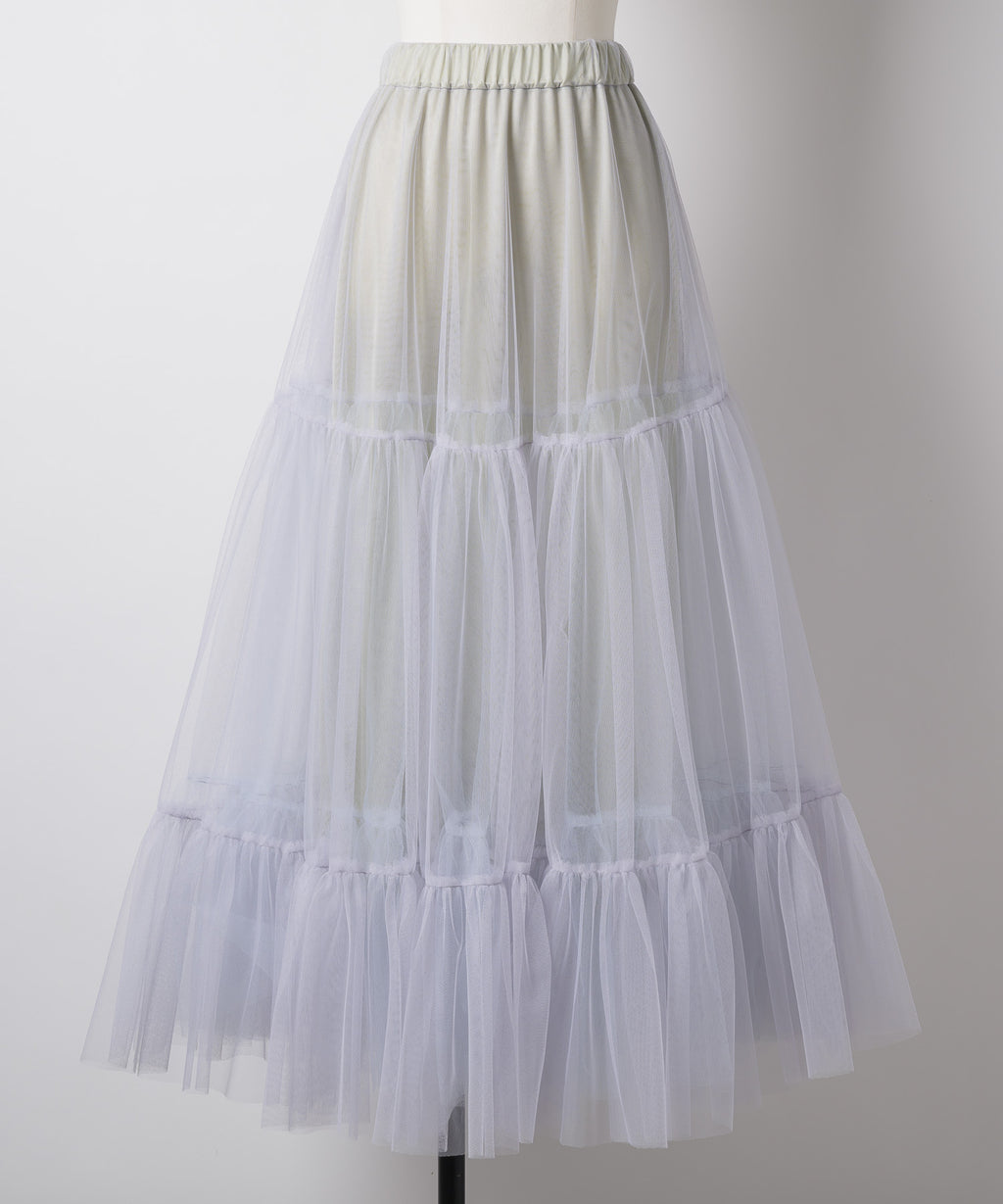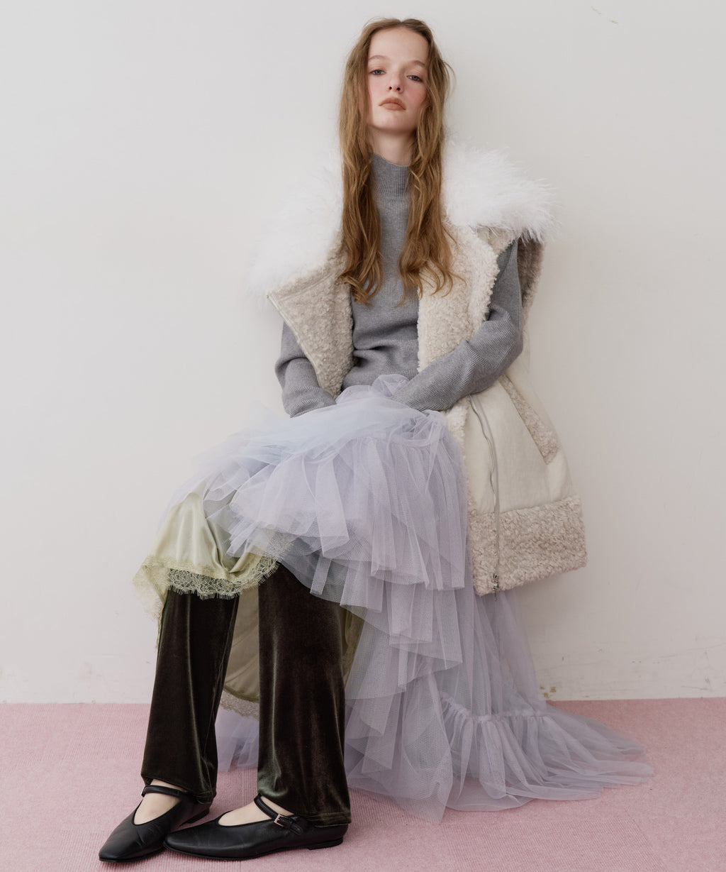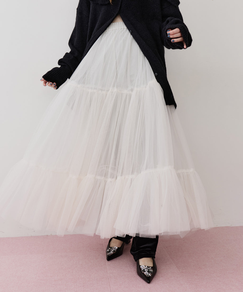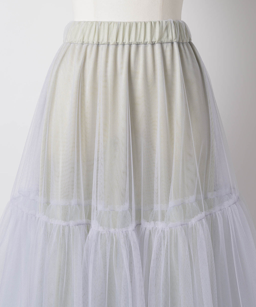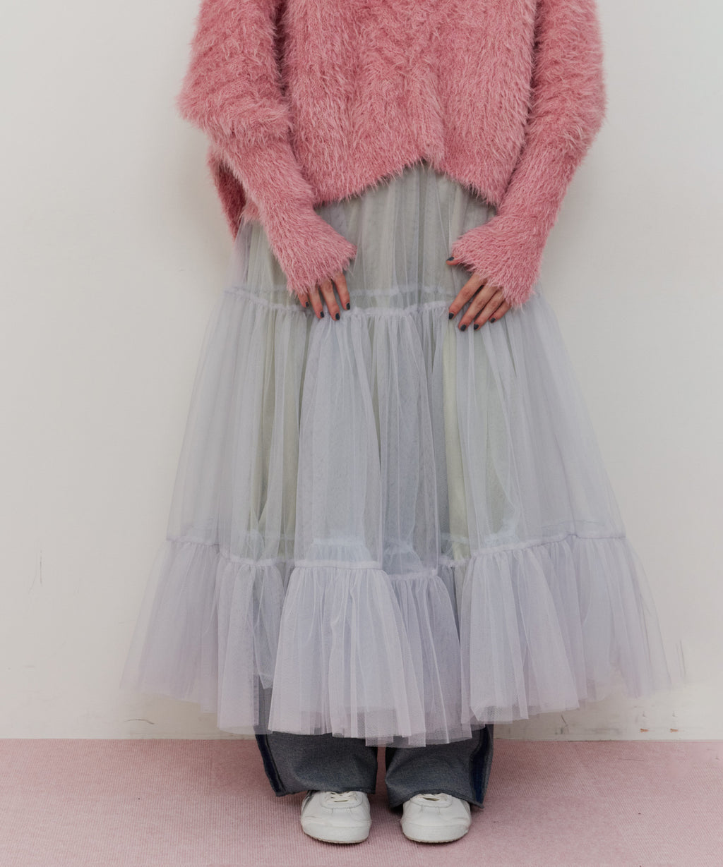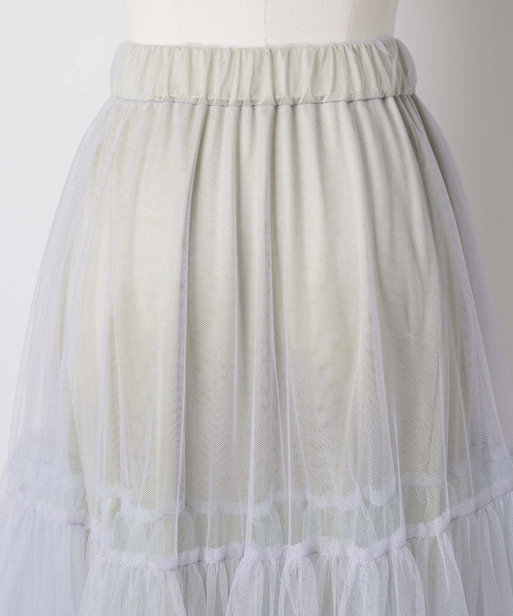 重ねた上と下のチュールの長さをあえて揃えず差をつけて