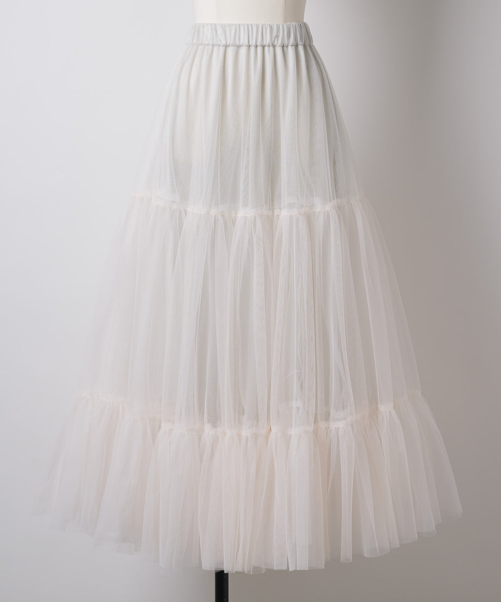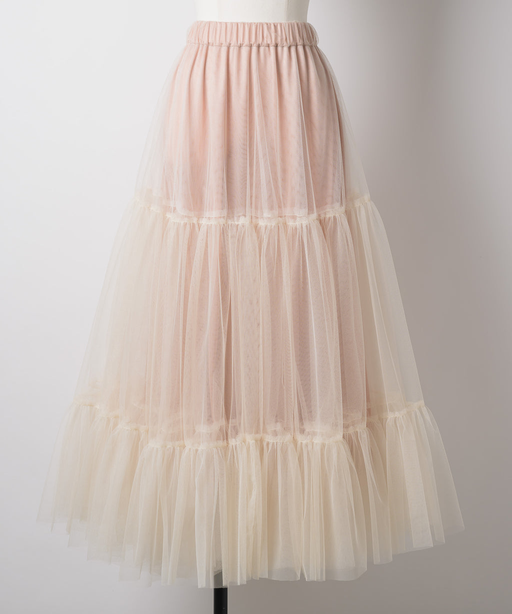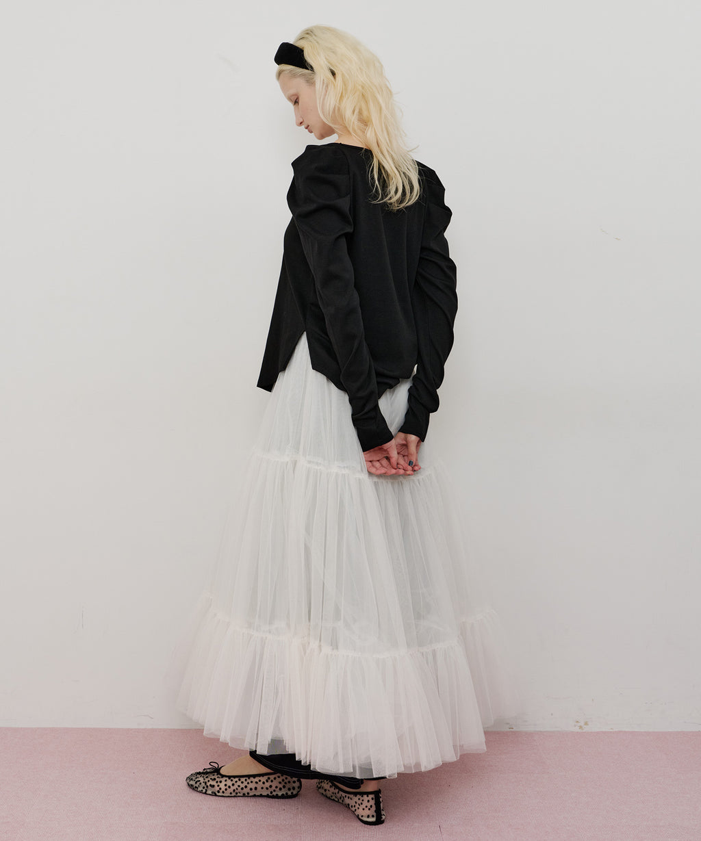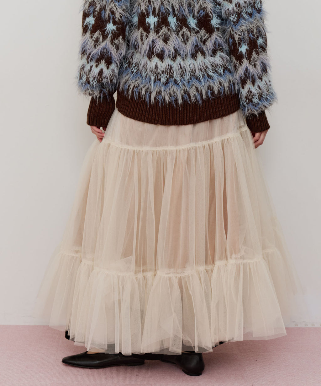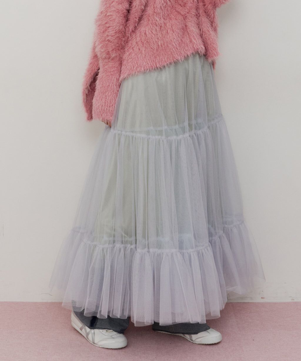 重ねた上と下のチュールの長さをあえて揃えず差をつけて
