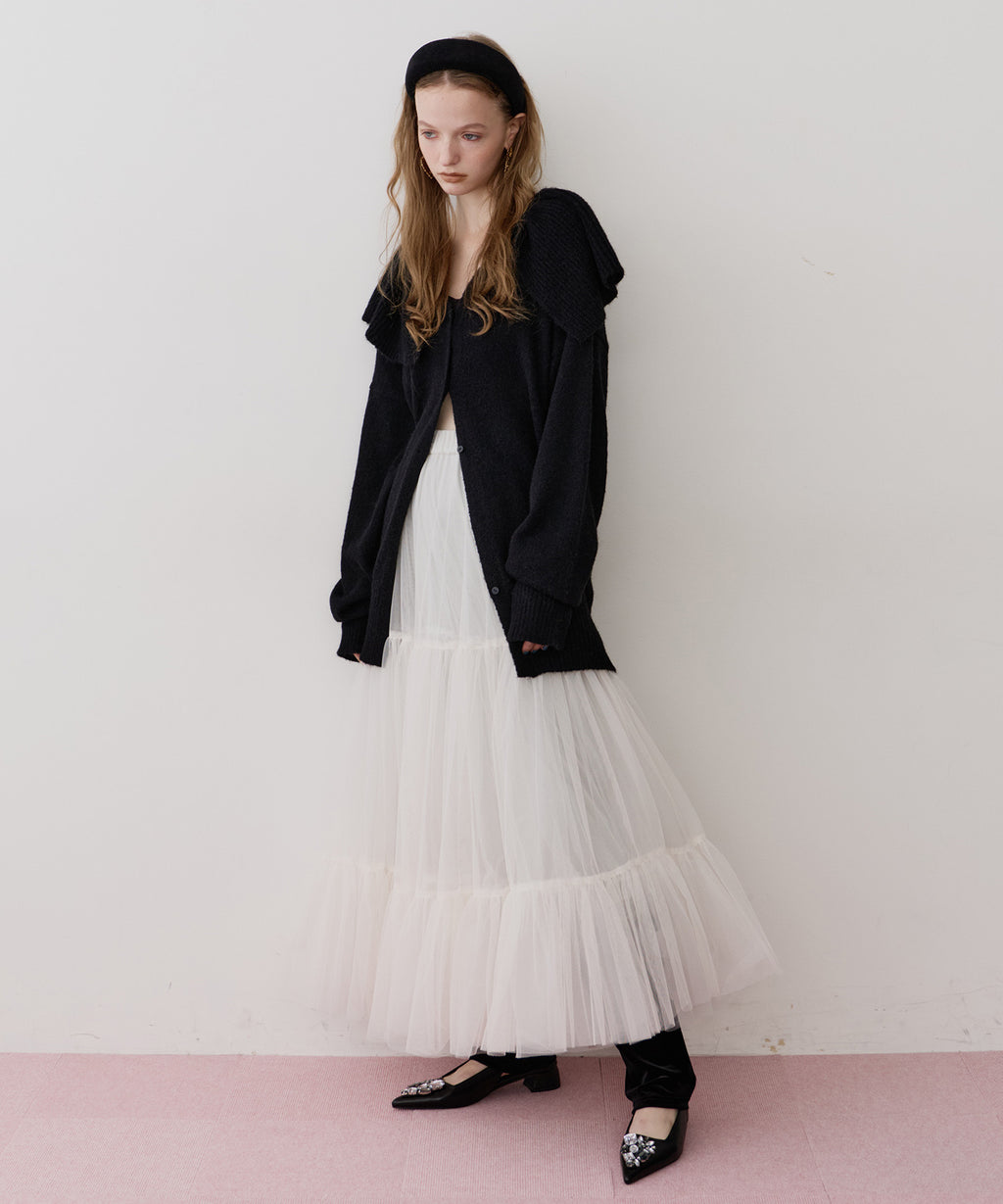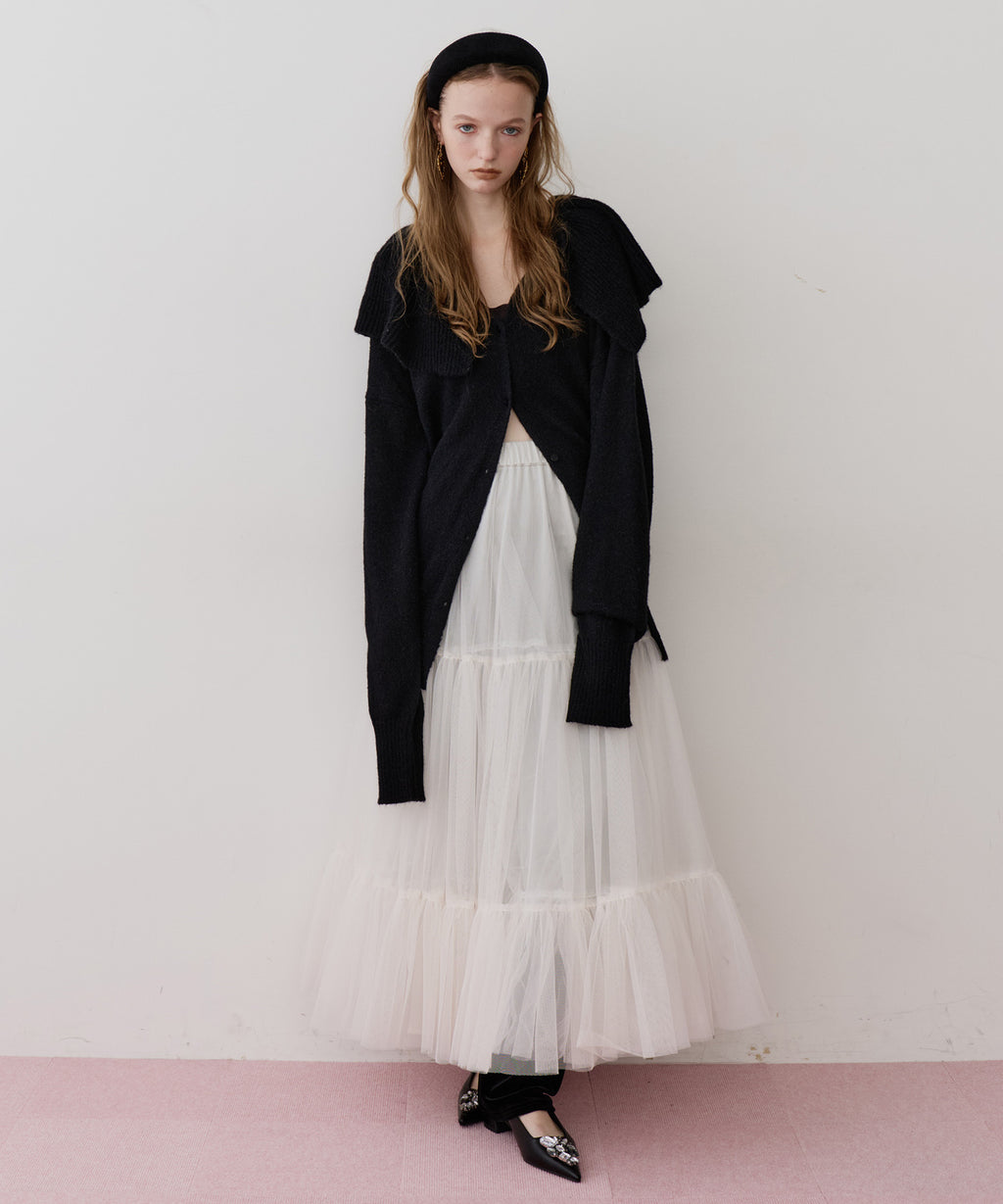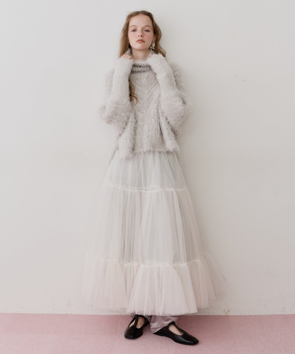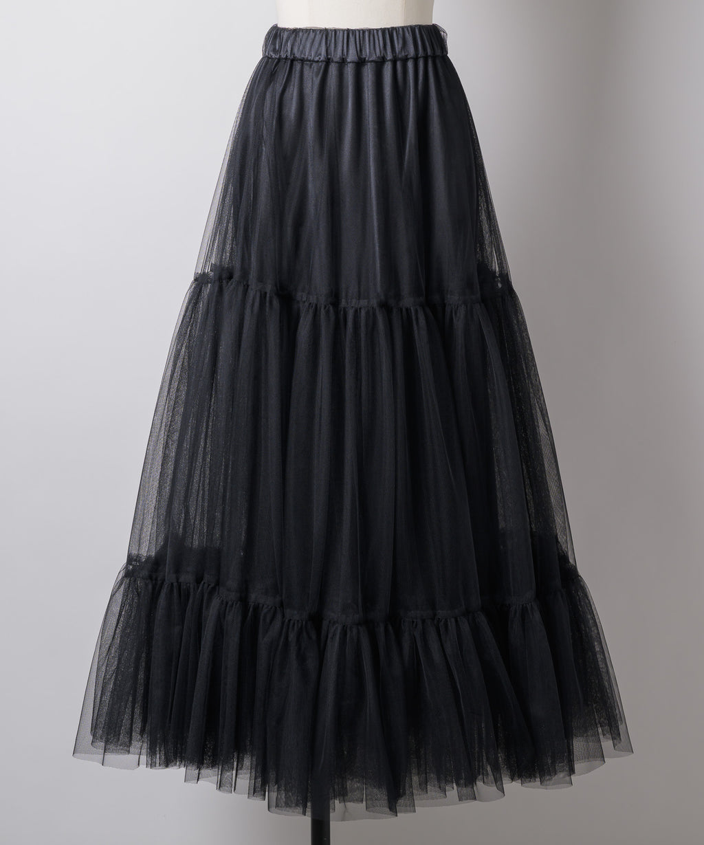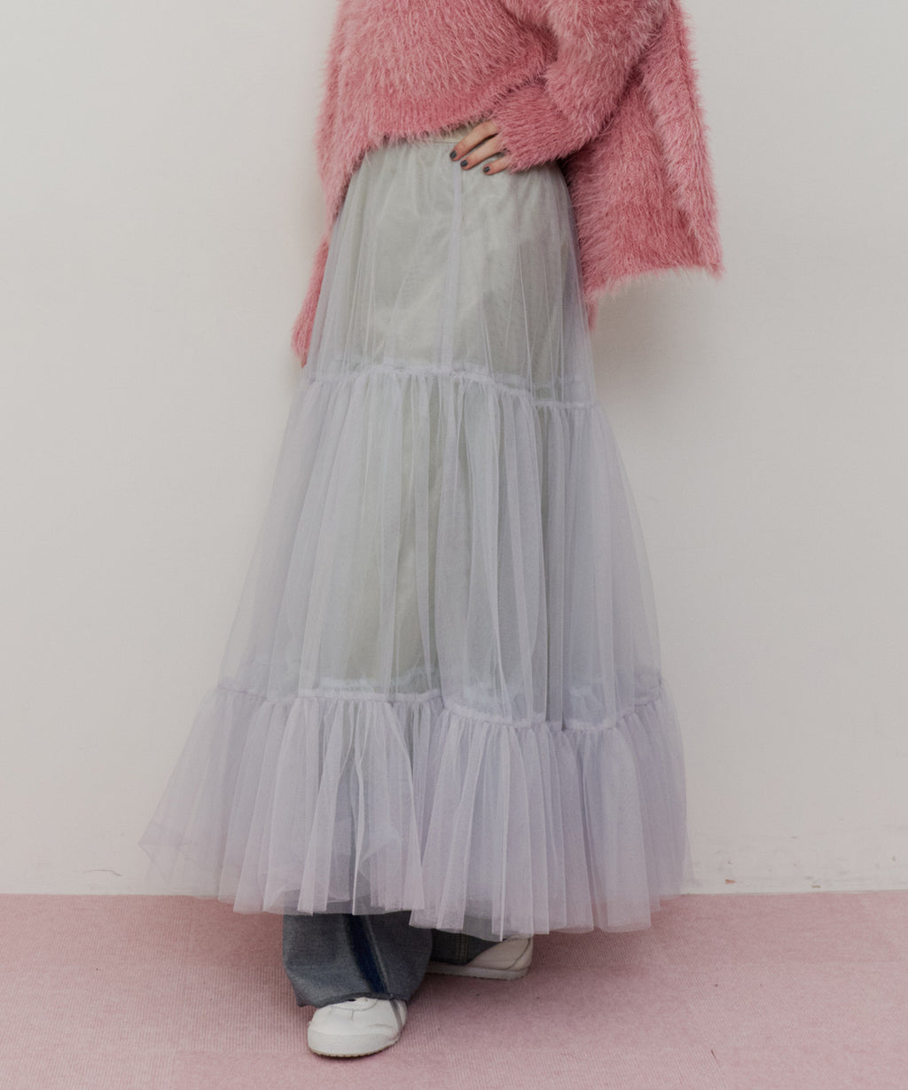 重ねた上と下のチュールの長さをあえて揃えず差をつけて