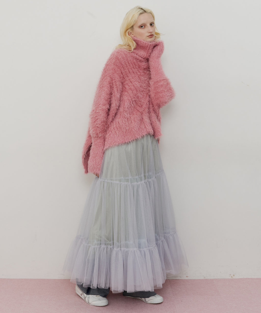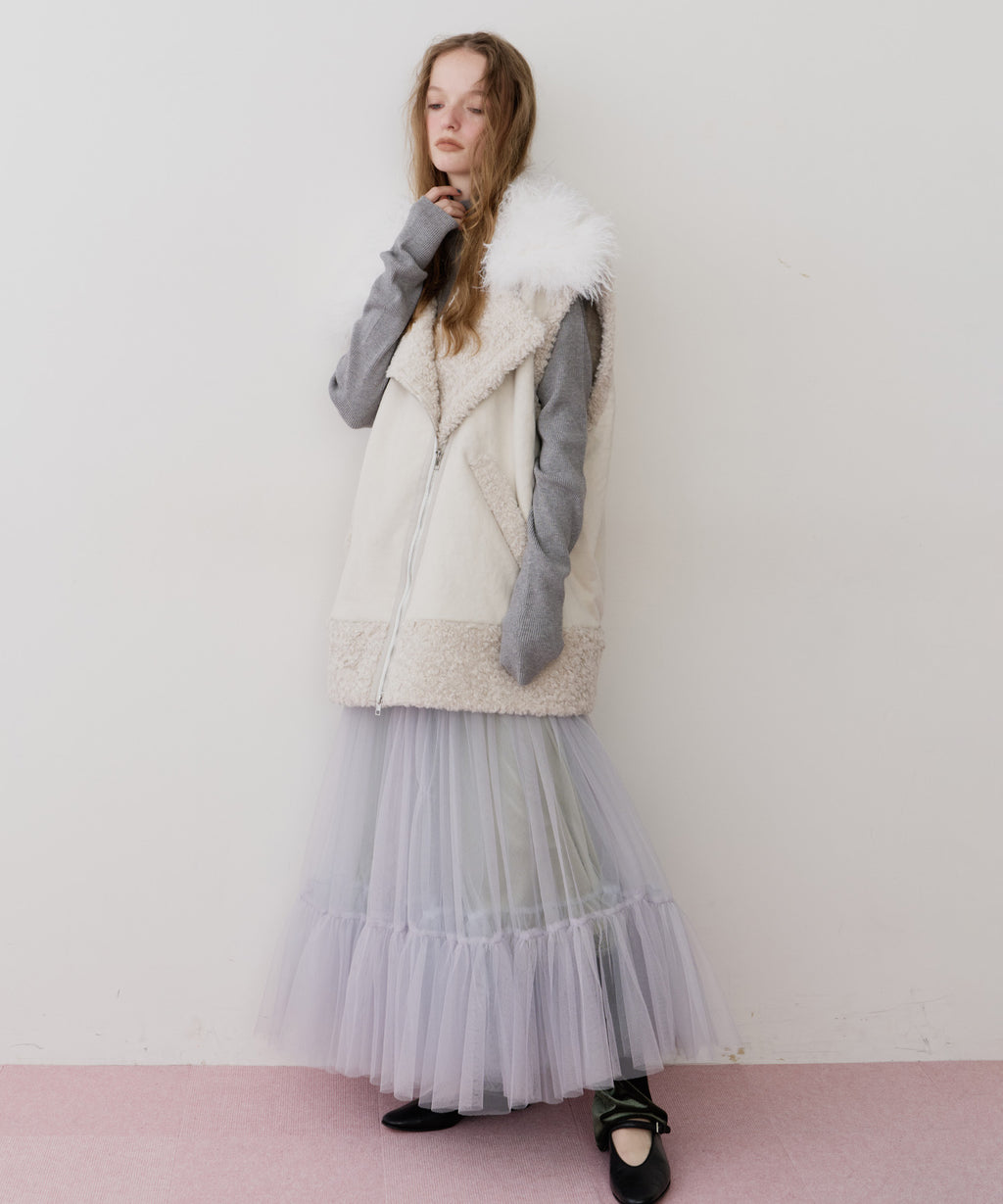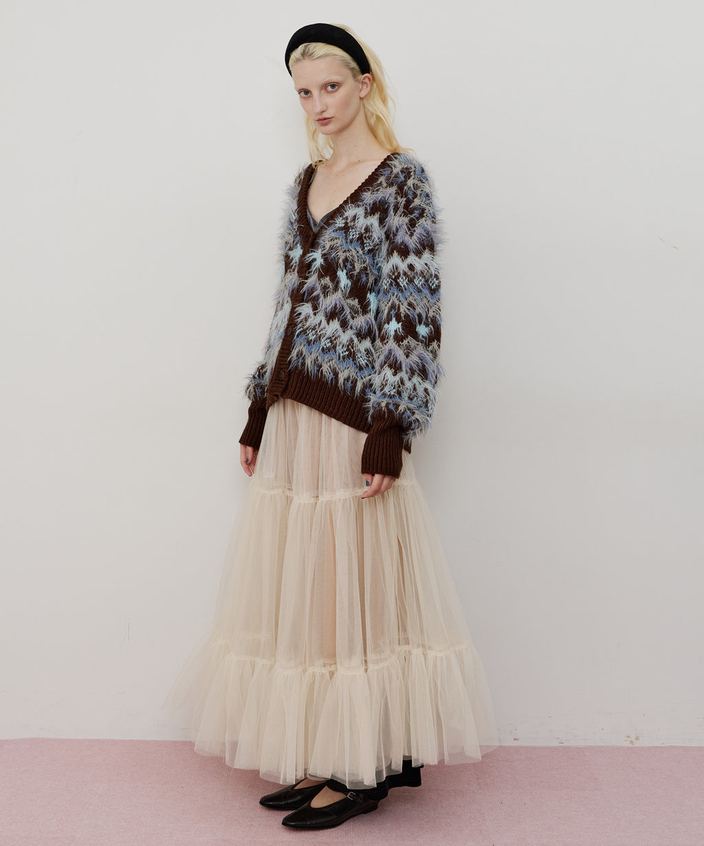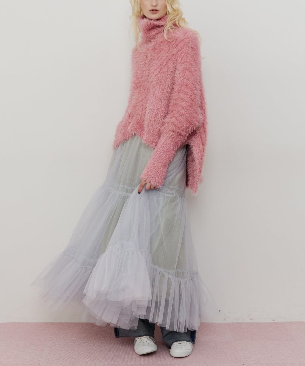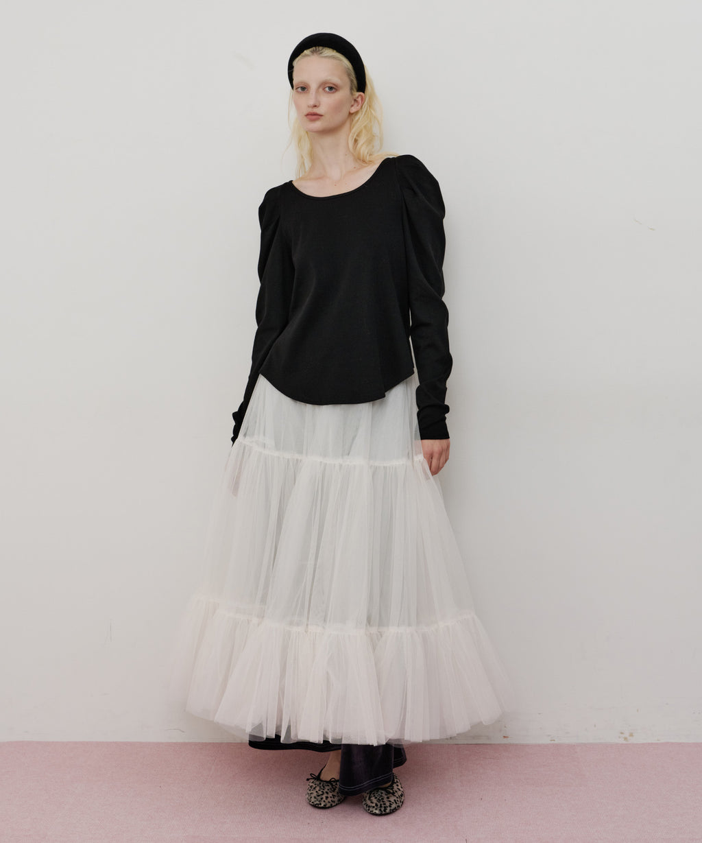 重ねた上と下のチュールの長さをあえて揃えず差をつけて