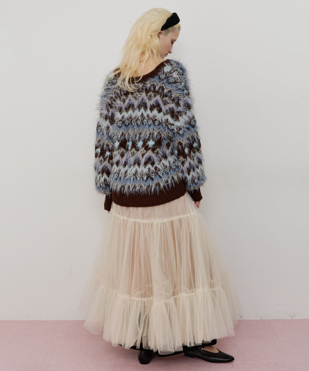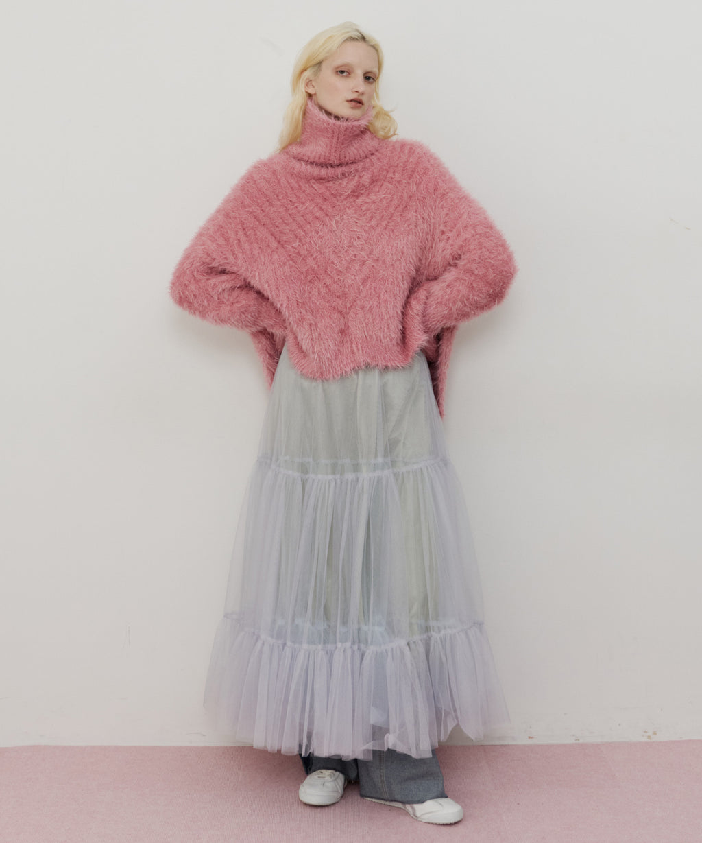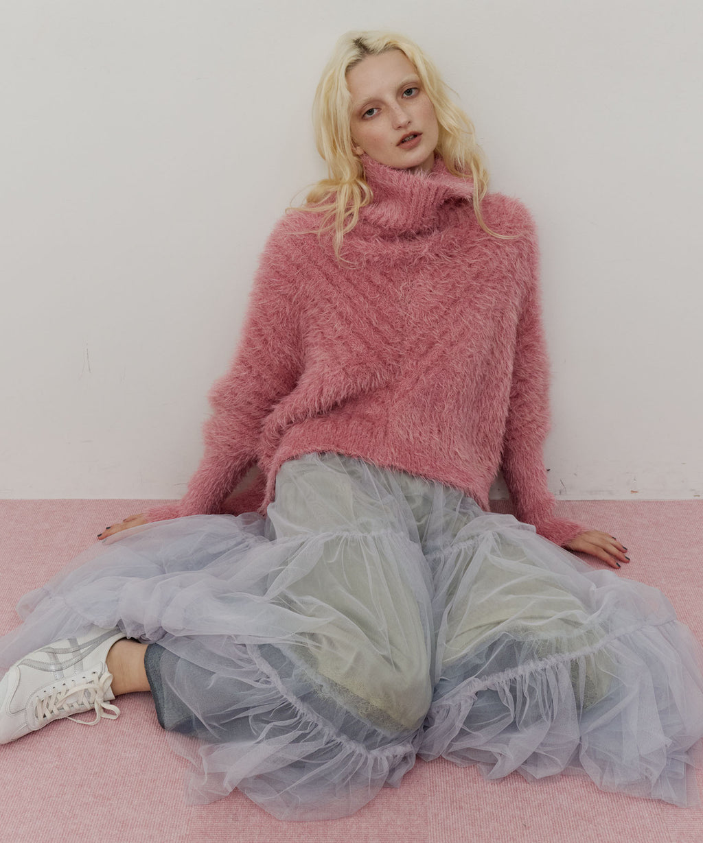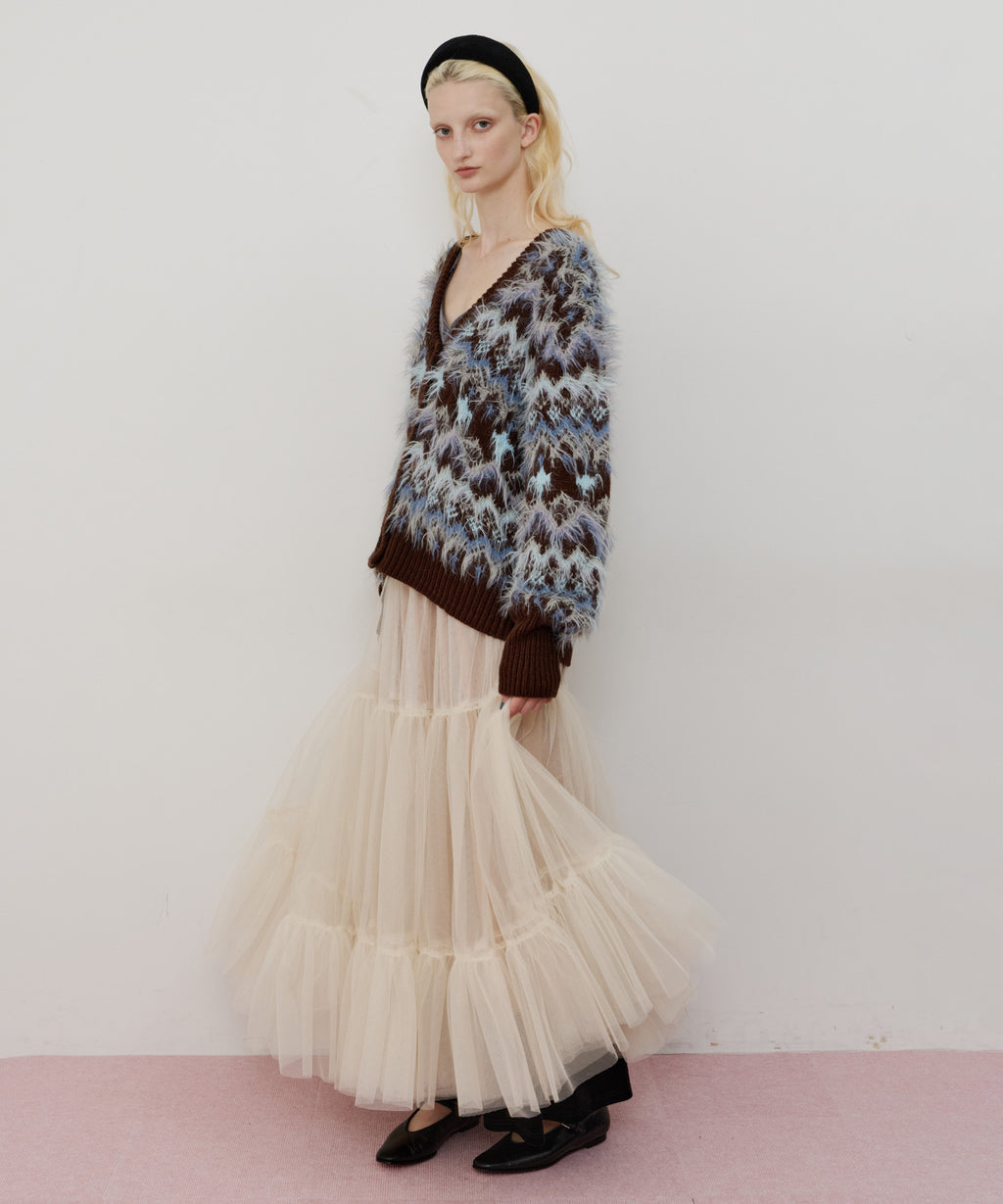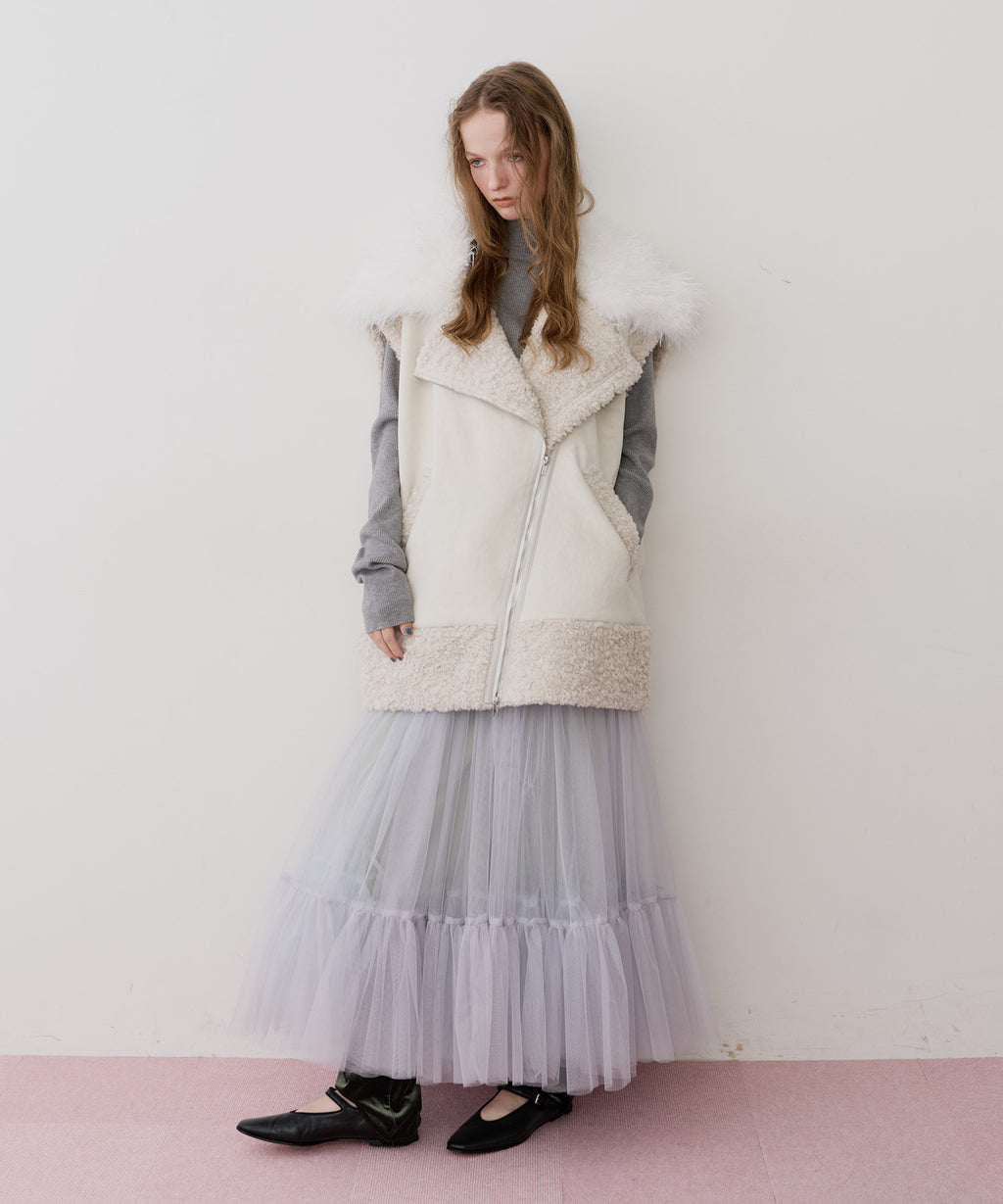 重ねた上と下のチュールの長さをあえて揃えず差をつけて