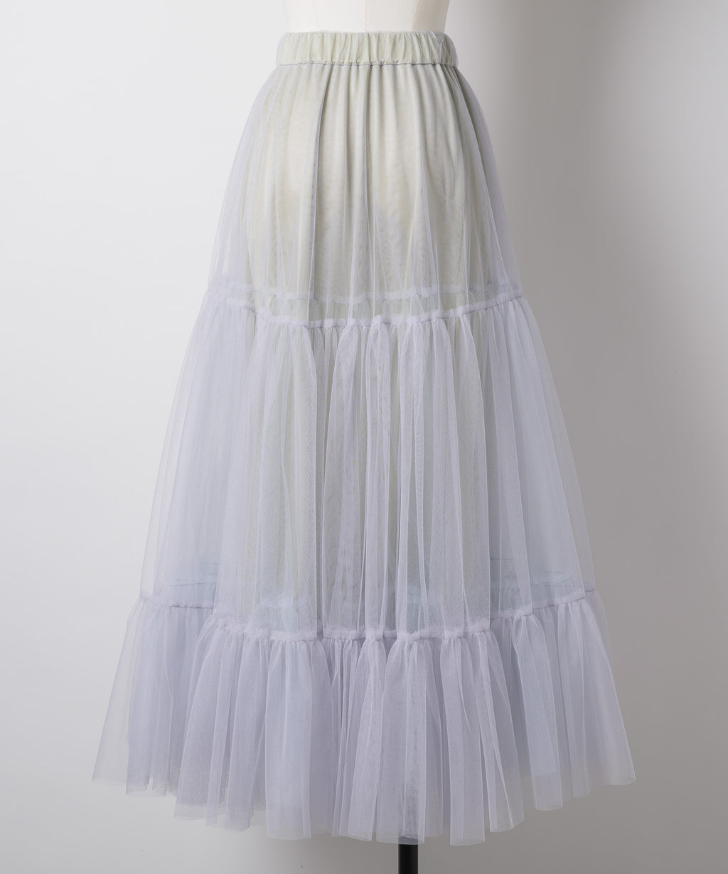 カラーの異なるシアーなチュールを二枚重ねて作り出す