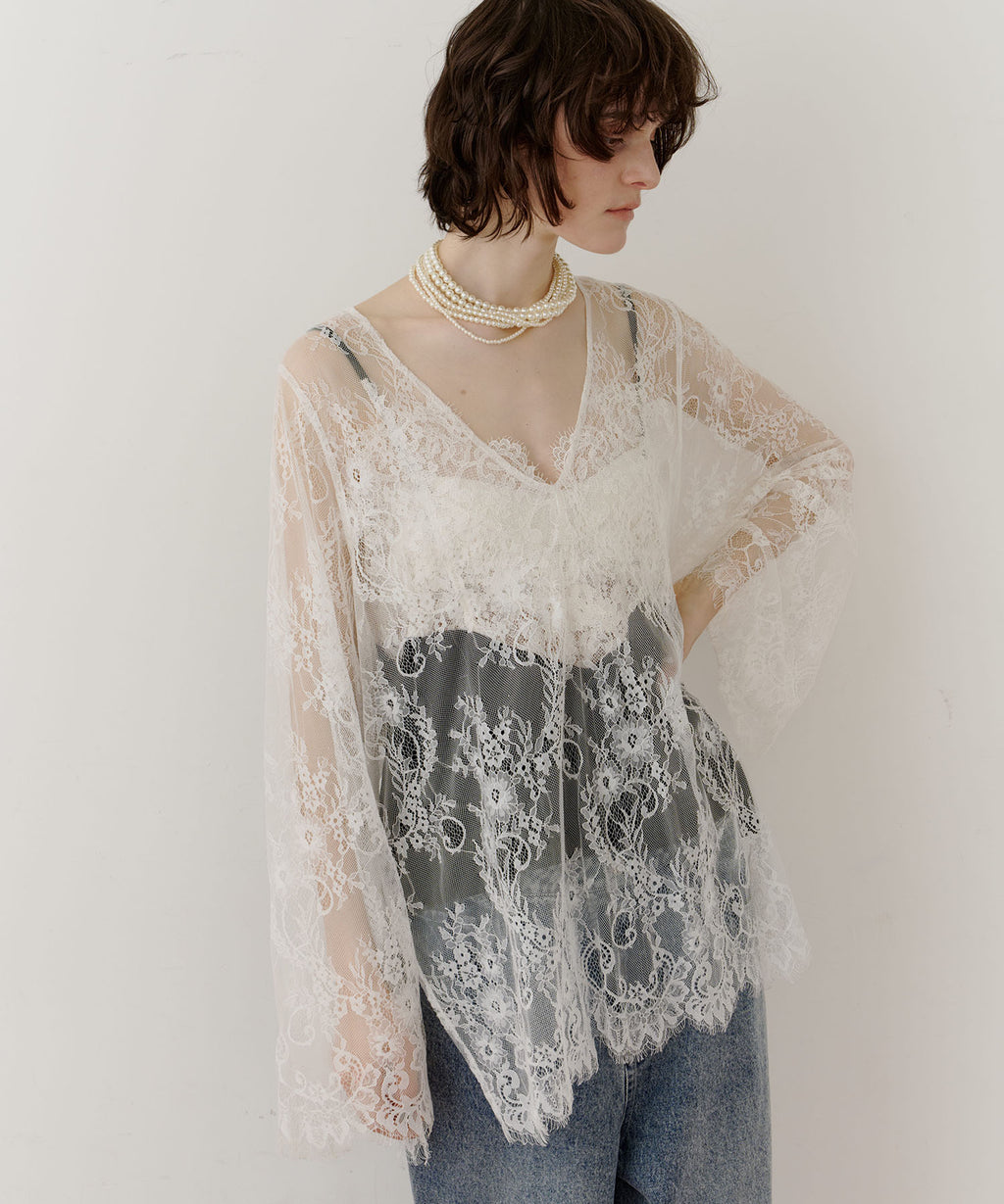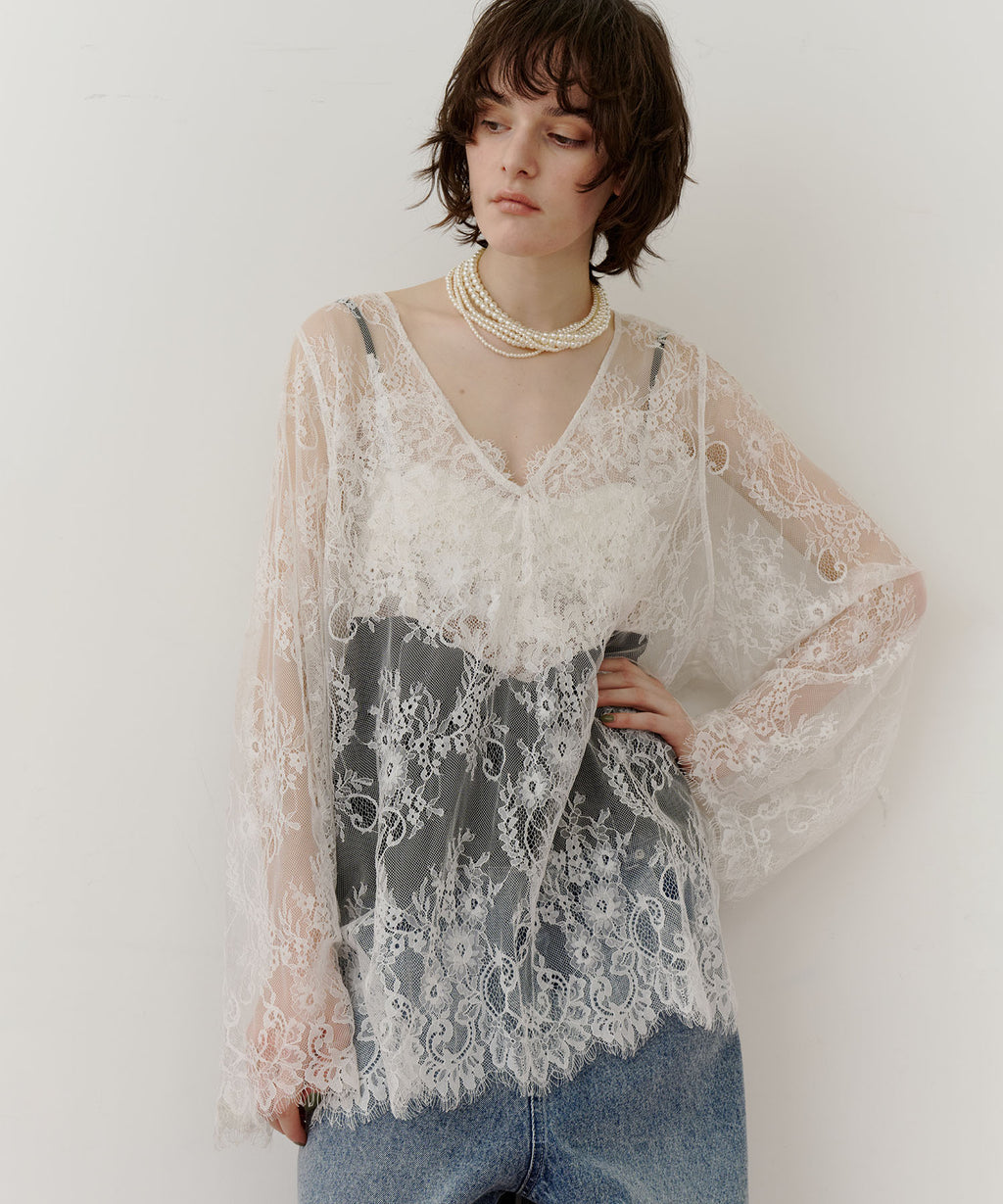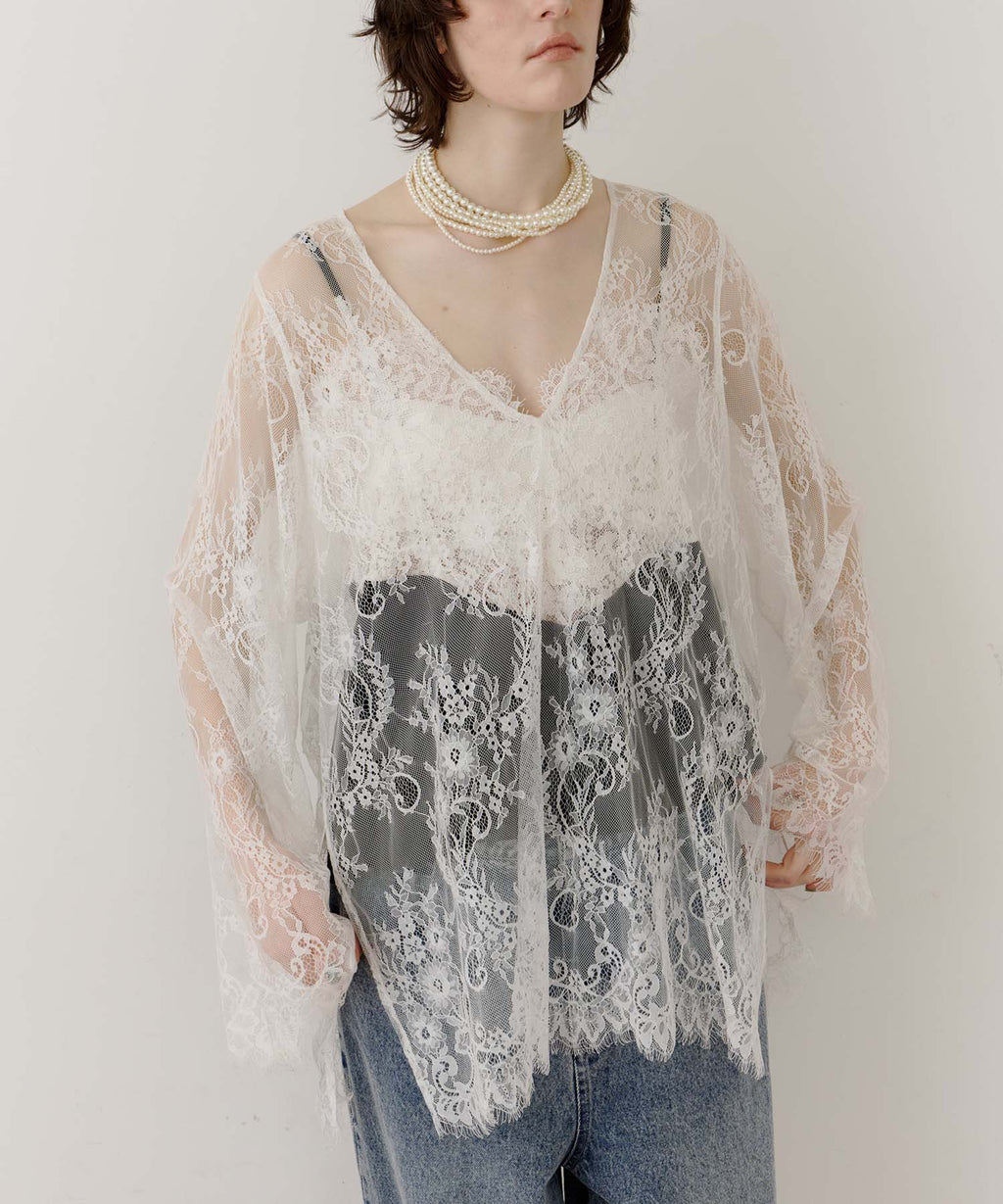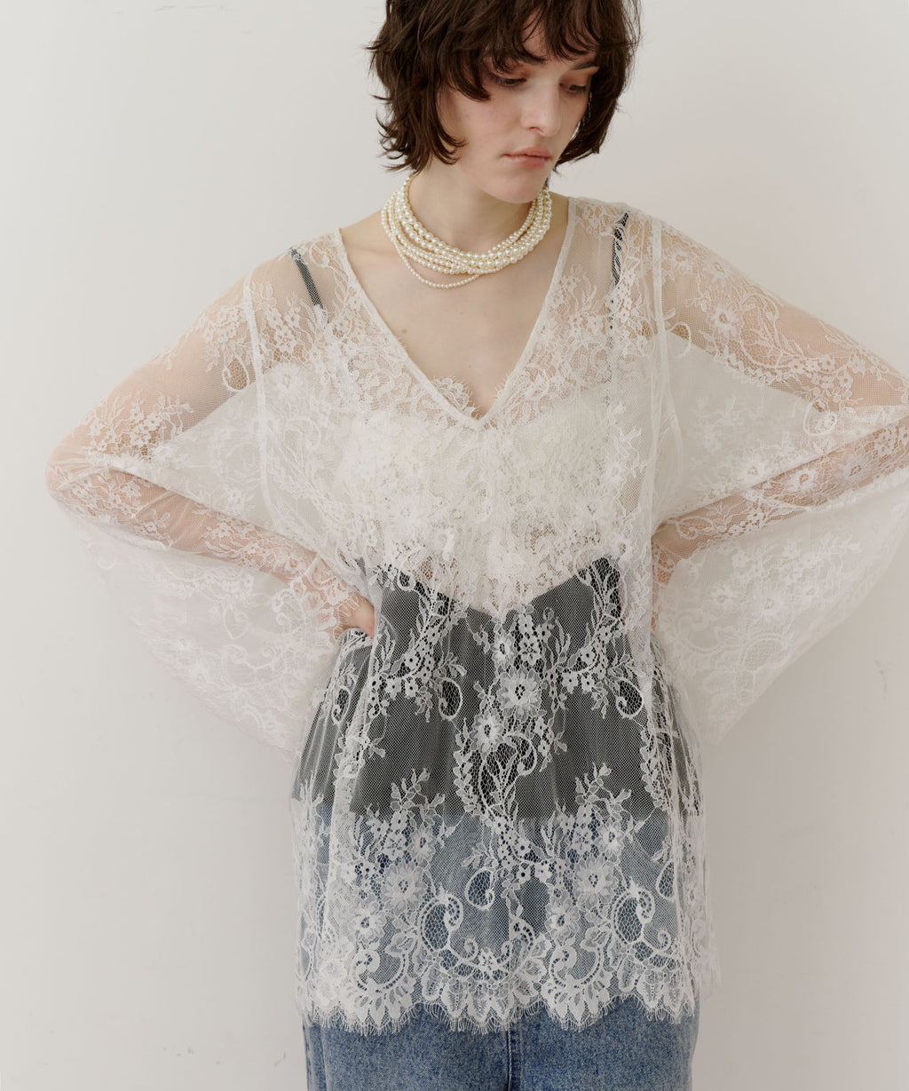 レイヤースタイルにかかせないエアリーなレースブラウス。