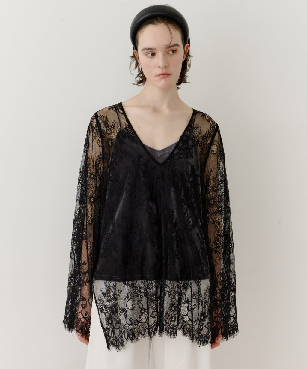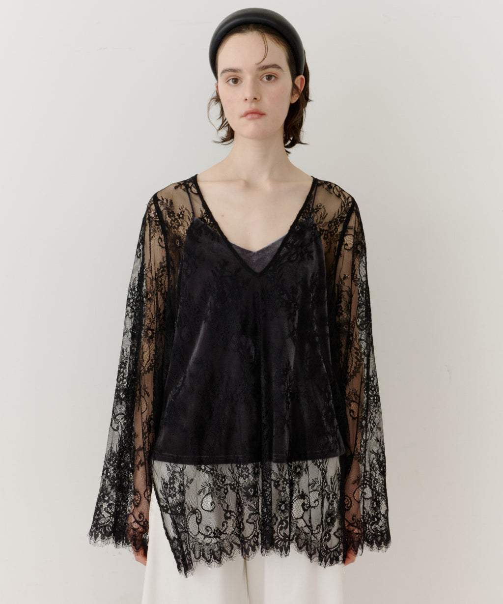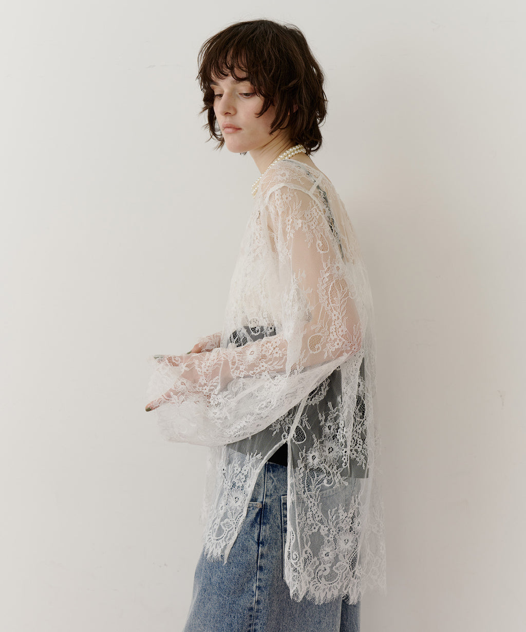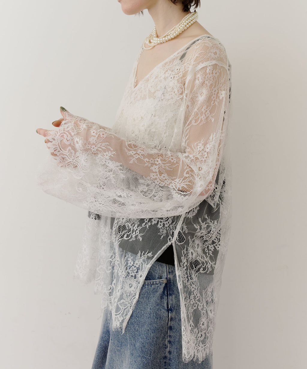 レイヤースタイルにかかせないエアリーなレースブラウス。