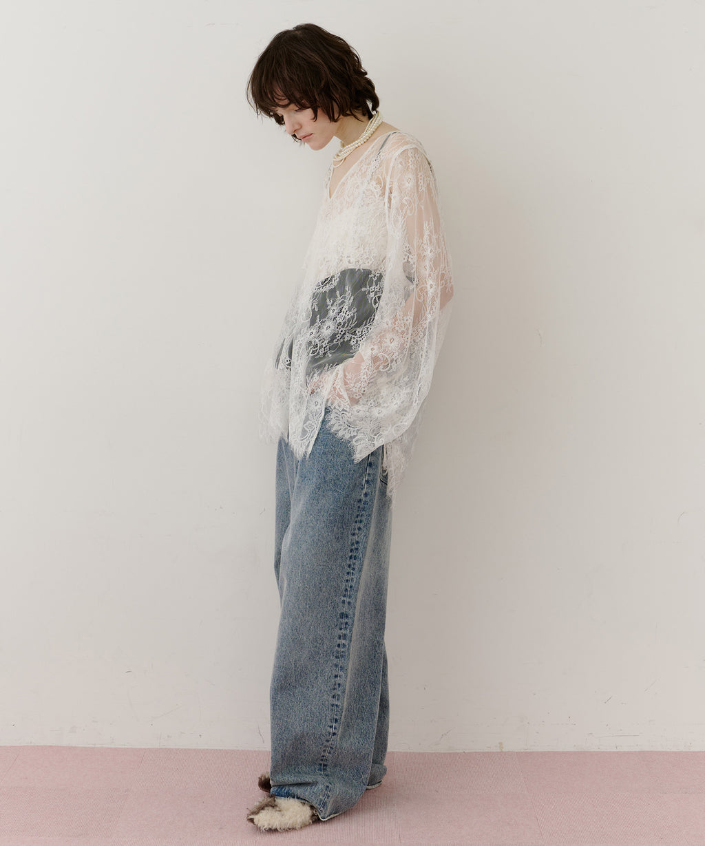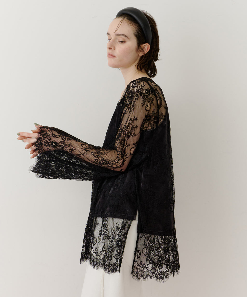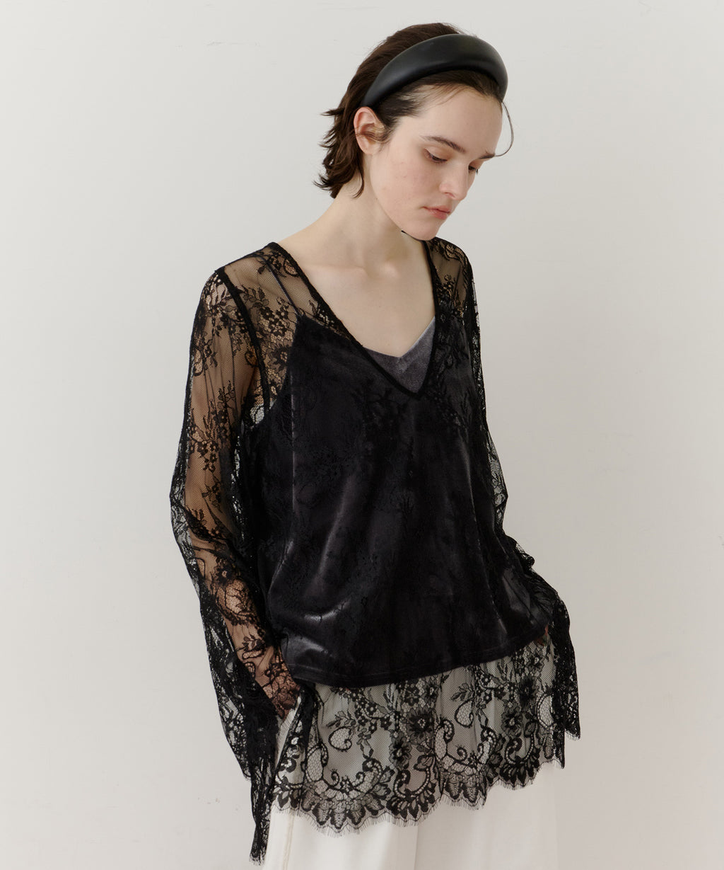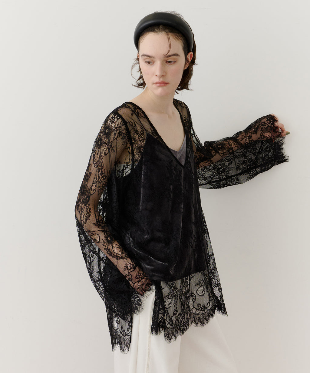 レイヤースタイルにかかせないエアリーなレースブラウス。